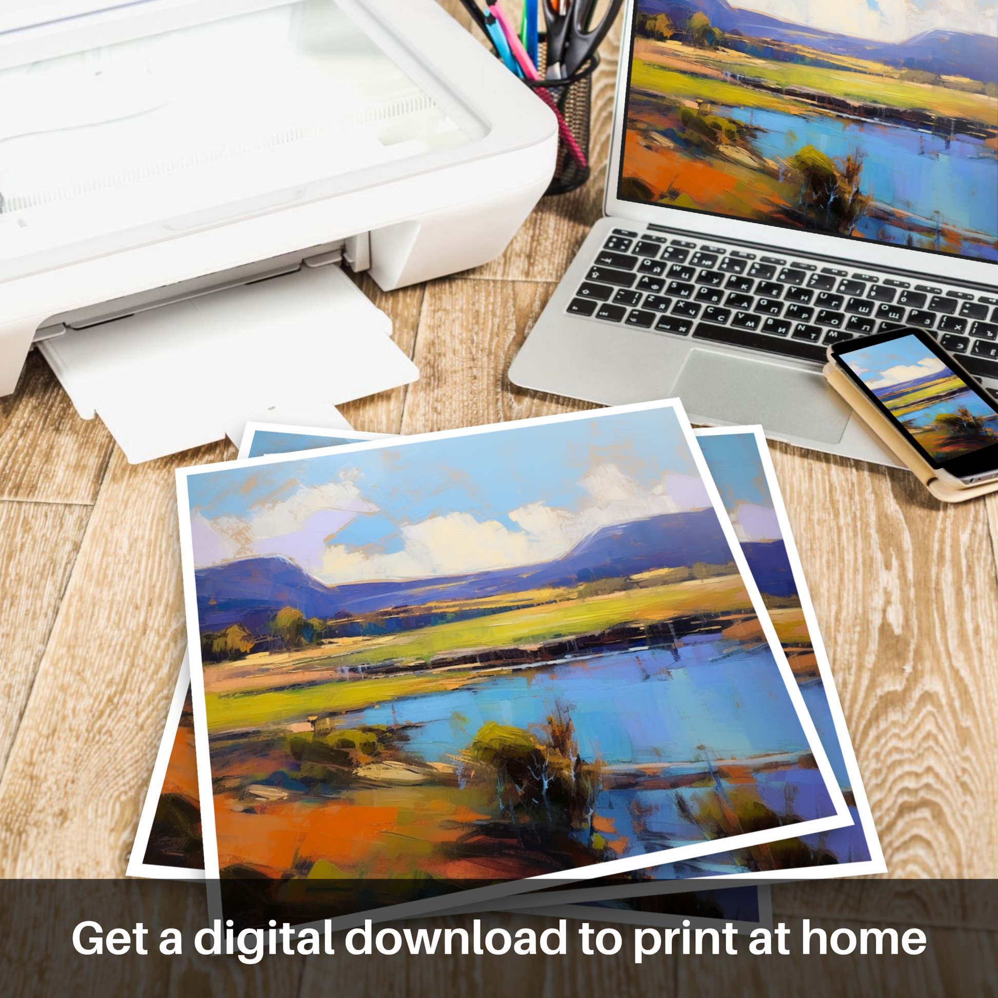This print, an abstract and sensory journey, encapsulates the essence of Scotland's natural splendour during the most lively of seasons. It's an invitation to bring the spirit of Scotland's dramatic landscapes into your space, to be admired and pondered upon in moments of contemplation or shared with others as a focal point of beauty and conversation.