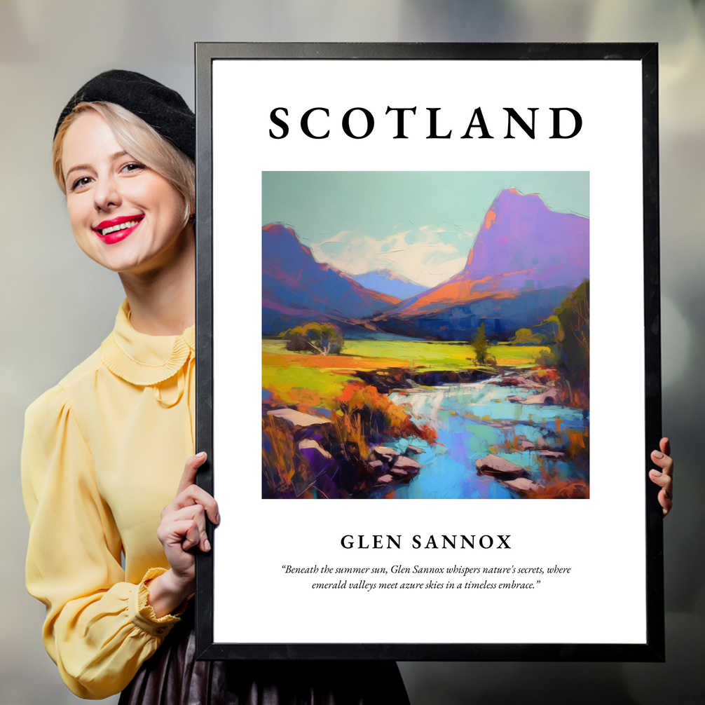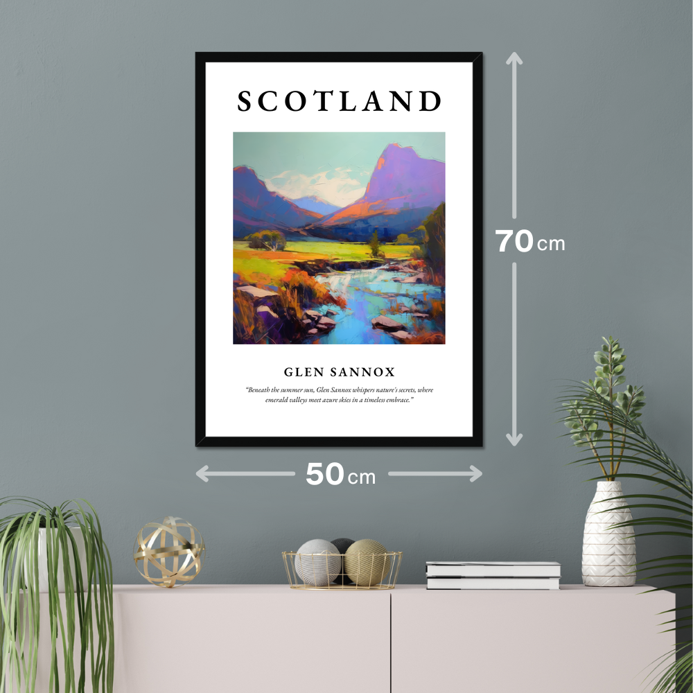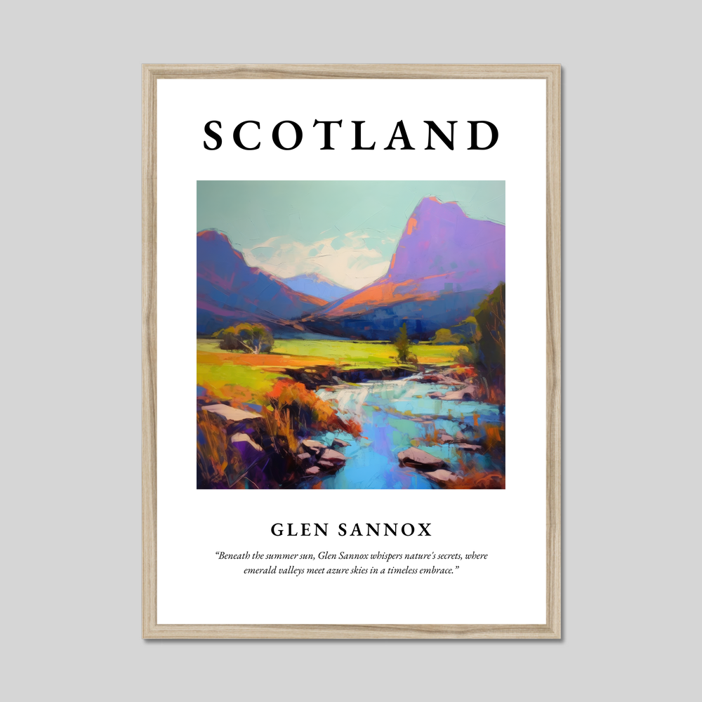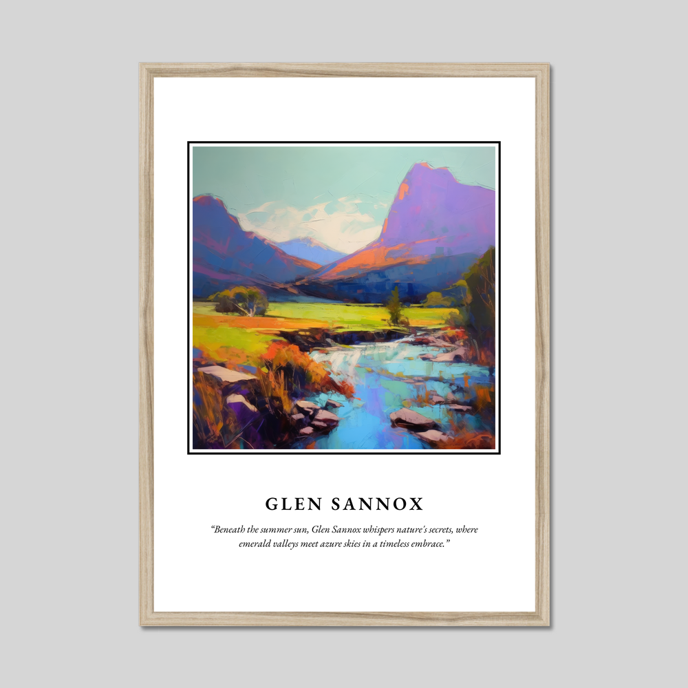 Bring the breathtaking beauty of Scotland into your home with our stunning 50cm x 70cm framed poster print, featuring a captivating painting of Glen Sannox. Available in black, white, or a natural wood-effect frame, this piece is the perfect addition to any space, casting a timeless allure that honours both place and art.