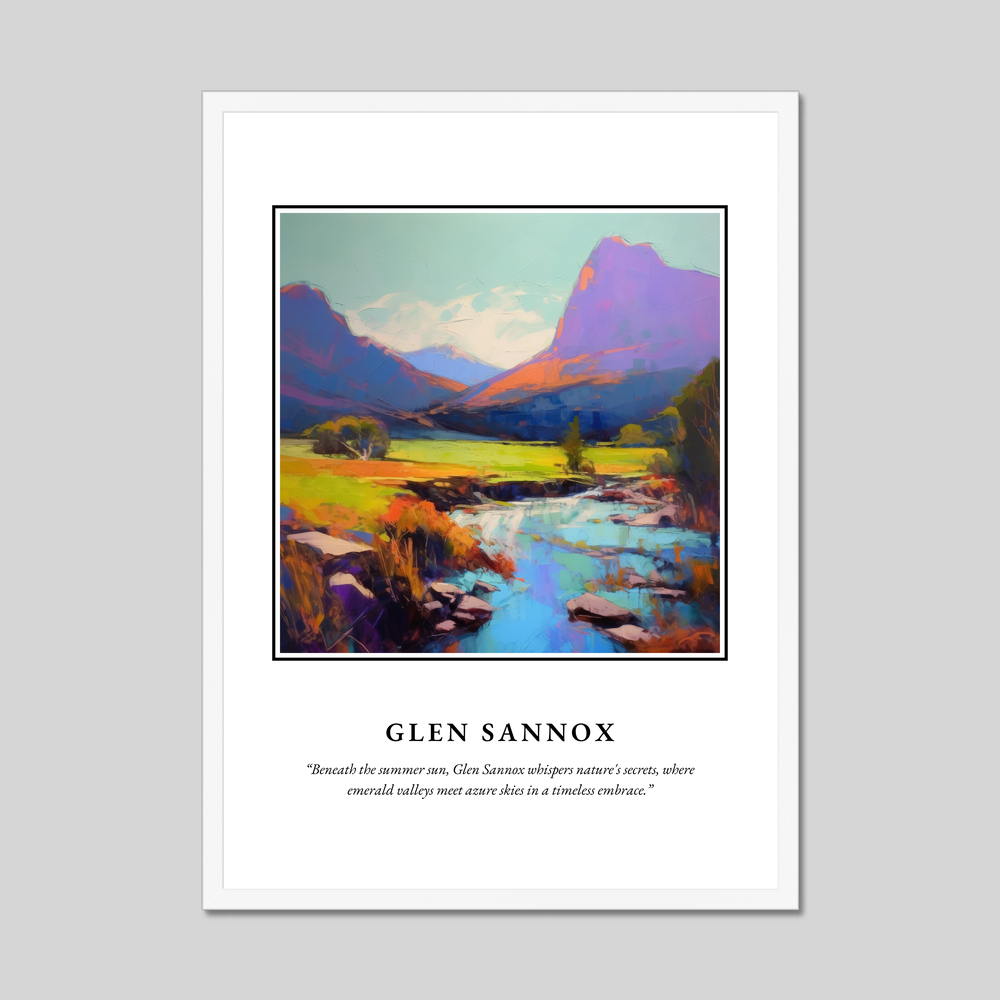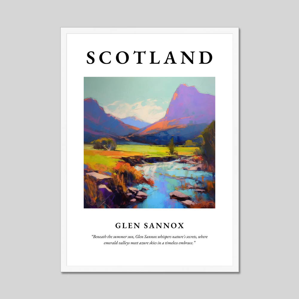 Whether you are reminiscing about a summer spent wandering its paths, or simply drawn to the tranquillity that Glen Sannox inspires, this poster serves as a timeless tribute. Let it transport you to a place where every glance rekindles memories and evokes the unmistakable spirit of Scotland.
