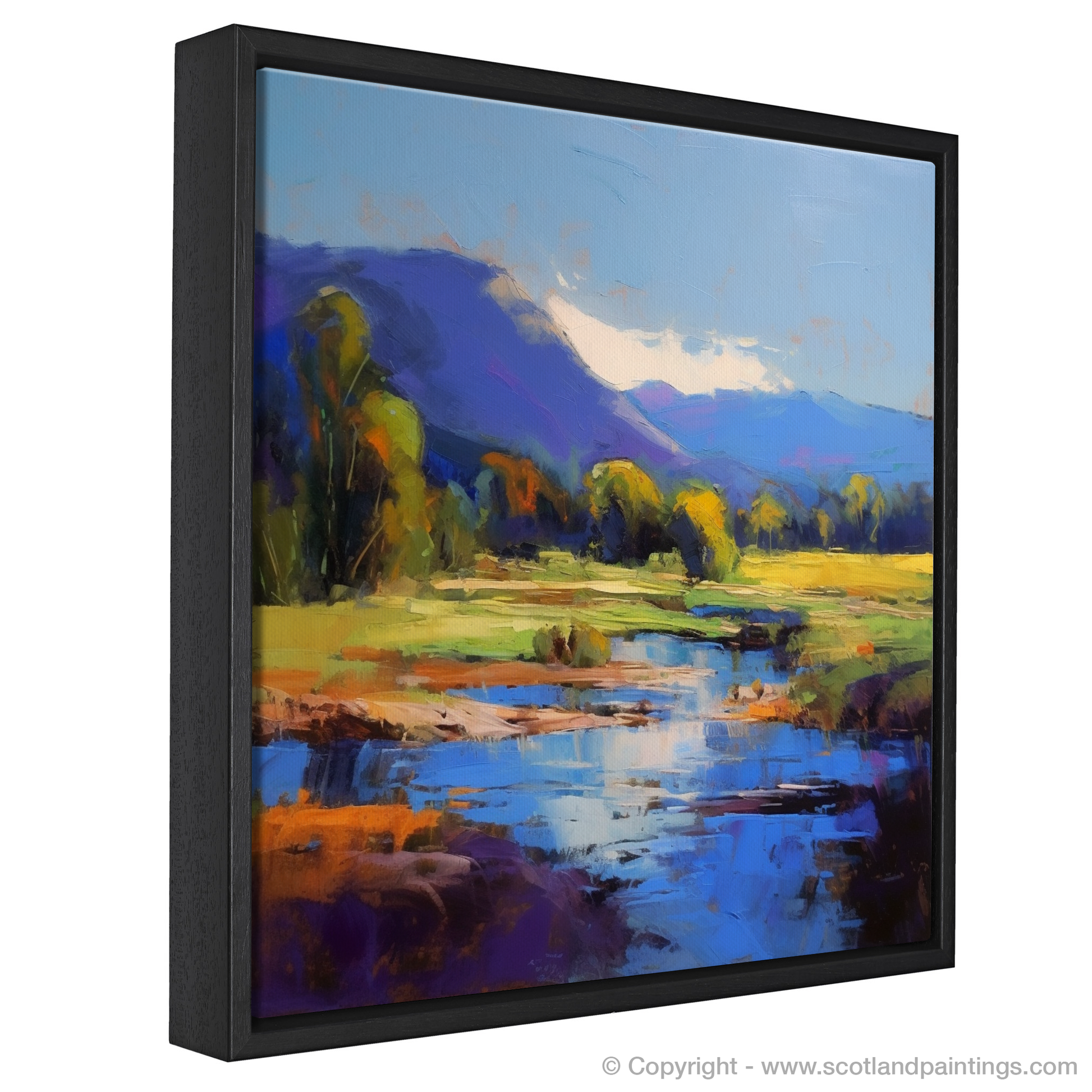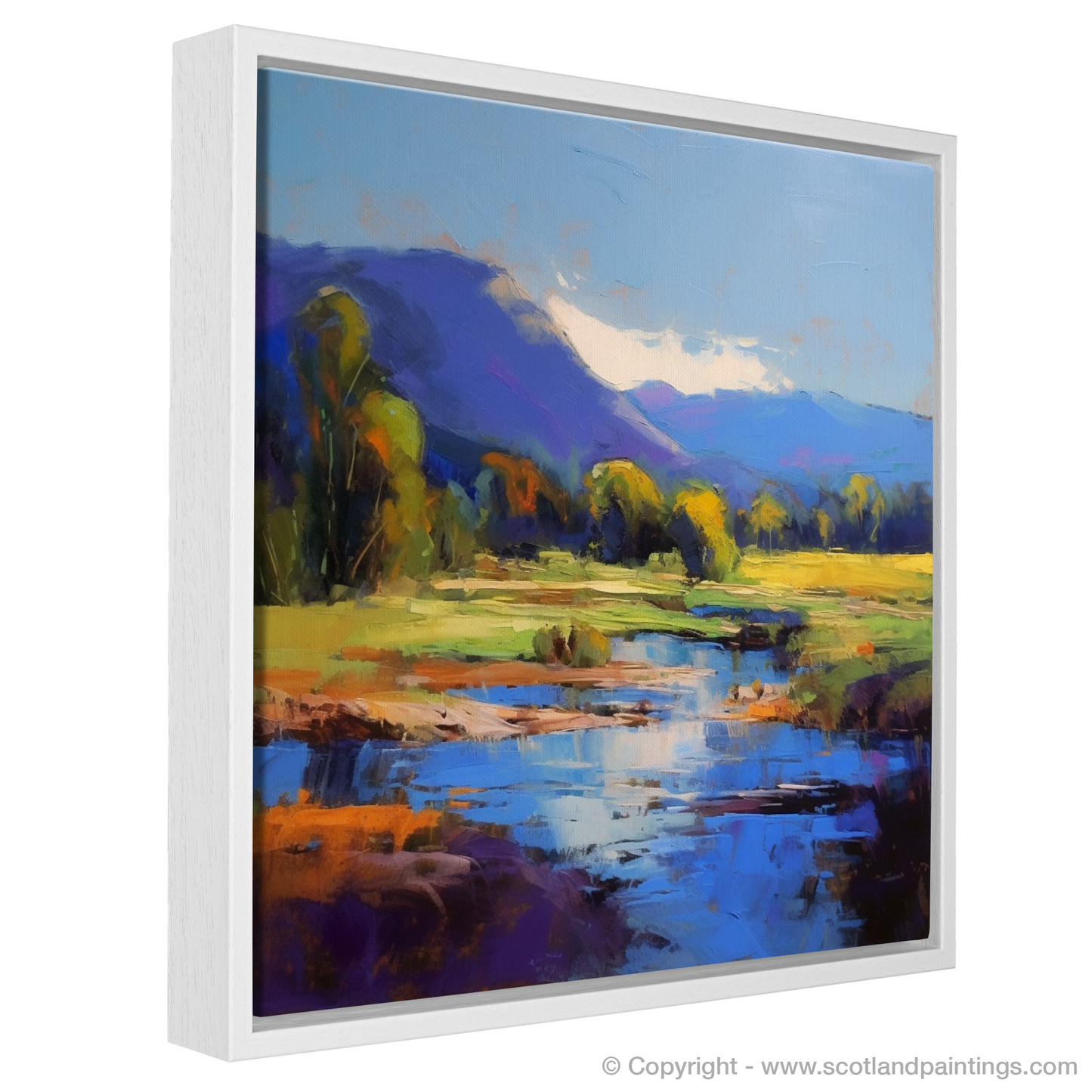 Let the vibrant hues and bold strokes of this expressionist print transport you to the serene River Spean, nestled within the verdant folds of the Highlands during the height of summer. Suffused with a dynamic array of colours, from the deep purples and blues of the majestic hills to the various shades of green that adorn the trees, this evocative piece captures the lush, untamed landscape in all its glory.