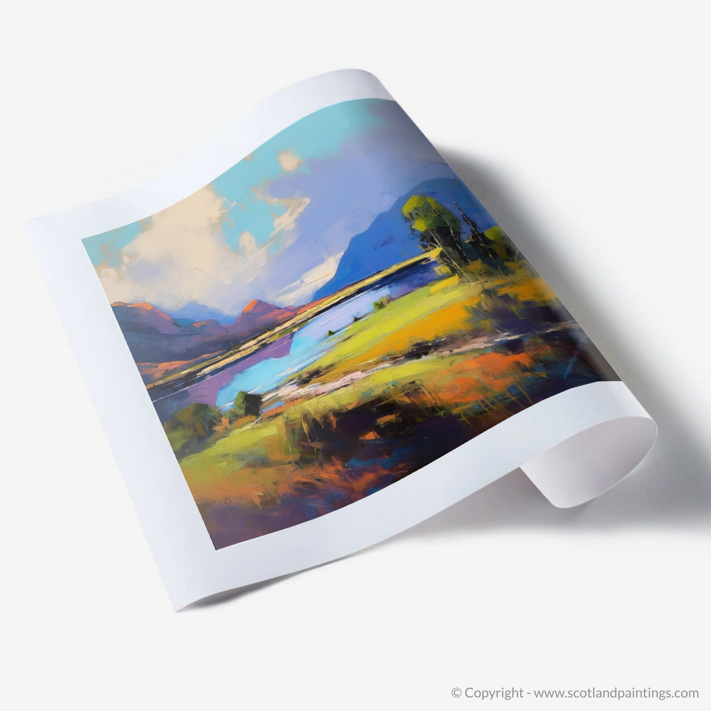 Embrace the vivacity of a Highland summer with this evocative print, capturing the essence of Loch Shiel in a flourish of colour and emotion. Your gaze will be immediately drawn to the dynamic brushstrokes and bold palette, reflecting the serene beauty of the Highlands under the exuberance of summer skies.