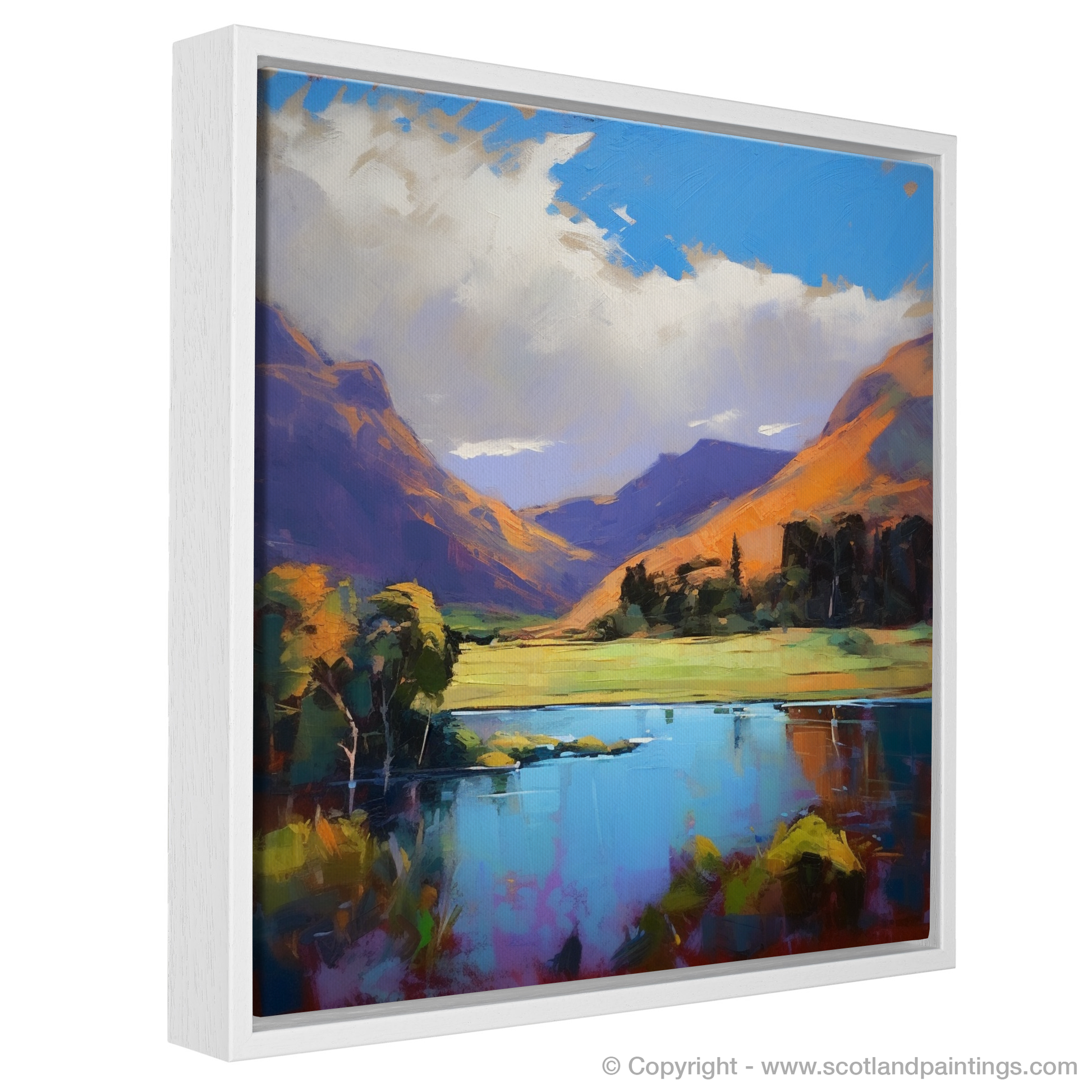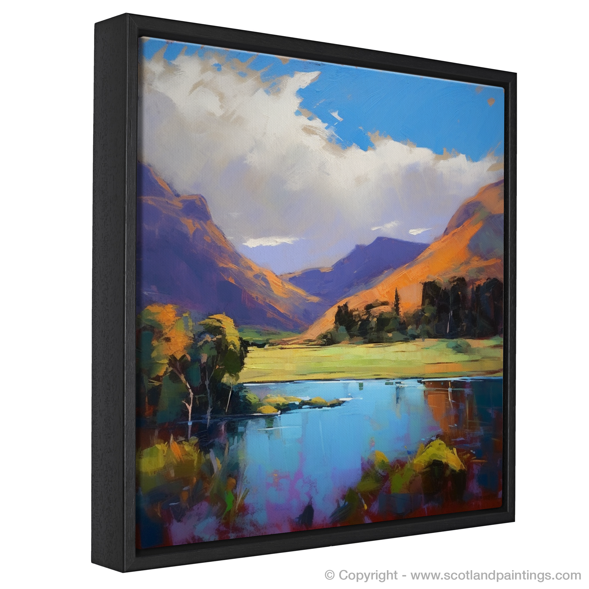 Escape into the vivid embrace of the Scottish Highlands with this exquisite print that captures the raw beauty of Loch Shiel during the lush summer months. A palette of vibrant hues brings the scenic panorama to life, with fiery oranges and deep purples adorning the magnificent mountains that stand sentinel around the tranquil waters. Reflections dance upon the loch's surface, mirroring the dramatic dance of light and shadow that plays across the canvas, lending a dreamlike quality to the depiction.