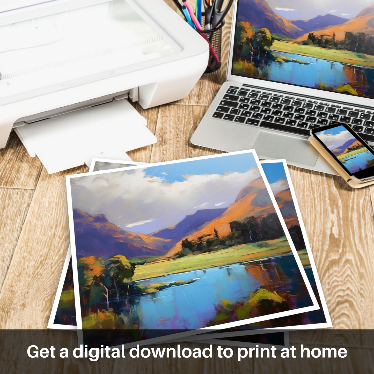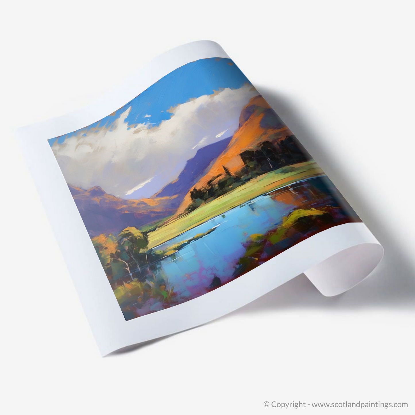 This piece from our 'Scotland in Summer' collection invites viewers to immerse themselves in the splendour and serenity of this iconic Scottish setting. The expressive technique used to communicate the vibrancy and energy of the Highlands makes this print a passionate celebration of nature's allure, perfect for those who wish to bring the spirit of Scotland's enchanting outdoors into their space.