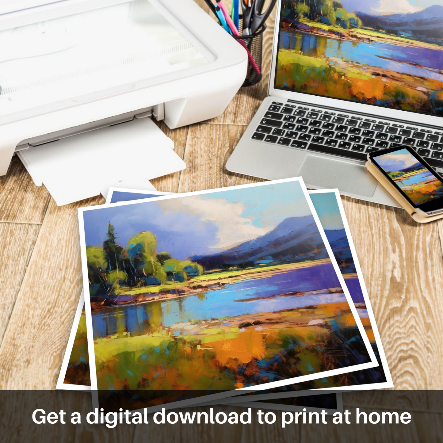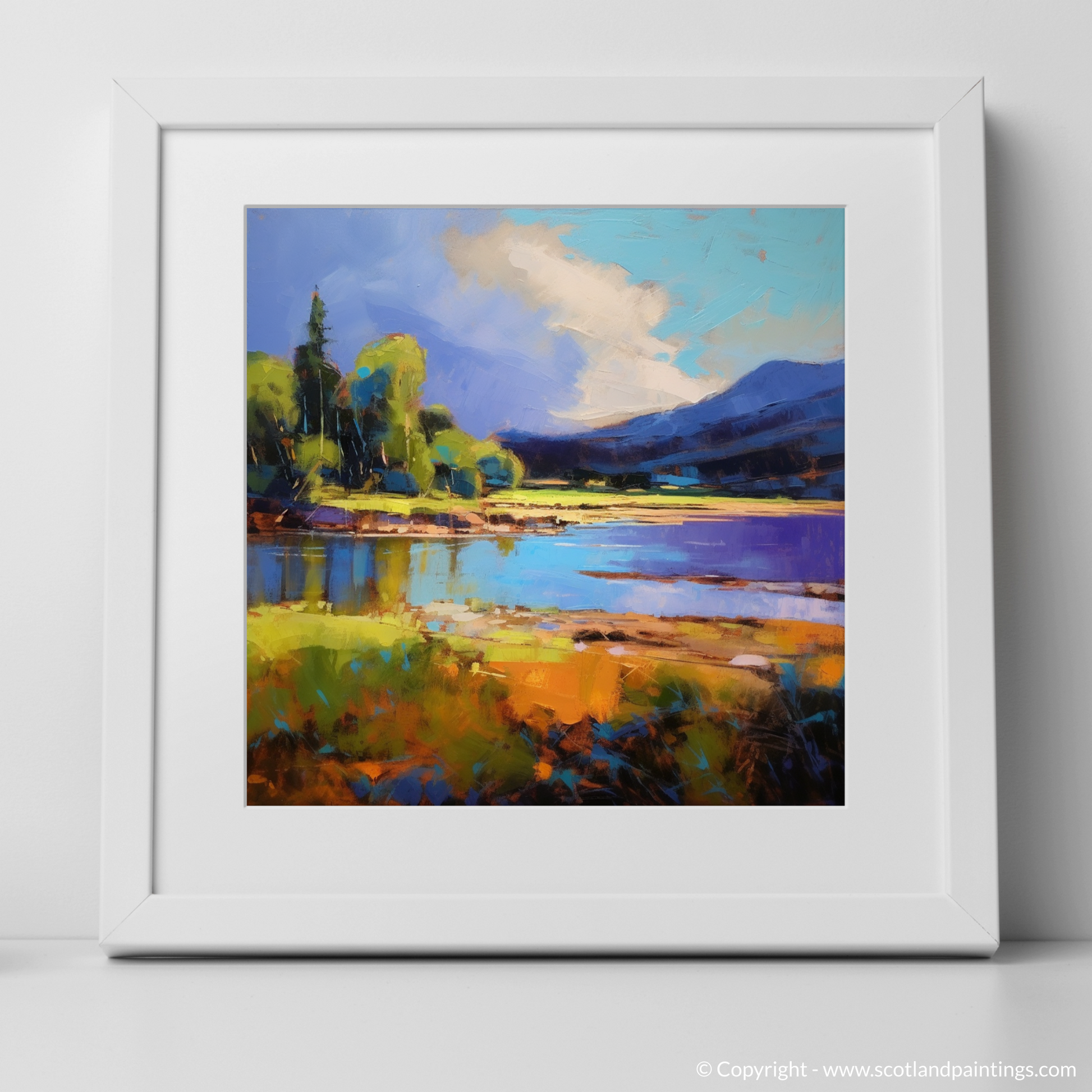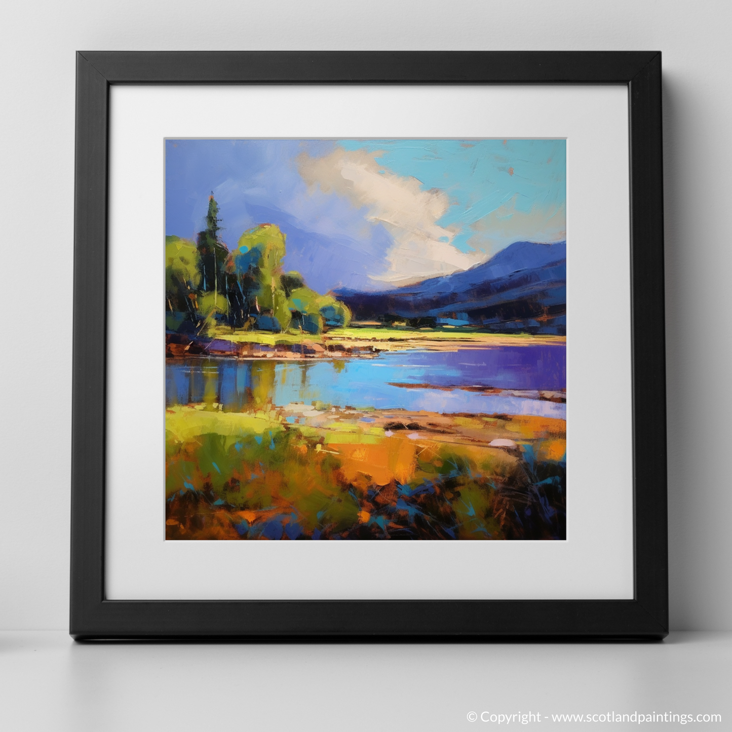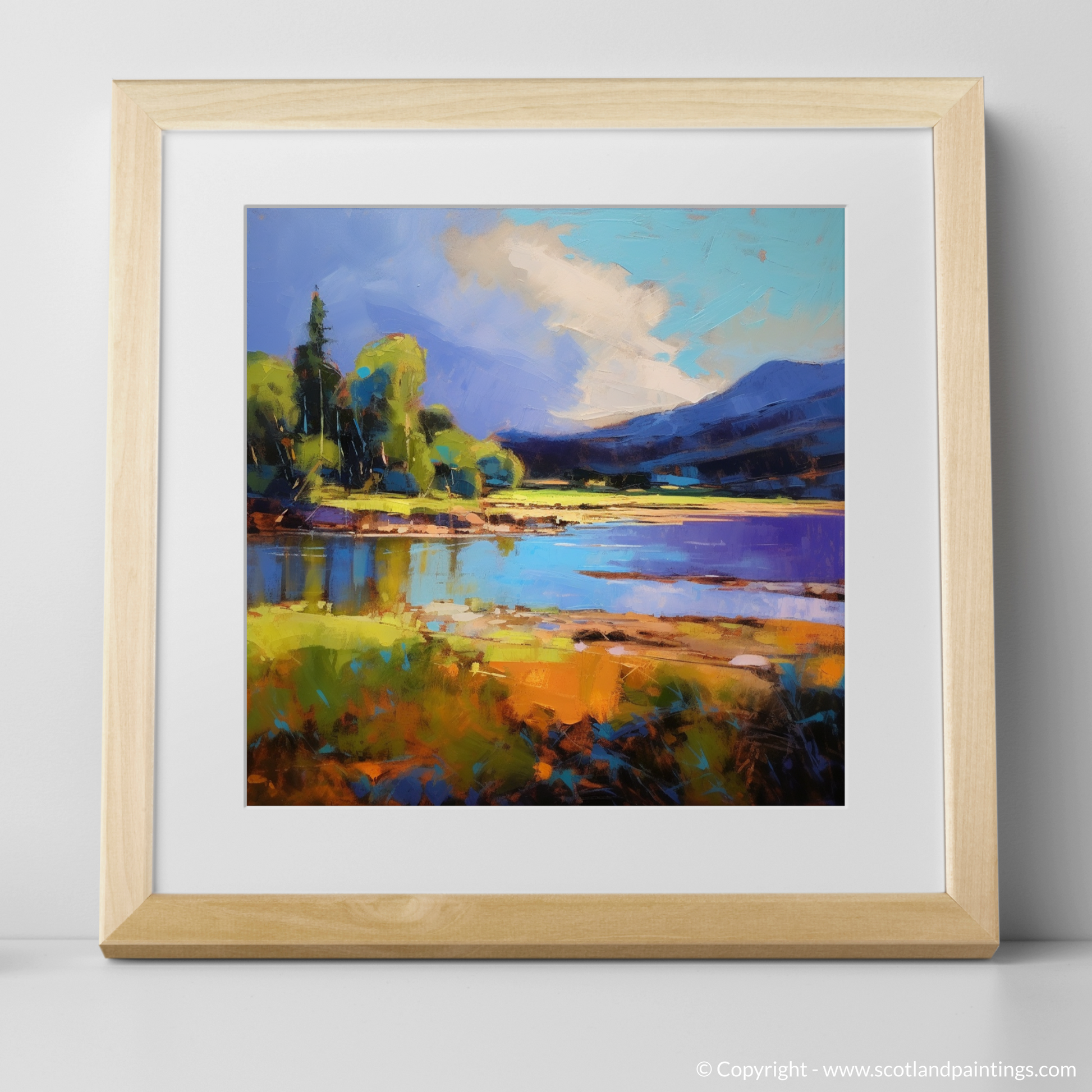 Immerse yourself in the vibrant, untamed beauty of the Scottish landscape with this evocative expressionist print. The piece captures the serene majesty of Loch Faskally in Pitlochry, Perthshire, during the lushness of summer, with vigorous brushstrokes and a rich palette that brings this tranquil scene to life.