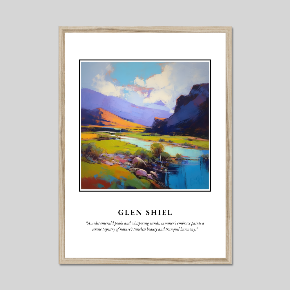 Introducing our exquisite framed poster print from the "Scotland in Summer" collection, this piece captures the enchanting beauty of Glen Shiel with a blend of vibrant colours and expressive brushstrokes typical of the Expressionism art style. Measuring a substantial 50cm x 70cm, this art print makes a grand statement on any wall, immersing your space in the tranquil beauty of the Scottish Highlands without an extravagant cost.