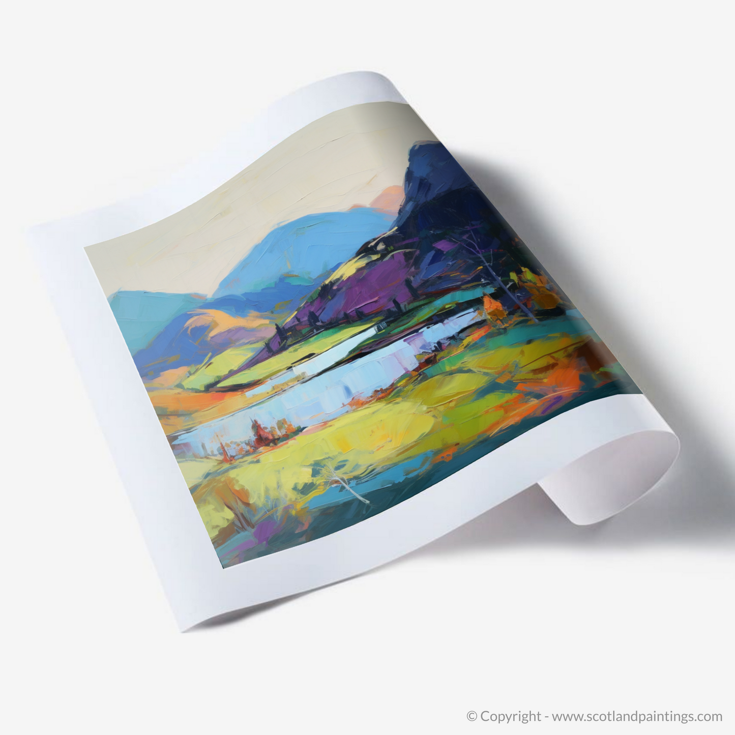 Immerse yourself in the vibrant hues and dynamic brushwork of a piece that echoes the untamed beauty of the Scottish Highlands. This expressive, emotion-evoking print captures the essence of Loch Morar during the full bloom of summer, with bold strokes and an intense colour palette that brings the landscape to life.