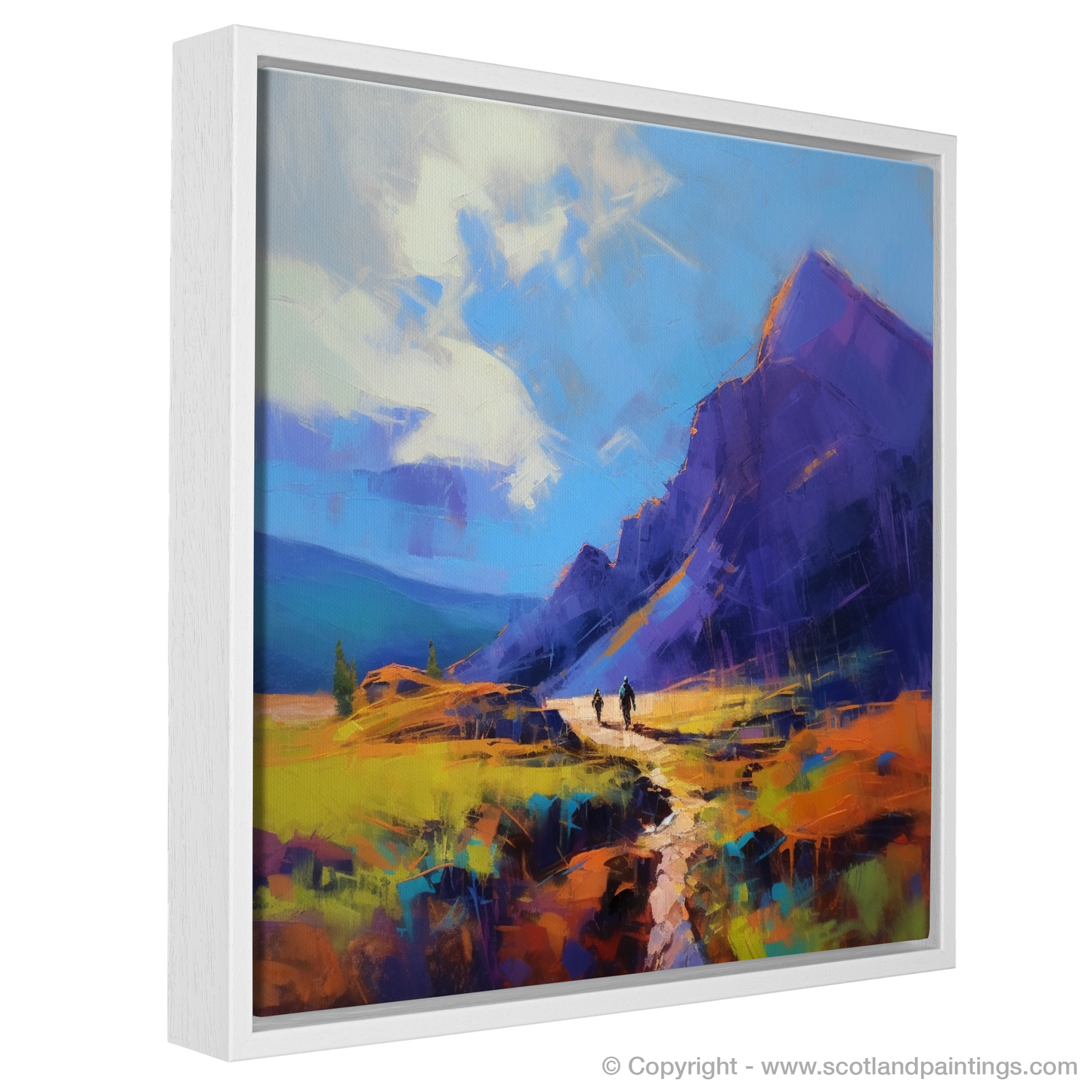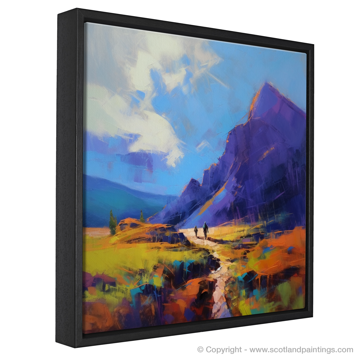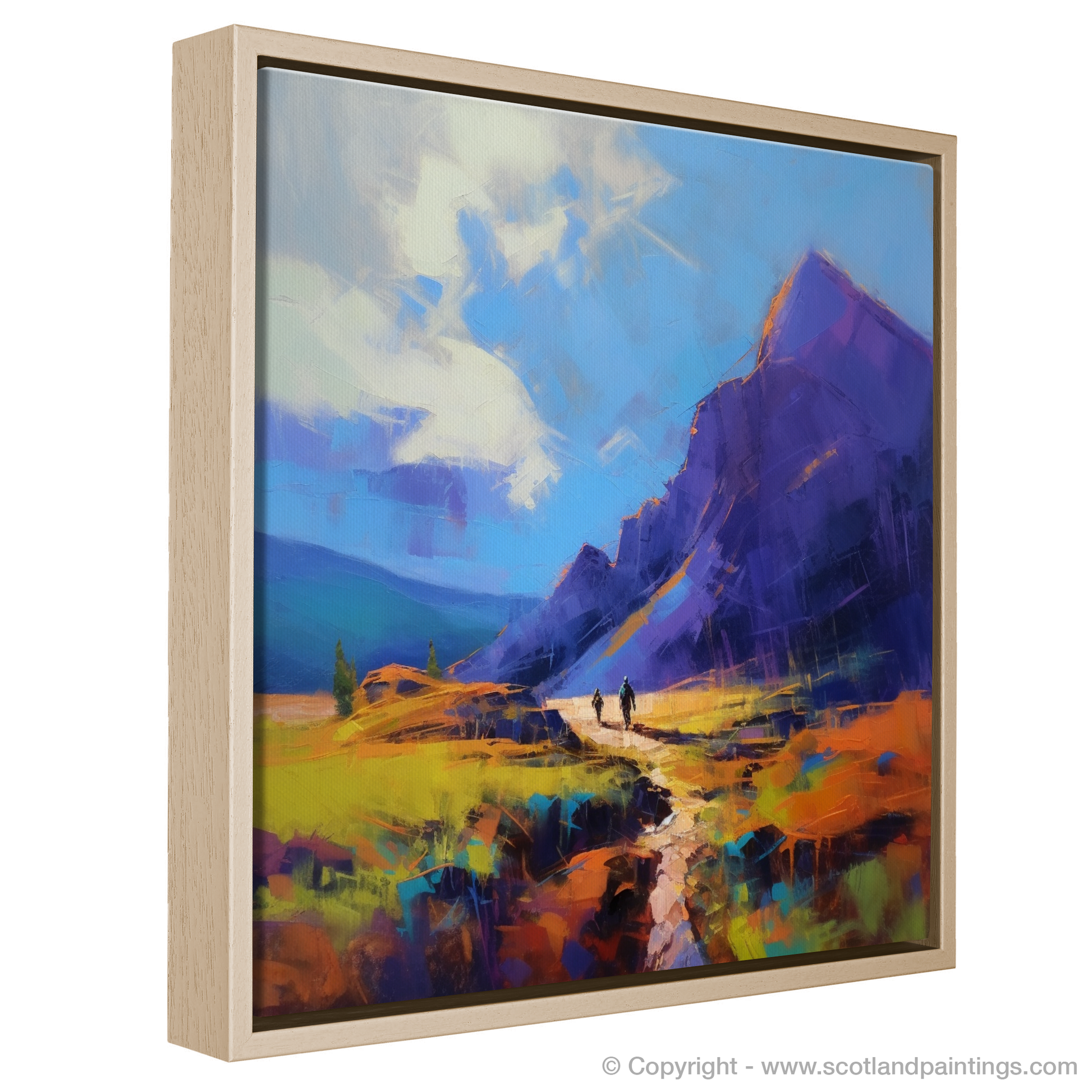 Stepping into a world where the vividness of colours transforms the ruggedness of nature into a palette of emotions, this striking print invites viewers to journey through the wild beauty of Glencoe. Inspired by the well-trodden paths to Buachaille summit, the piece captures the essence of an adventurous spirit amidst the enchantment of the Scottish Highlands.