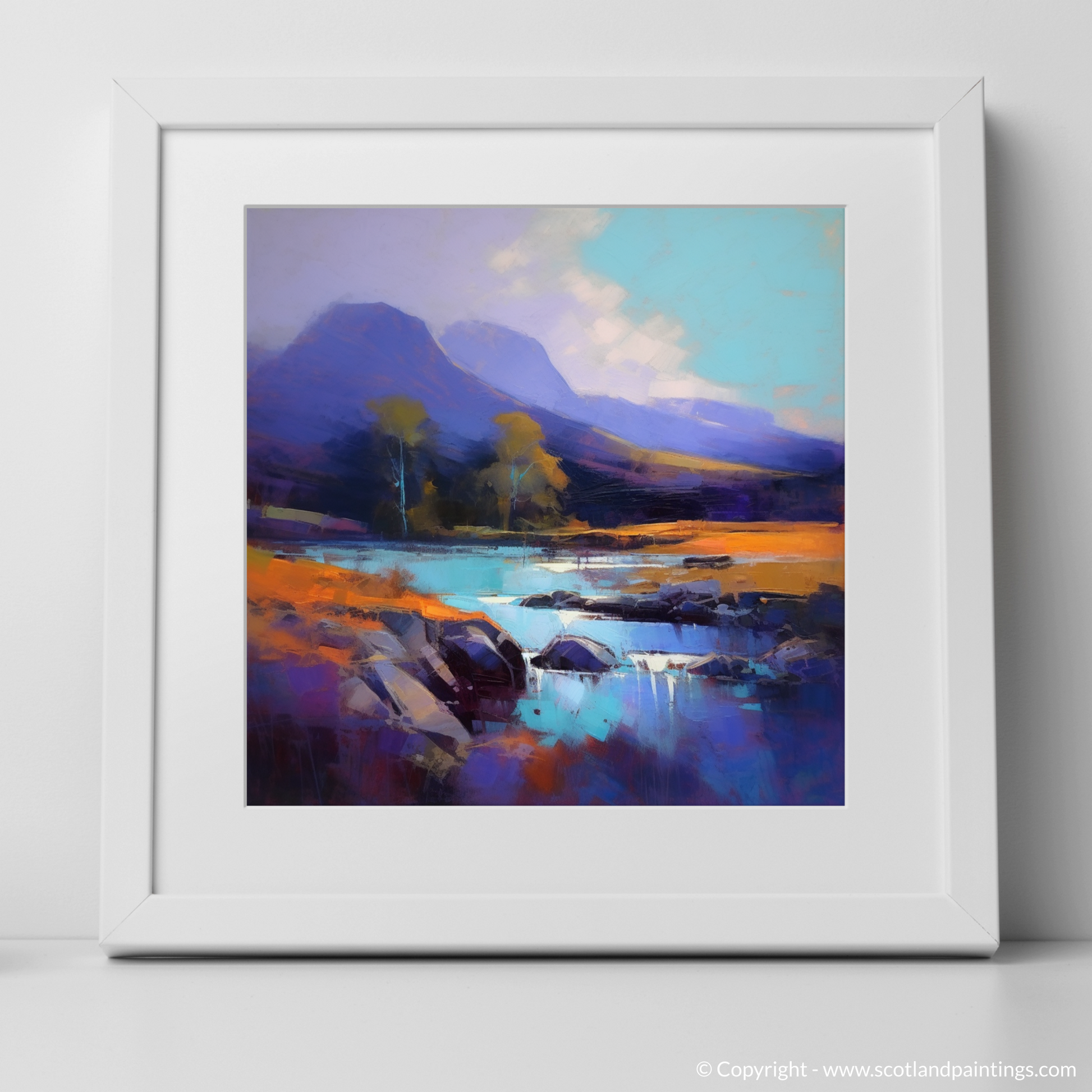 Immerse yourself in the vivid hues and emotional intensity of our latest offering, an enchanting print that captures the raw beauty of glistening rapids within the captivating Glencoe landscape. Through a masterful use of colour and form intrinsic to the Expressionist style, the illustration brings to life a dynamic scene where the natural world pulses with energy and spirit.