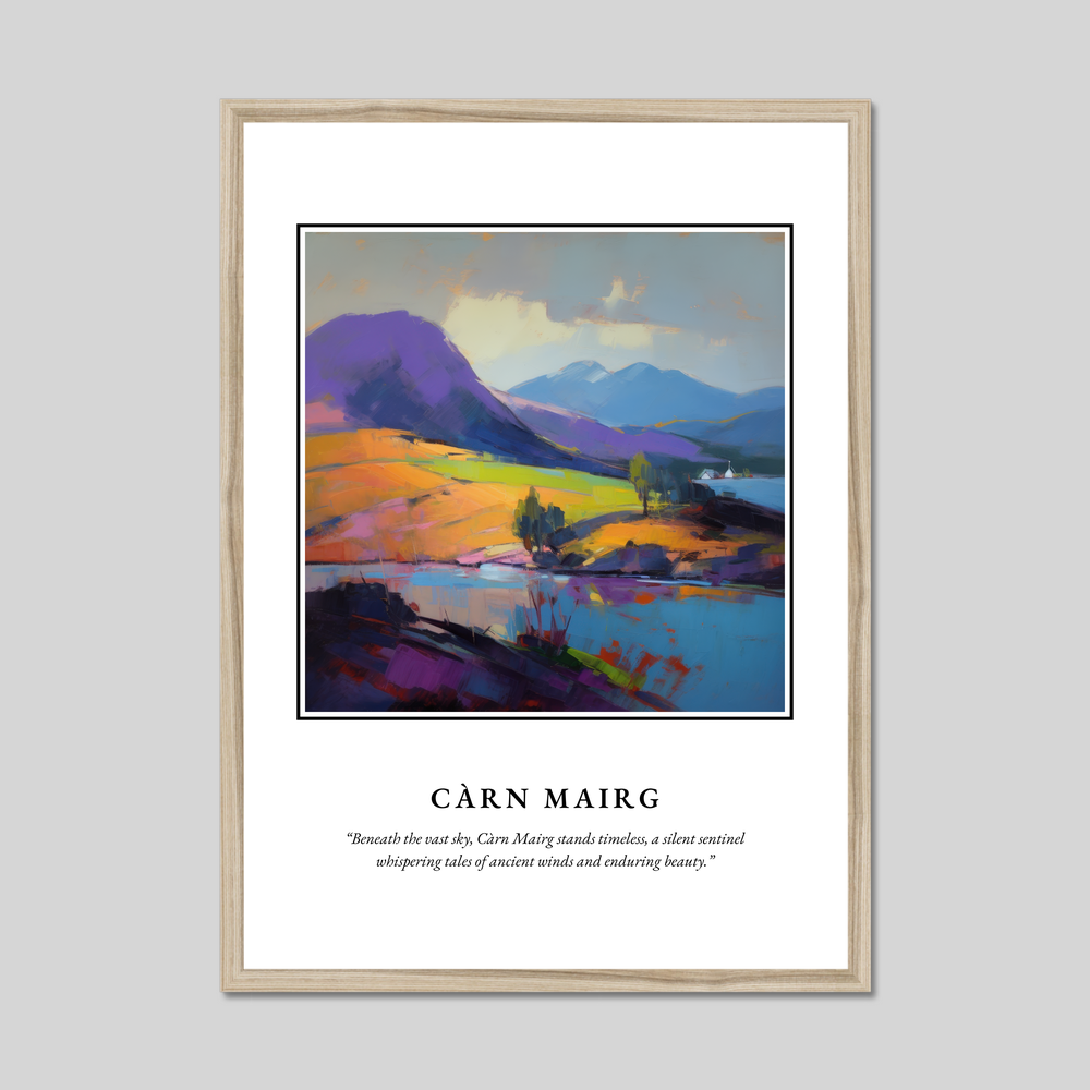 Immerse yourself in the breathtaking beauty of Scotland with our captivating framed poster print, a grand 50cm x 70cm tribute to the majestic Càrn Mairg. This statement piece, suitable for those with a passion for both art and the Scottish landscape, elegantly showcases the enchanting allure of the Munros through the vibrant lens of Expressionism.