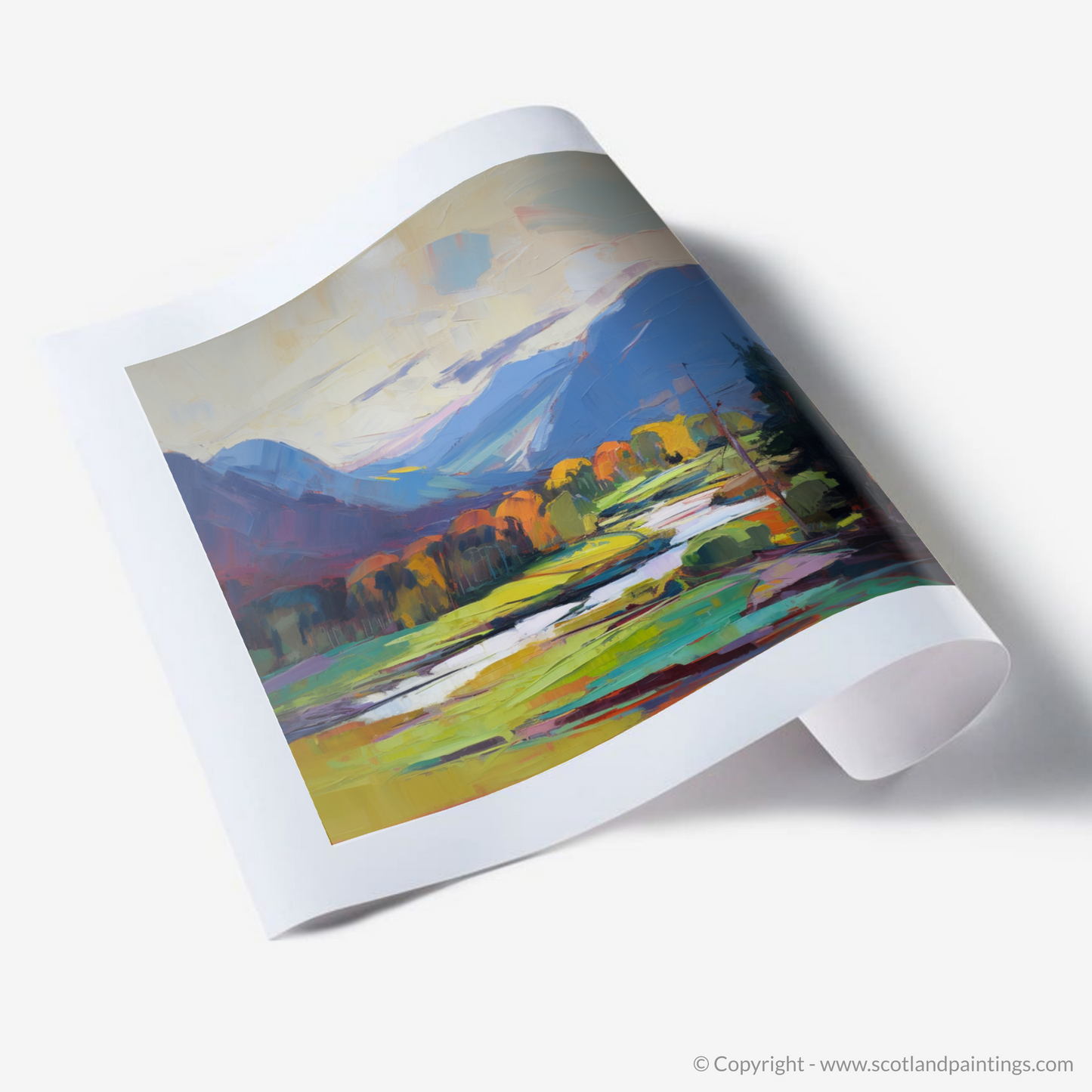 Immerse yourself in the vivid and vibrant landscape of Glen Affric through the strokes of expressionism that capture the Highland's breathtaking beauty. This evocative print brings to life the raw and rugged grandeur of one of Scotland's most scenic glens, rendered with a dynamism that pulses with the wild spirit of the land.