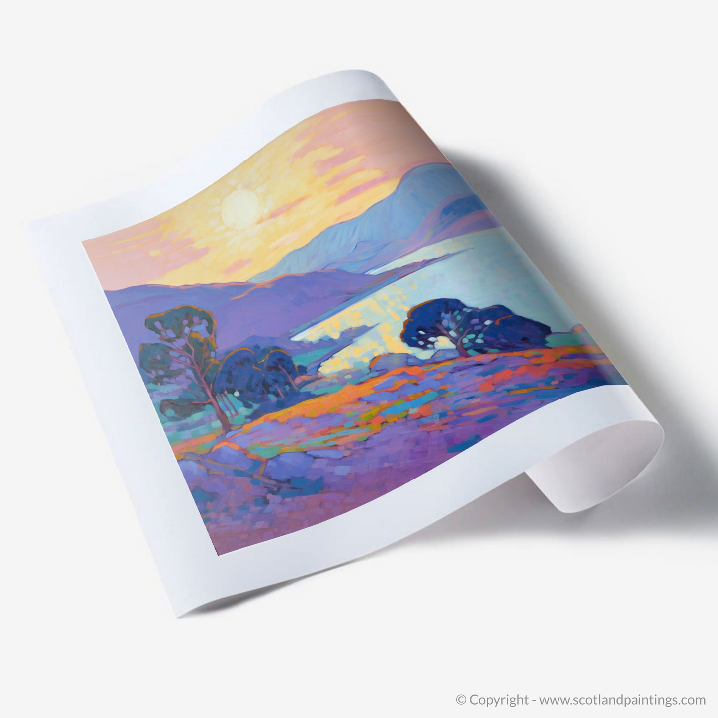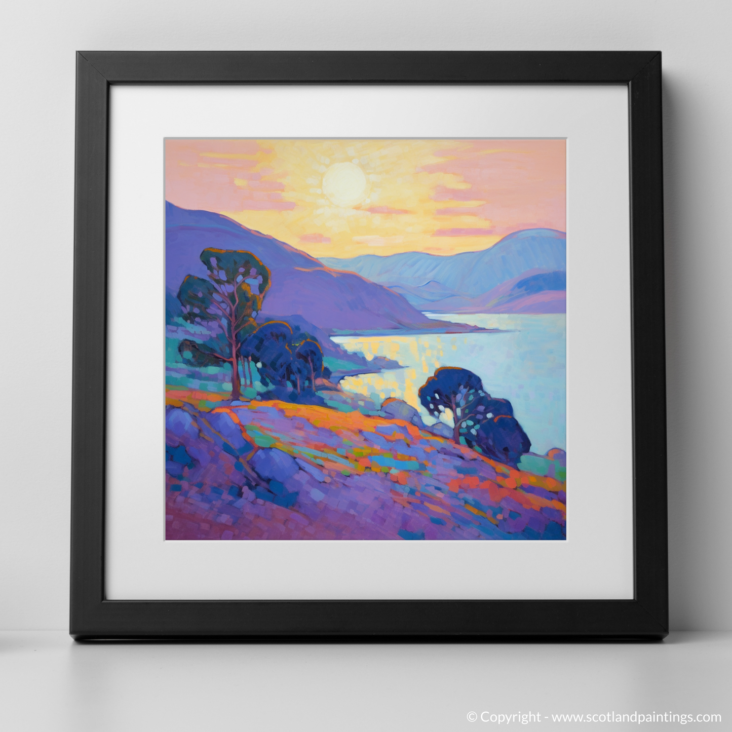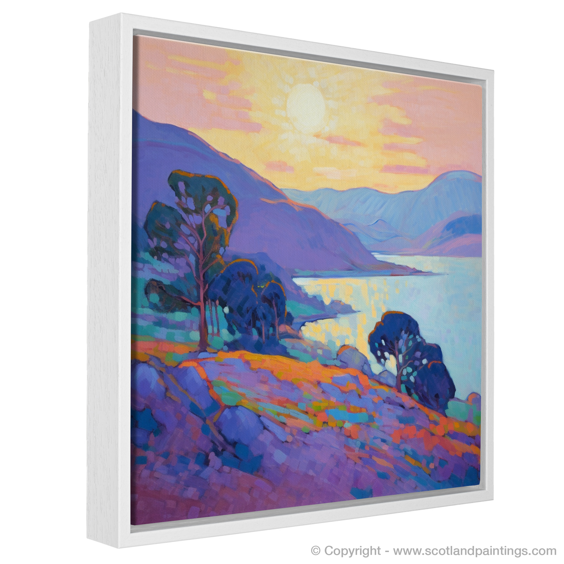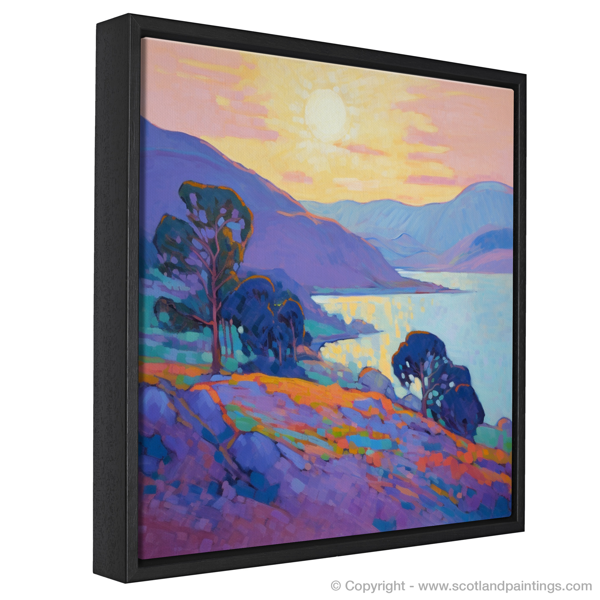 Capturing the ethereal charm of Langamull Bay at the magic hour, this exquisite print transports the viewer to a serene Scottish Cove bathed in the soft glow of dusk. The harmonious play of colour sets the bay ablaze with life, as vivid purples and blues create a rhythmic dance that simultaneously soothes and invigorates the soul.