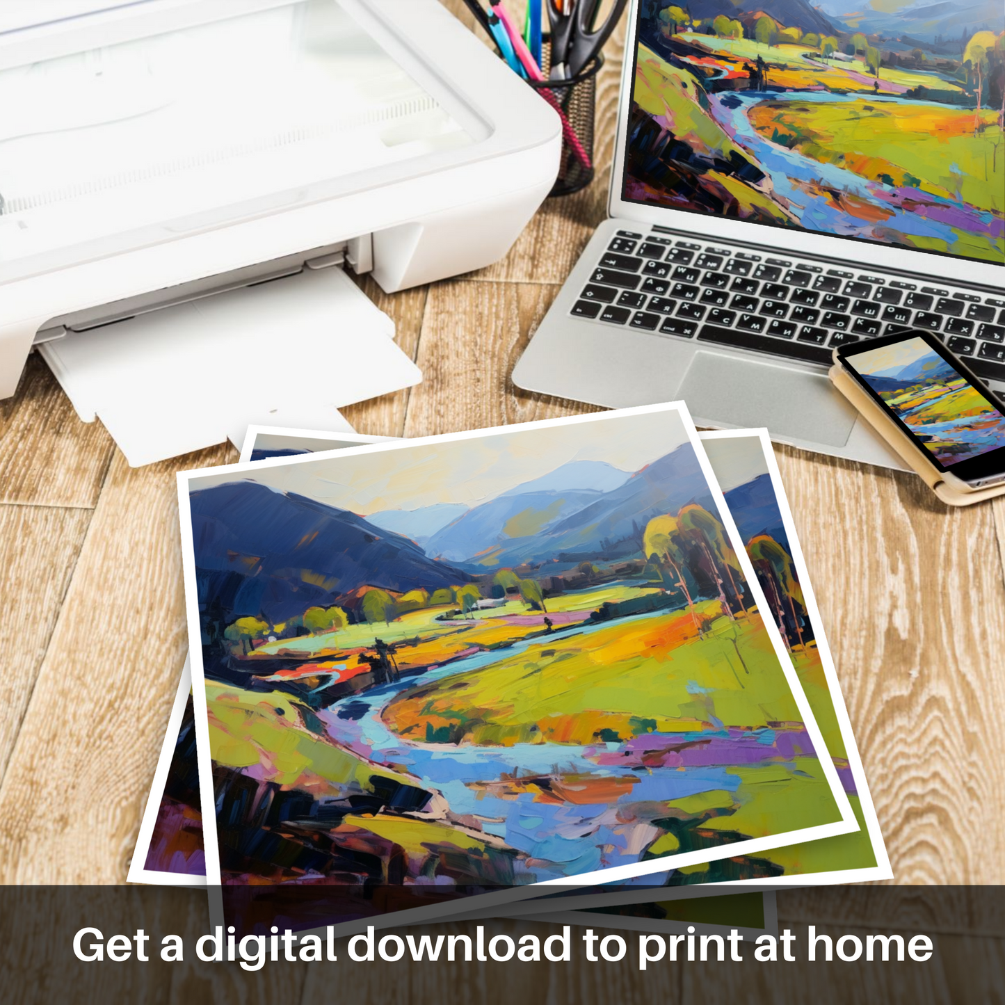 Adorn any space with this print and let it serve as a window to the Scottish highlands, where the land's untamed beauty is immortalised in a dance of colours, ever-reminding viewers of the artistic allure found in the world around us.