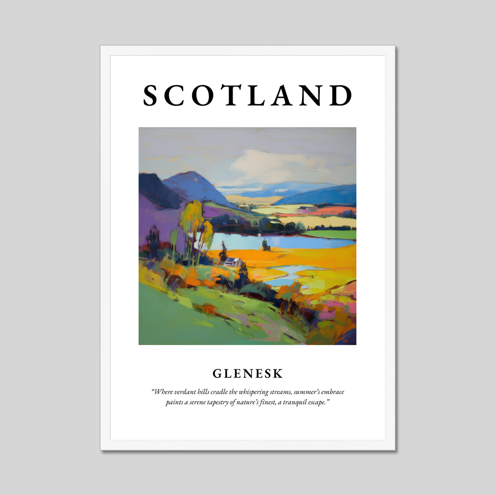 For those who have visited Glenesk, or dream of doing so, this poster is a nostalgic journey back to its verdant beauty. It offers a piece of paradise for those with roots in the area or a passion for expressive art that speaks directly to the soul.