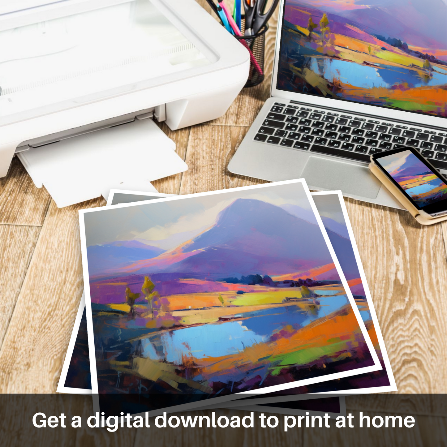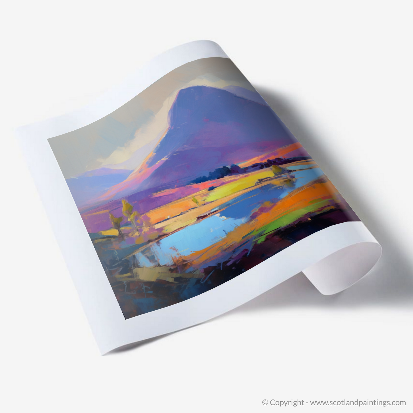 This print invites the viewer to journey into an abstracted highland realm where emotion and landscape are entwined. It is a celebration of one of Scotland's treasured peaks, a keepsake for admirers of bold, expressionist art, and a reminder of the untamed beauty found in the heart of the Scottish Munros. Add this piece to your collection and let the spirit of Beinn Ghlas infuse your space with its enduring wonder.