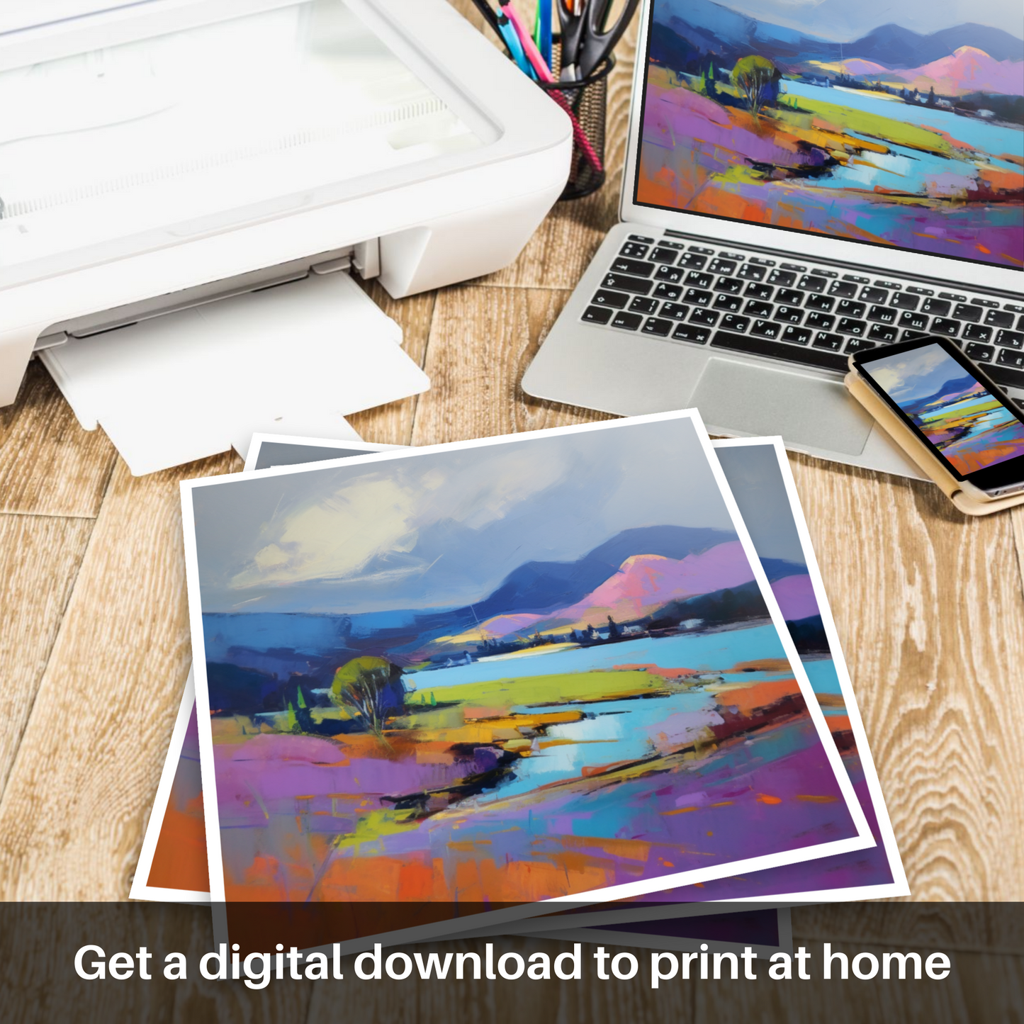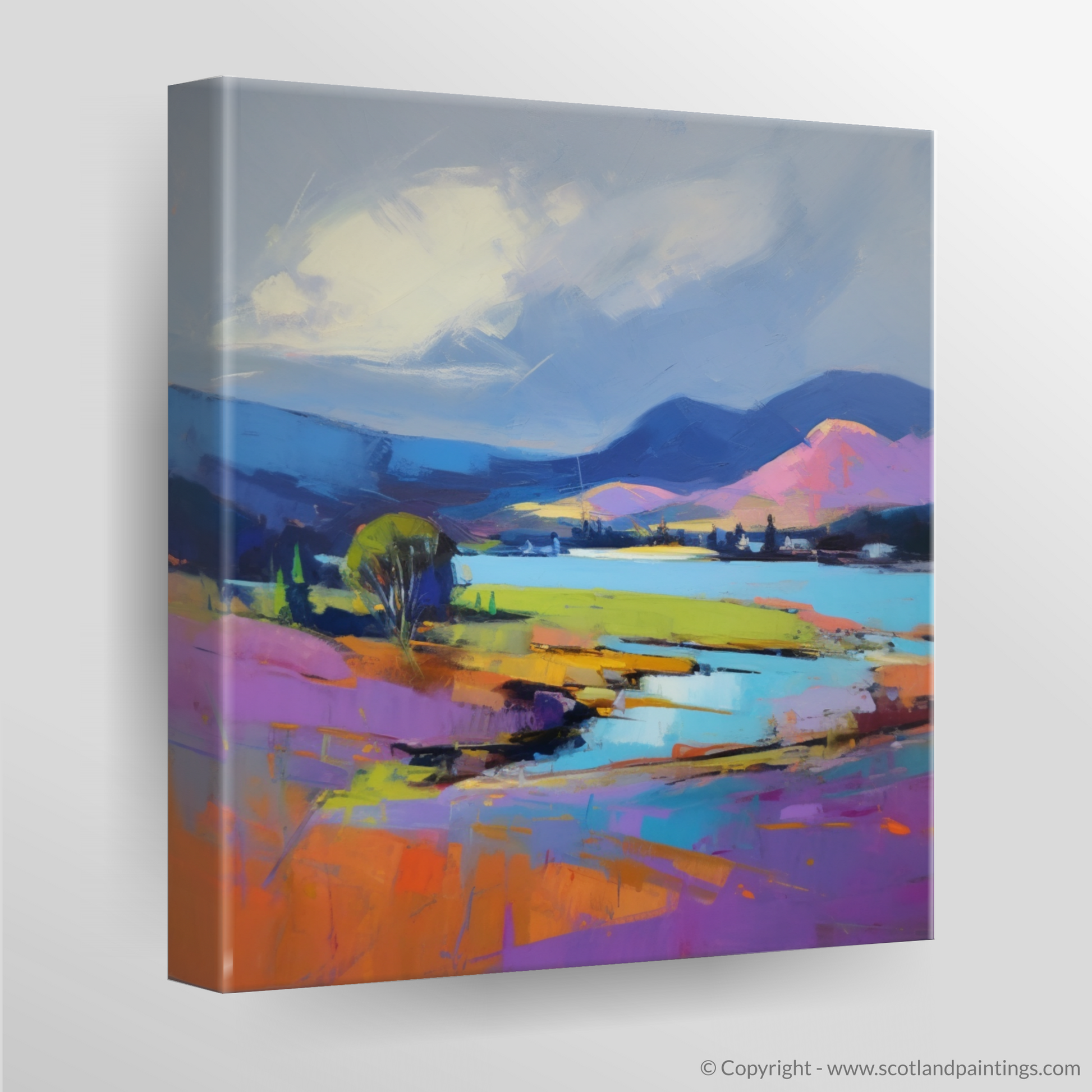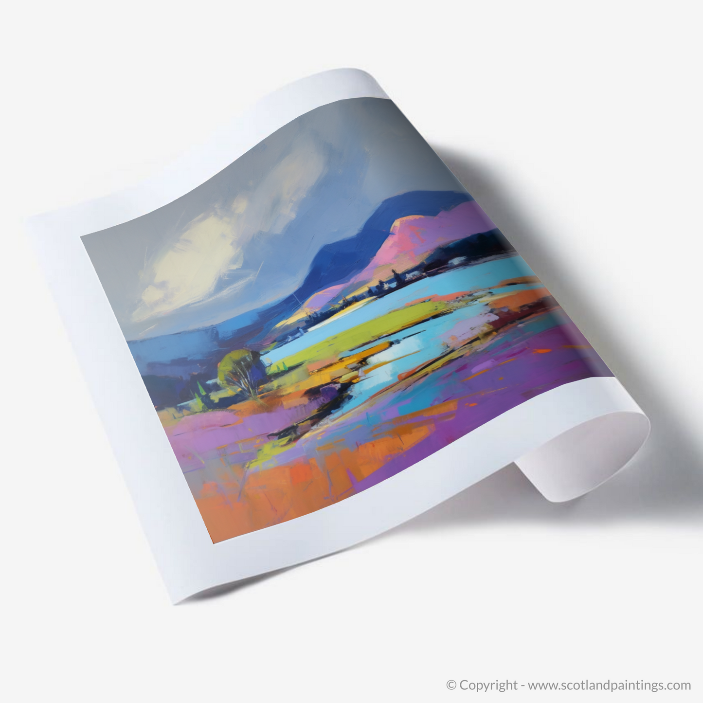 Immerse yourself in the vibrant tumult of nature with this stirring expressionist print. Capturing the untamed spirit of Lochinver Bay, the artwork evokes the moody essence of the Scottish landscape beneath a storm-brewing sky. Sweeping brushstrokes in a kaleidoscope of rich, emotive colours convey the dynamic energy of the approaching tempest as it rolls over the water and the wild terrain.