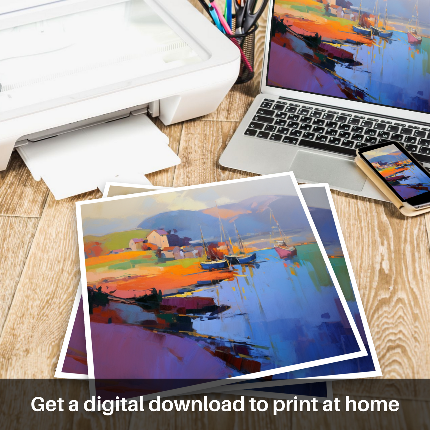 Ideal for lovers of Scottish seascapes and expressionistic art alike, this print promises to be a captivating presence, bringing with it the serene energy of Eyemouth Harbour's golden hour. It is a piece that doesn't simply depict a view but encapsulates an experience, turning any space into a haven of contemplative reverie.