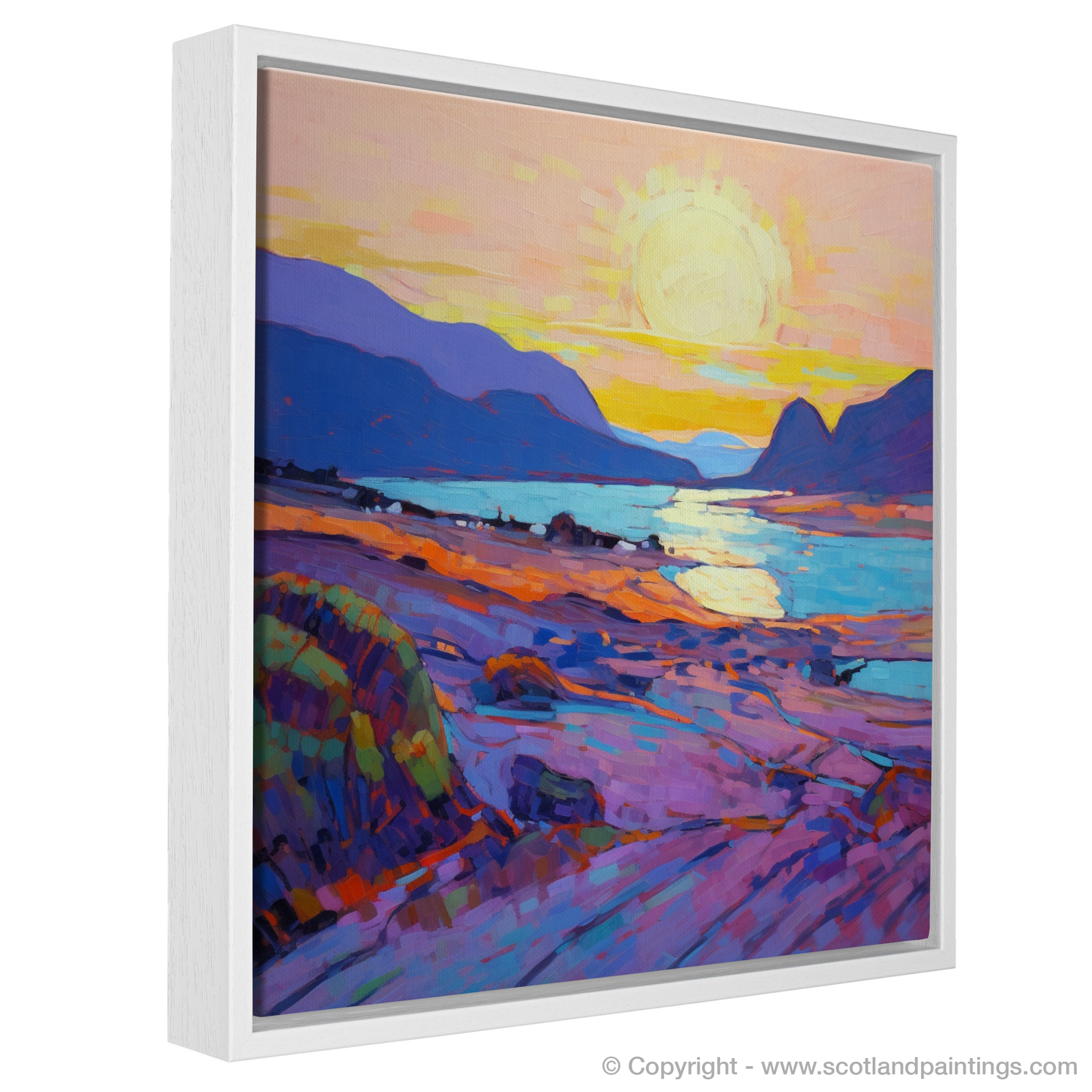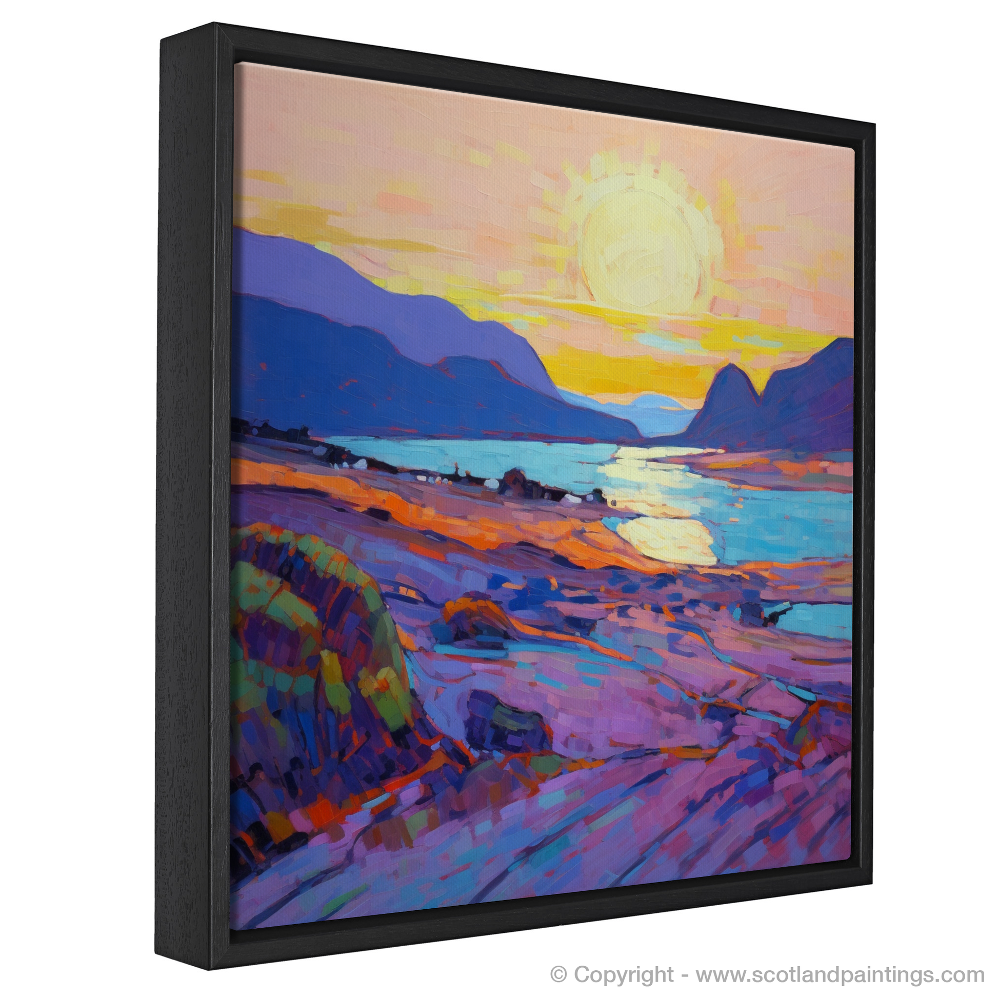 This print is more than a visual treat; it's an homage to the raw and untamed beauty of Scotland's coastline. It wraps the viewer in the cool embrace of an impending night, while the dying light of day sets the sky and sea ablaze with colour. It's a piece for the lover of nature's splendor, the dreamer in search of quietude, and the art enthusiast who appreciates the impressionist technique's ability to capture sensation over form. Embrace the tranquility of a Scottish sunset that will endure long after the light fades over Achmelvich Beach.