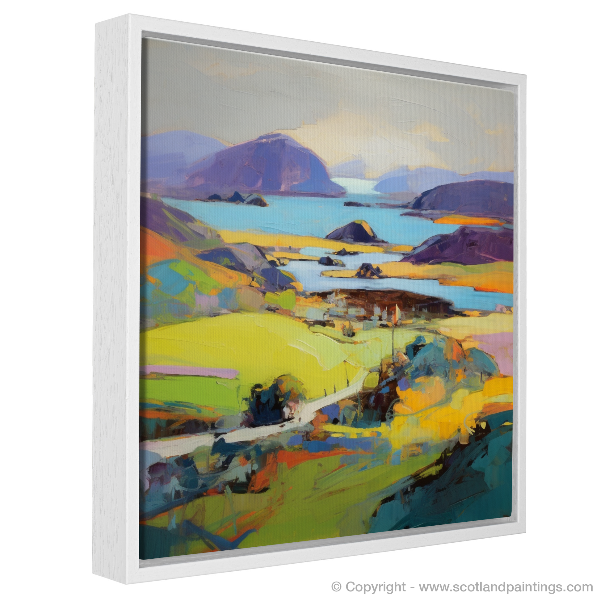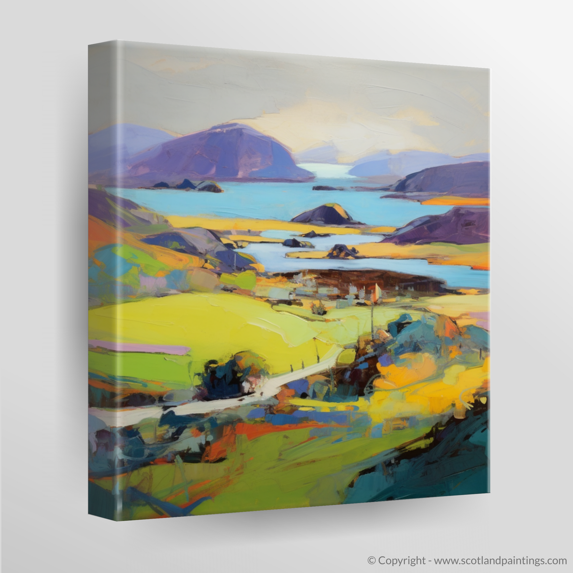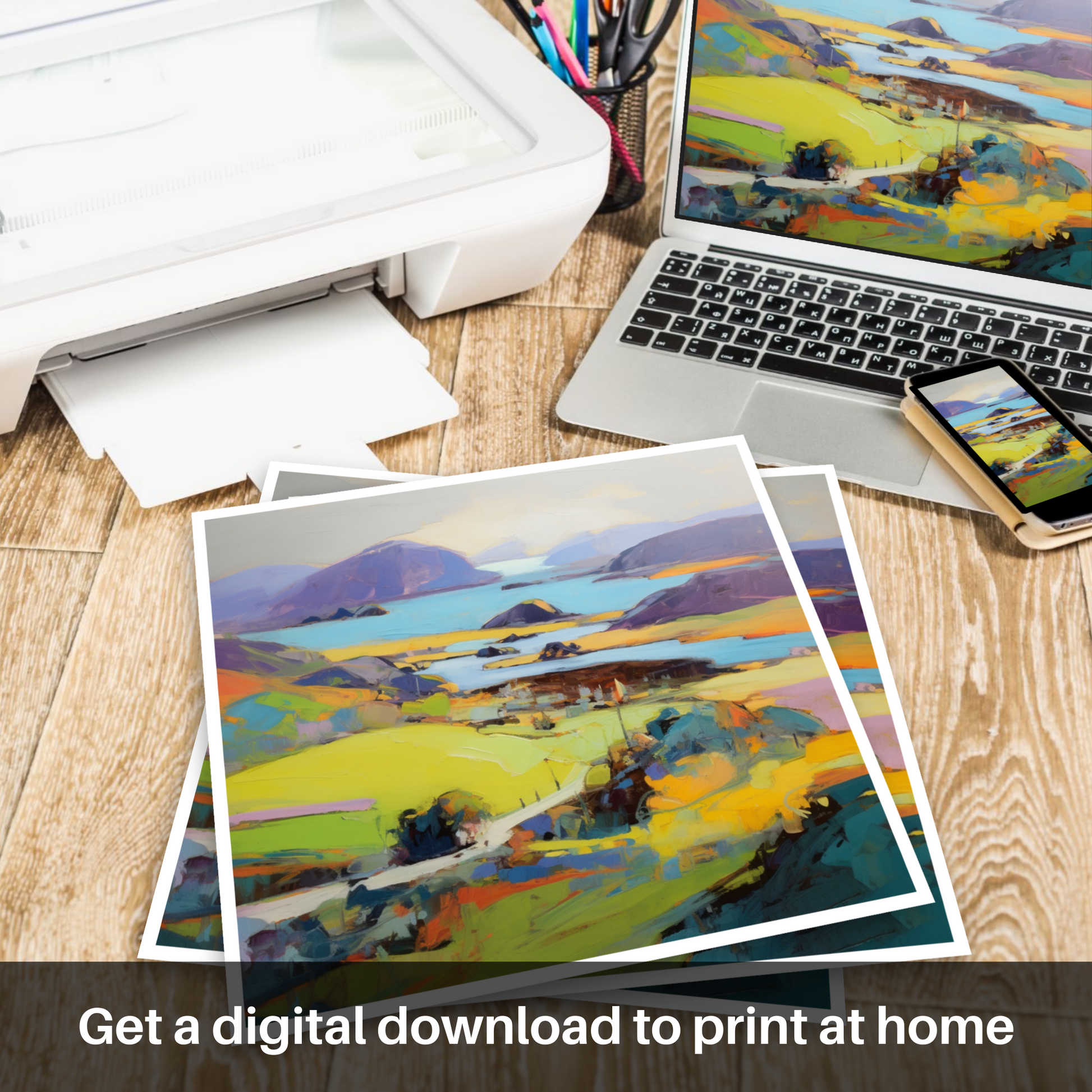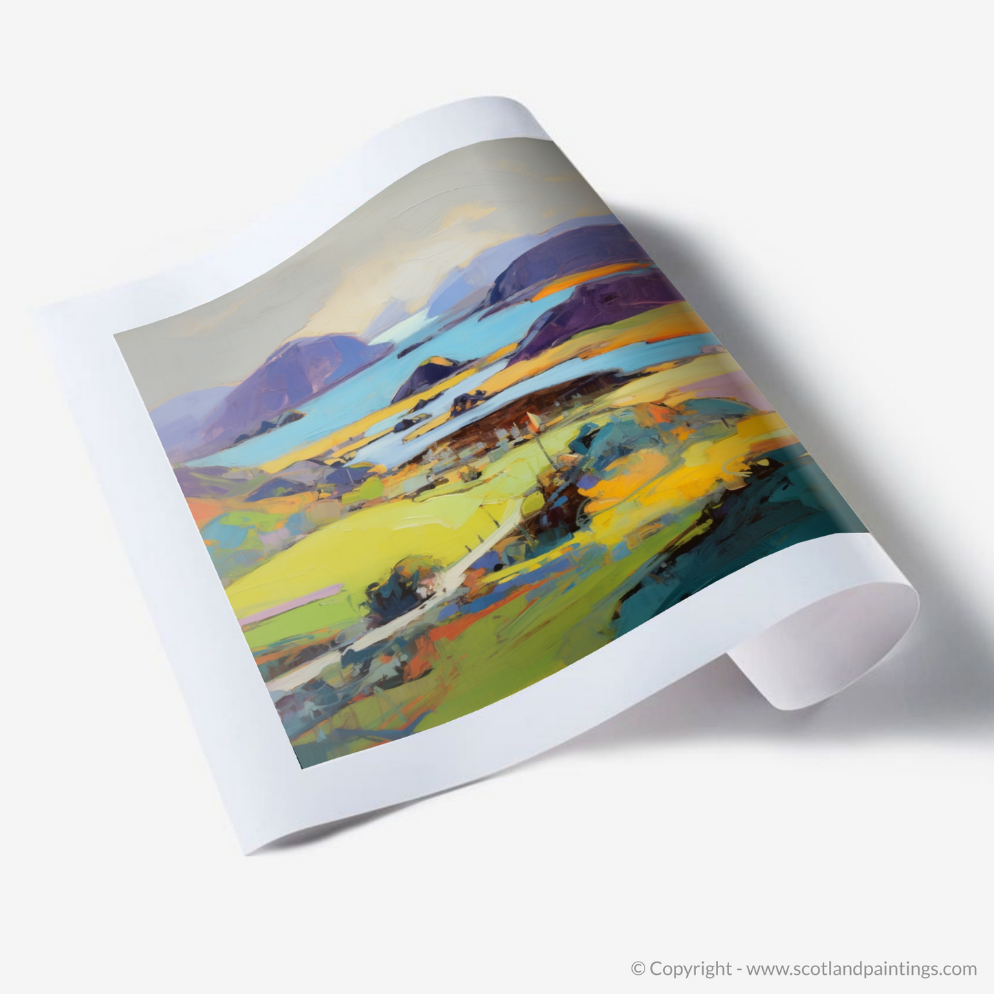 Immerse yourself in the vivid and vivacious beauty of the Isle of Lewis, a jewel in the Outer Hebrides, expertly captured through the emotive brush strokes of an Expressionist-inspired piece. This evocative print beckons viewers into a world where the wild splendour of Scotland's summer is displayed in a kaleidoscope of colour and form.