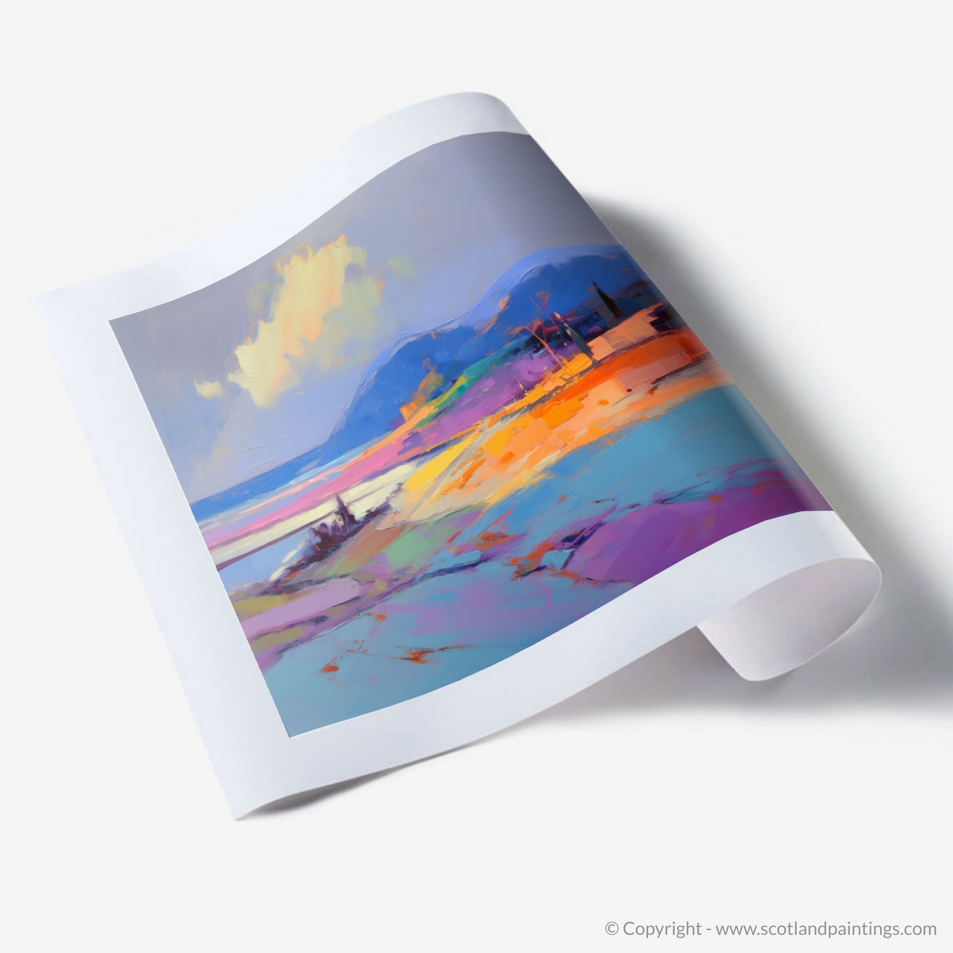 The vitality of the coastal elements is palpable, with the painterly marks suggesting the brisk wind and the ebb and flow of the tides, while delicate details in the foreground hint at the unique textures of the sand and brush. This print is a sensory journey, a chance to own a swathe of Scottish beauty that will continue to unfold and inspire with each viewing.