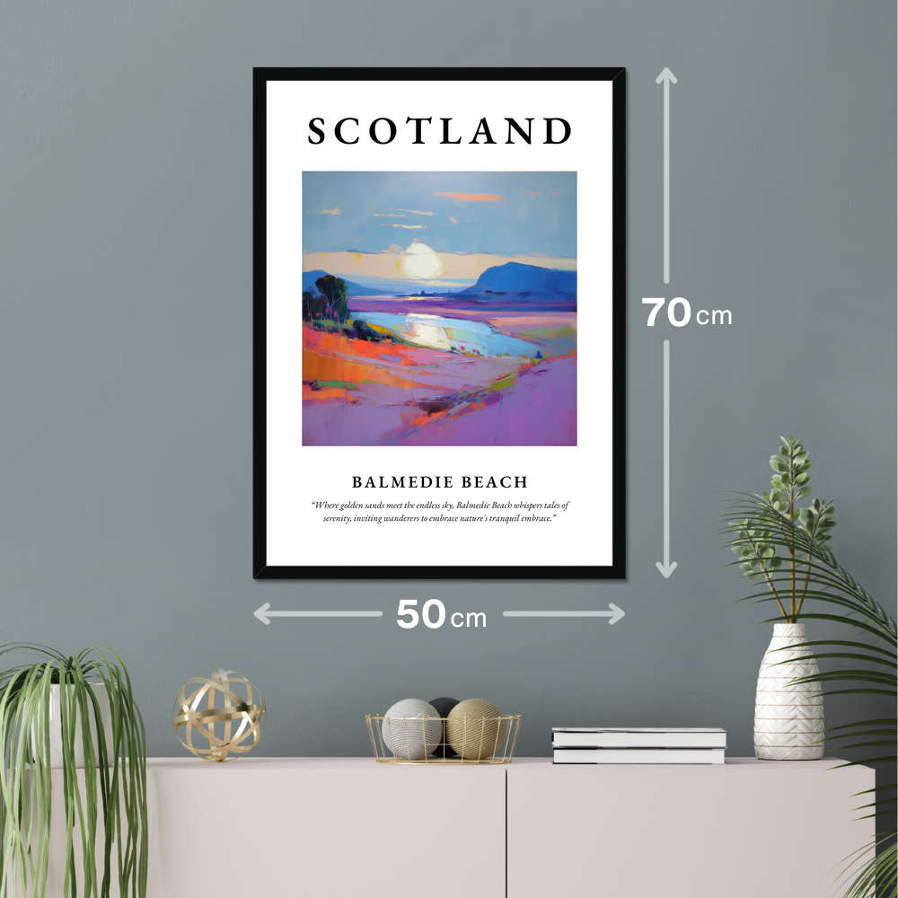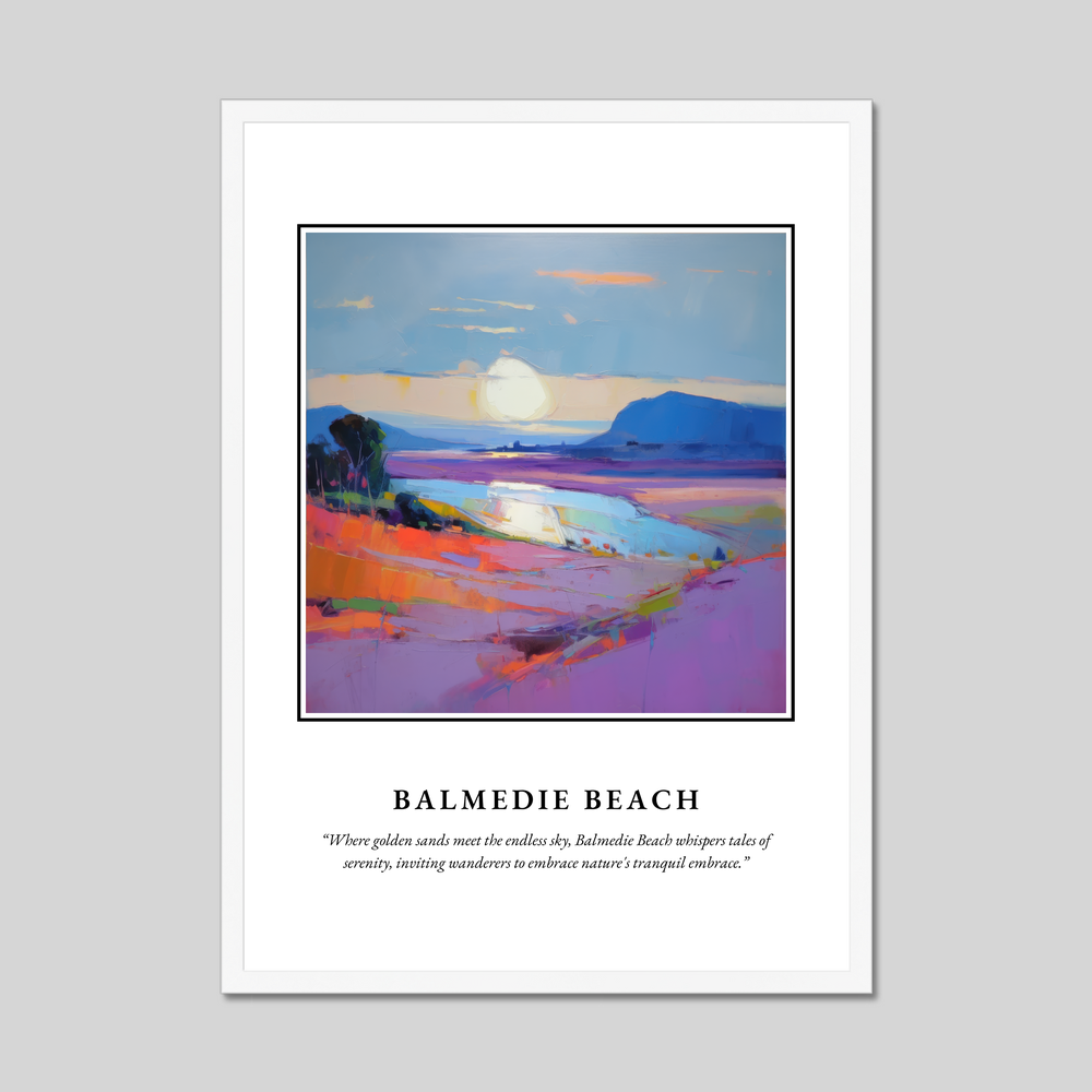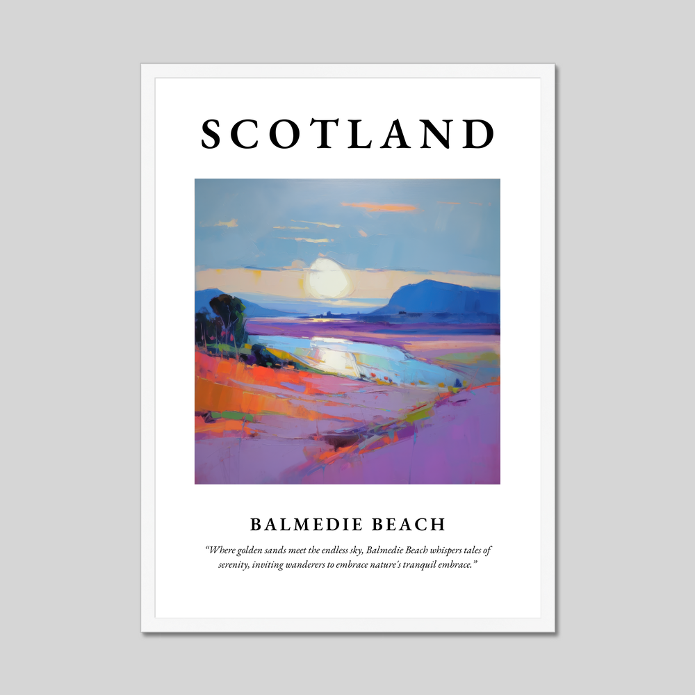 Celebrate the serene beauty of Scotland with our striking 50cm x 70cm framed poster print, featuring the enchanting Balmedie Beach in an awe-inspiring Expressionism style. Available in a sophisticated black, elegant white, or natural wood-effect frame, this substantial artwork commands attention without a hefty price tag, making it an ideal choice for art lovers and Scotland enthusiasts alike.