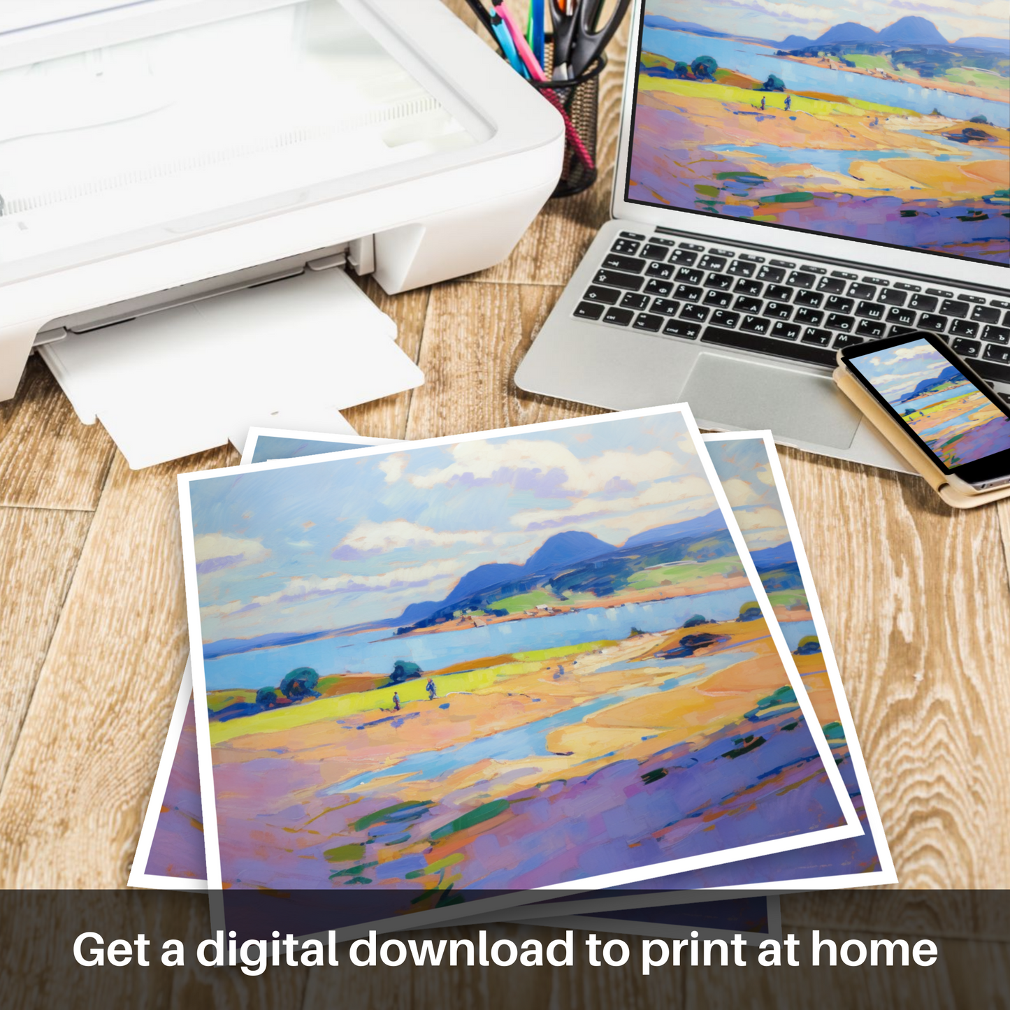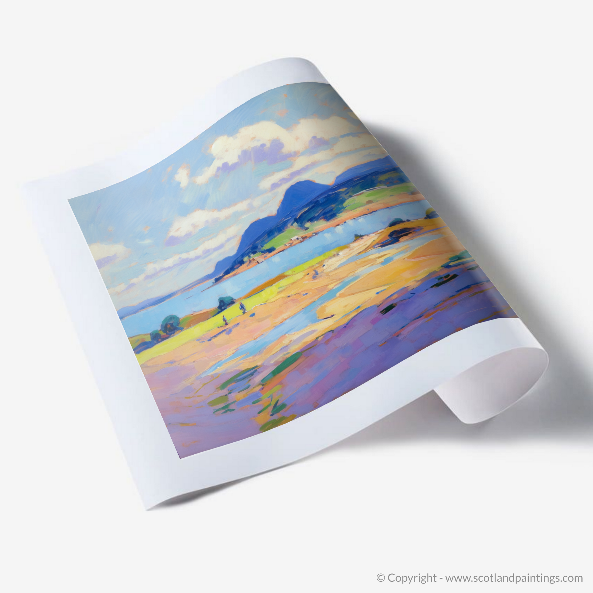 Captured in a vibrant dance of colours, this exquisite print transports viewers to the serene shores of Longniddry Beach in East Lothian, immortalising a quintessential summer's day in Scotland. Brushstrokes suffused with the warmth of the sun and the fresh coastal air bring the scene to life, creating a tangible sense of the place's essence and atmosphere.