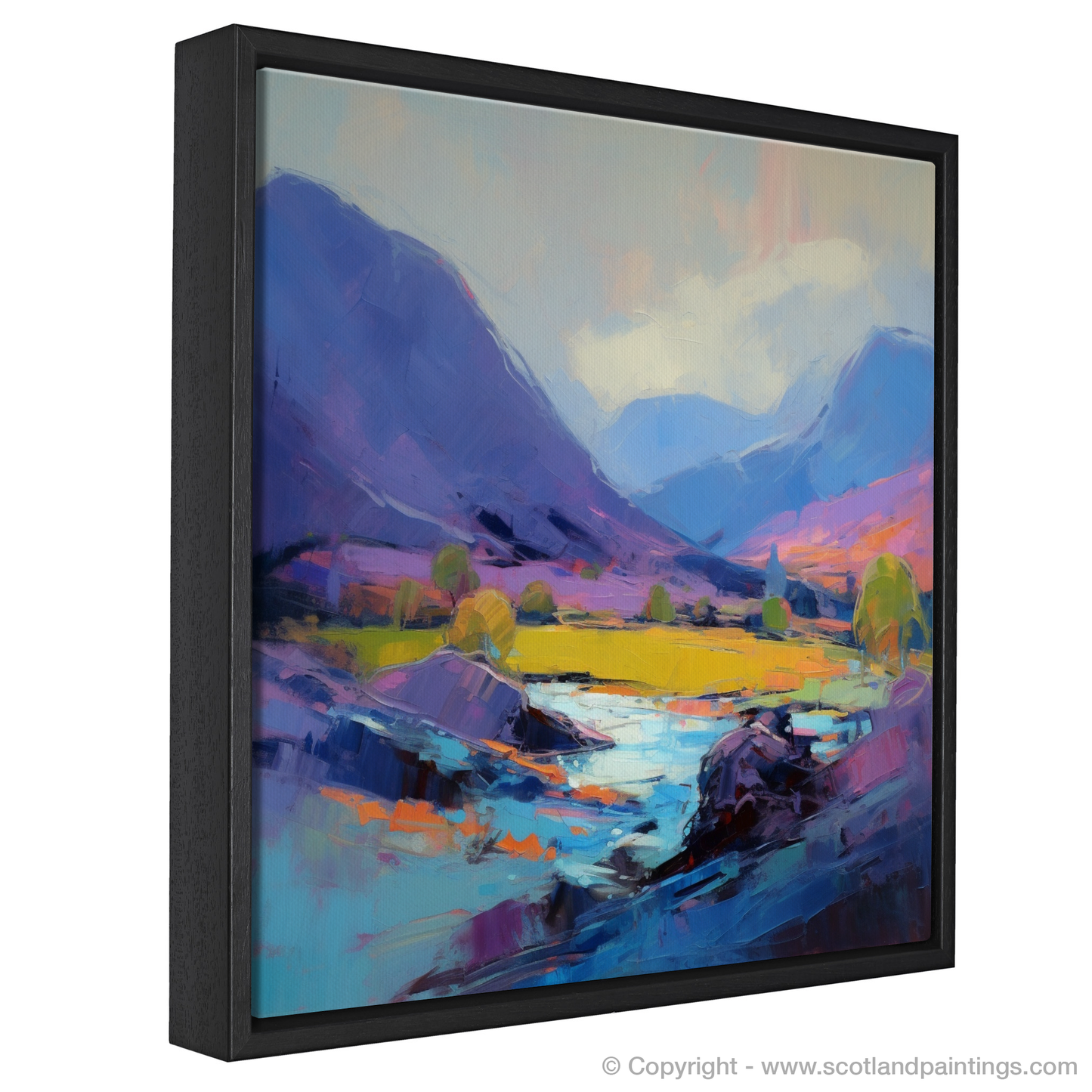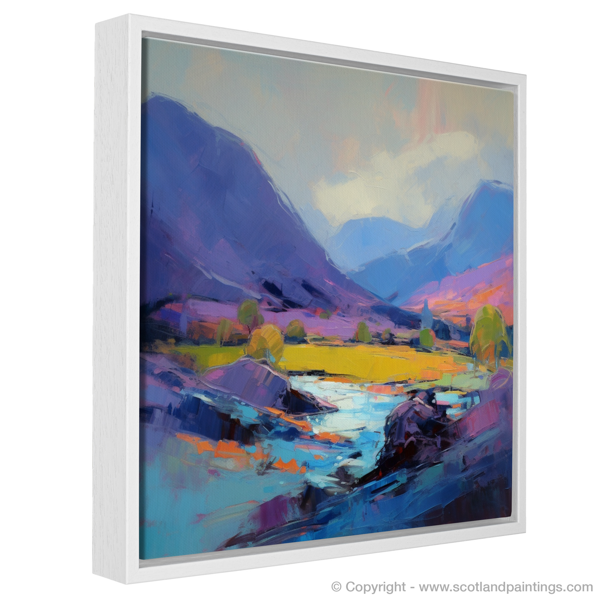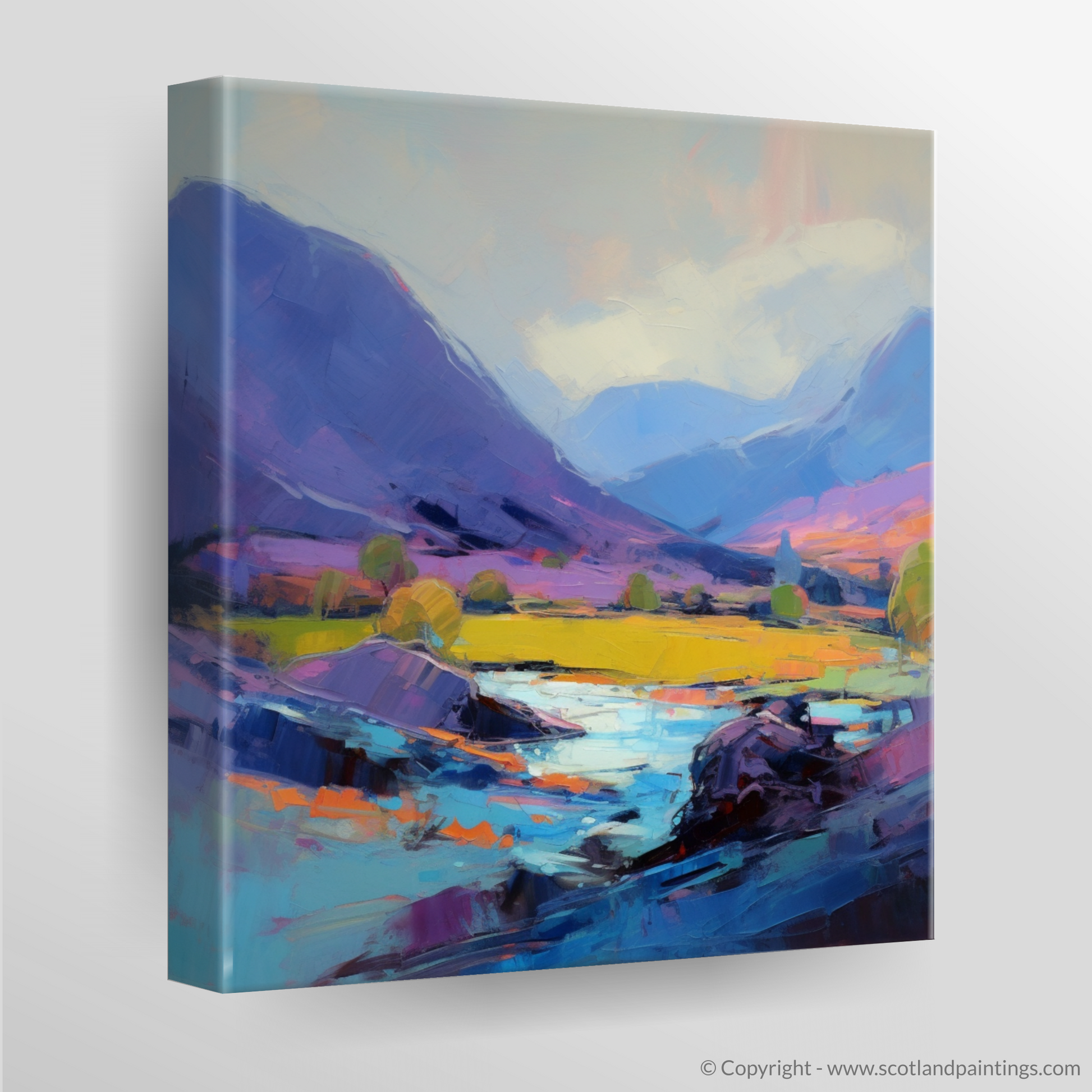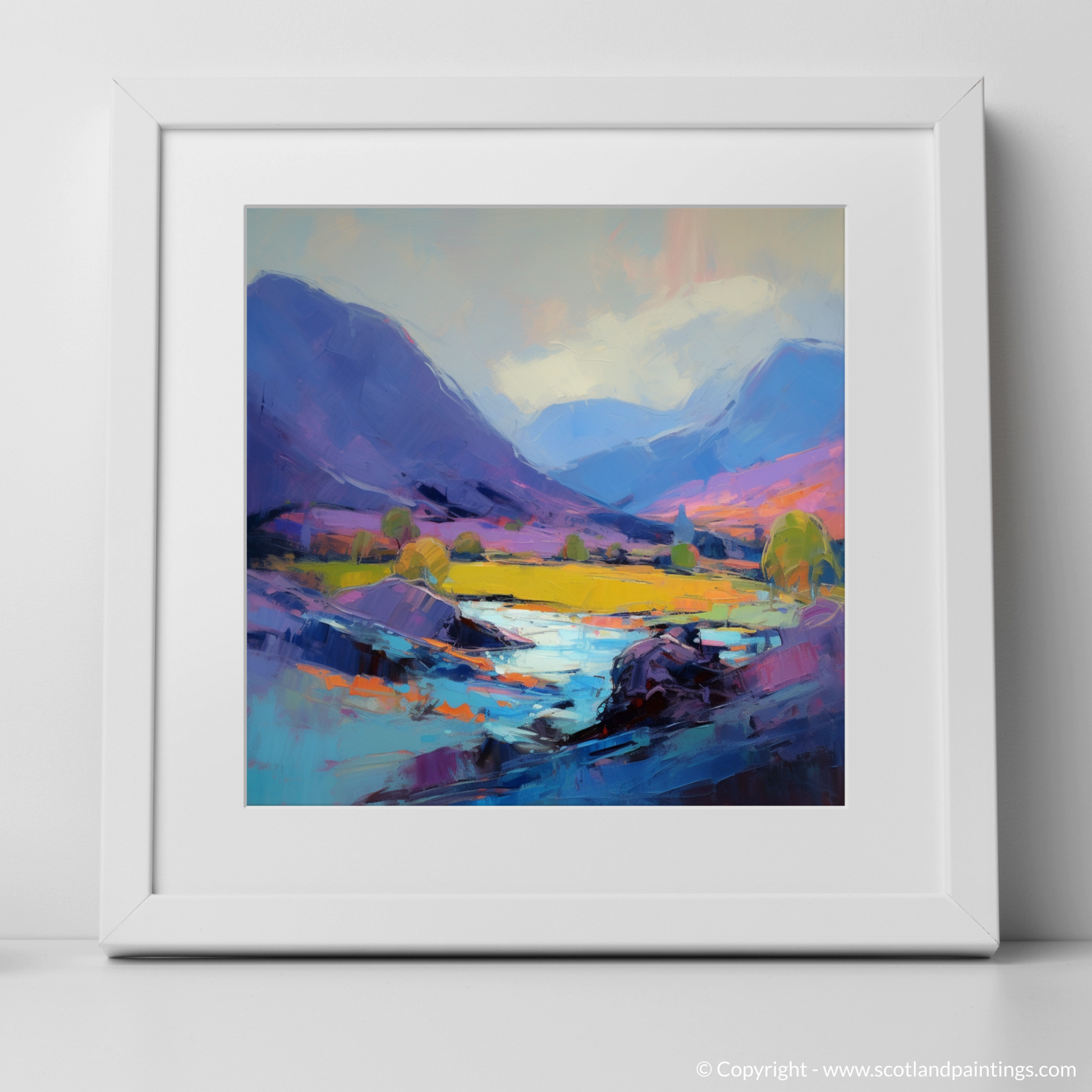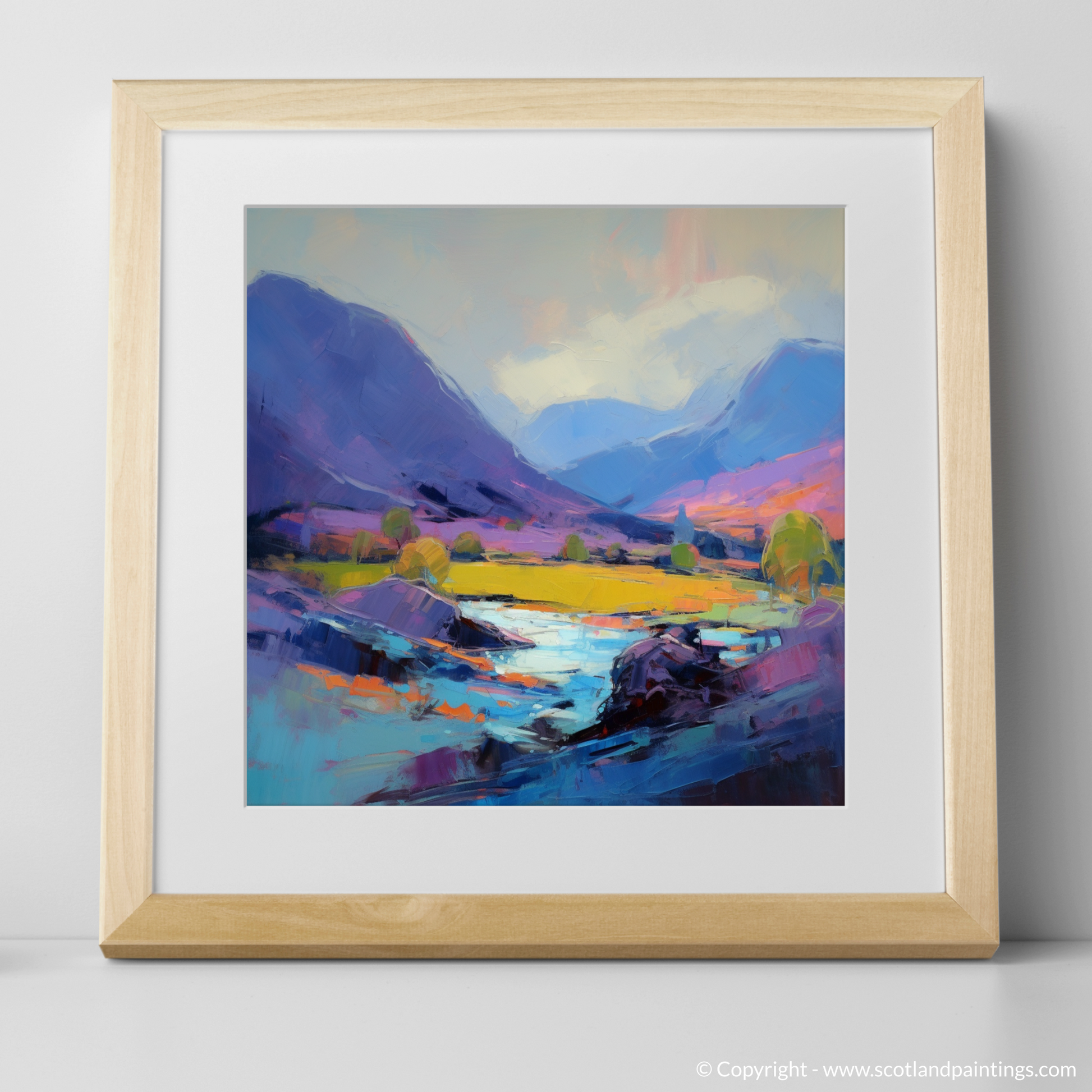The painting's bold, expressive brushstrokes convey the fierce movement of the elements, weaving together the landscape's natural grandeur with the chaotic dance of the weather. It is as if each stroke captures a moment in which the land itself is alive, brimming with stories and spirits of the glen.