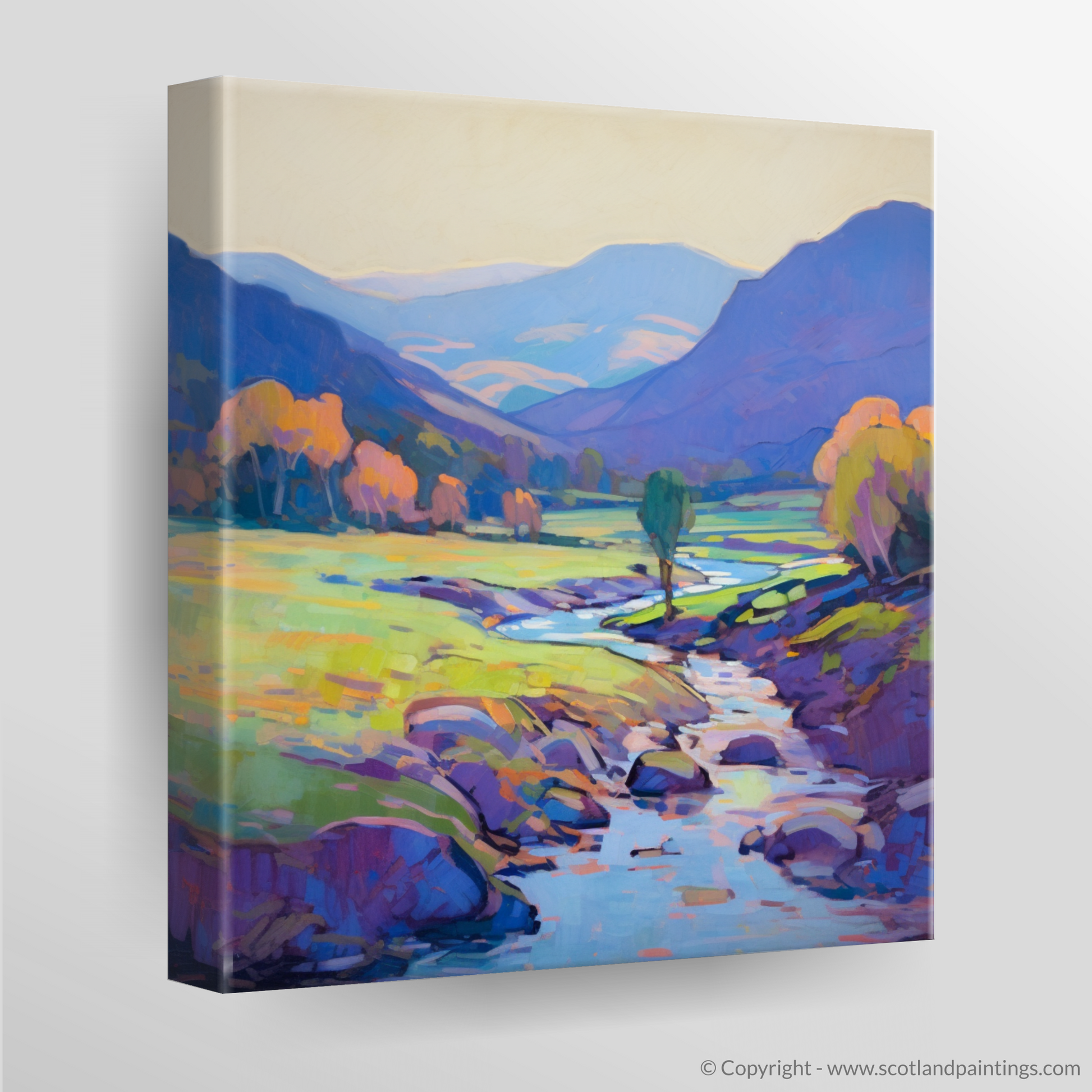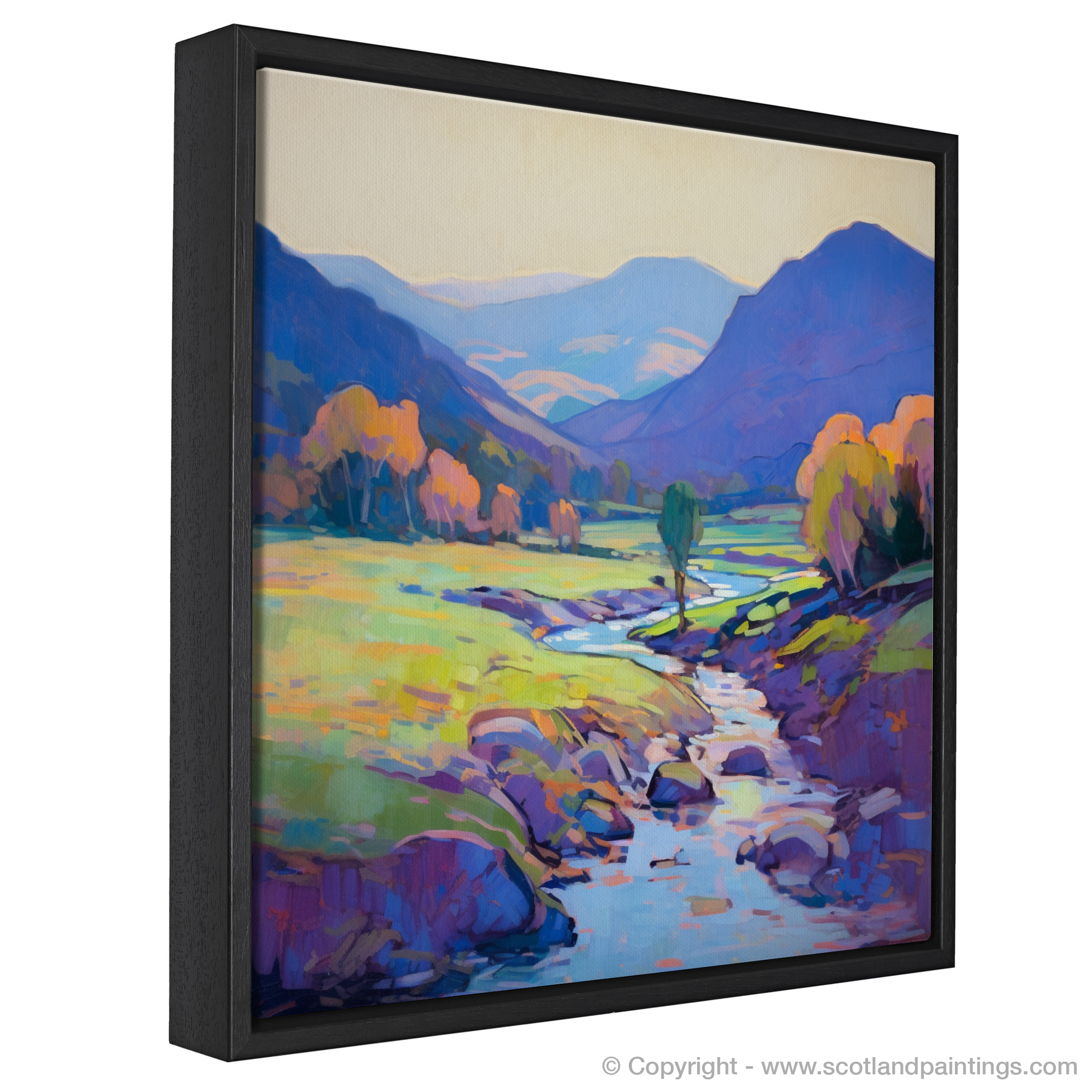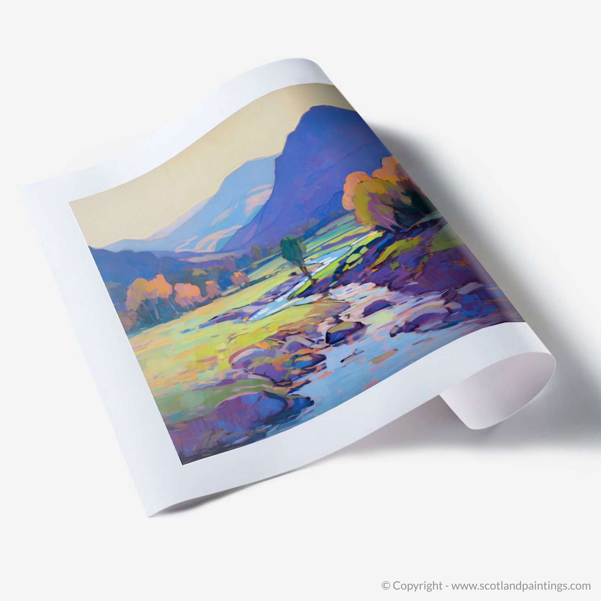 This impressionistic print from our 'Scottish Glens' collection invites the beholder on a silent journey through one of Scotland's most enchanting landscapes, encapsulating the timeless allure of Glen Strathfarrar in a sweep of colour and light that beckons the soul to wander, dream, and escape.