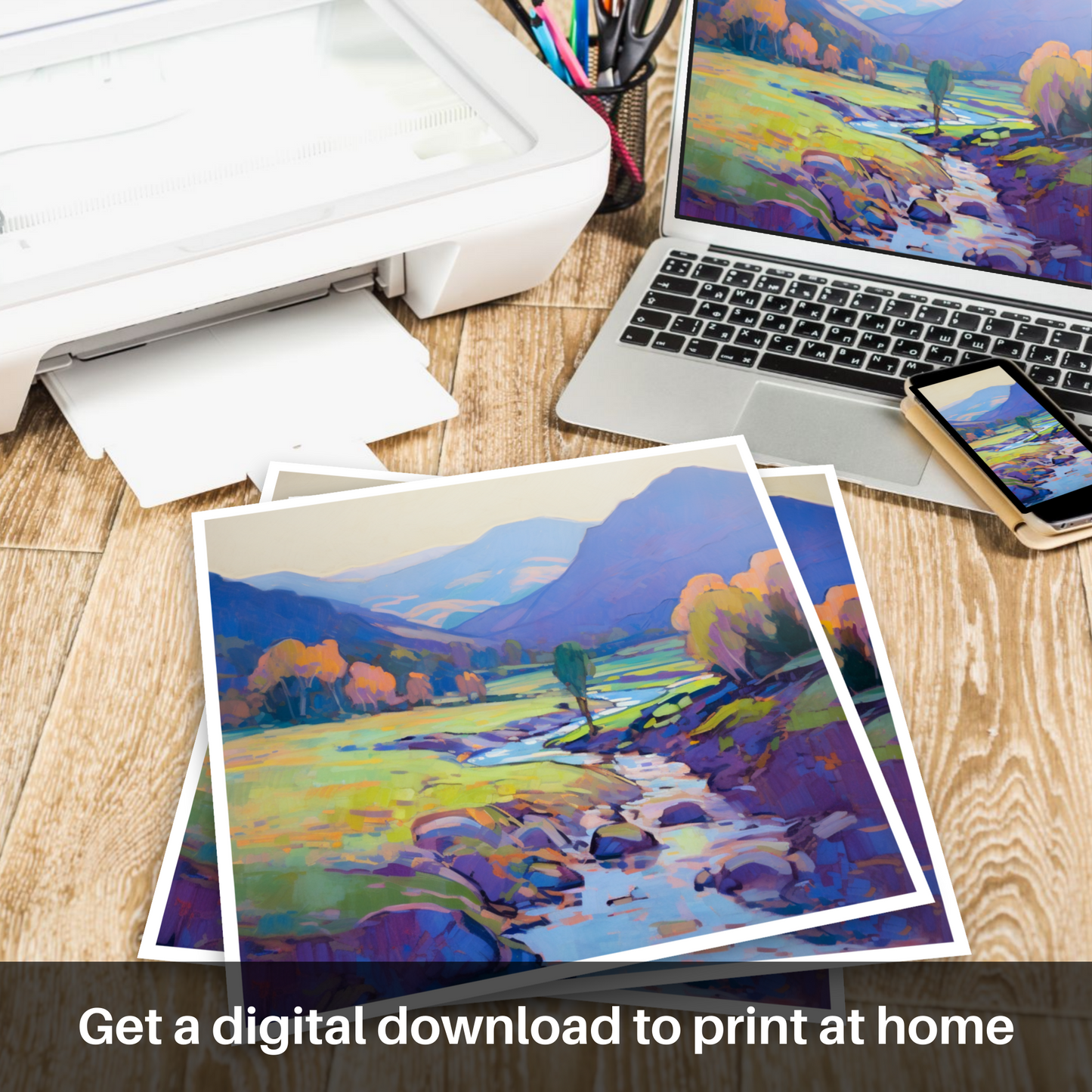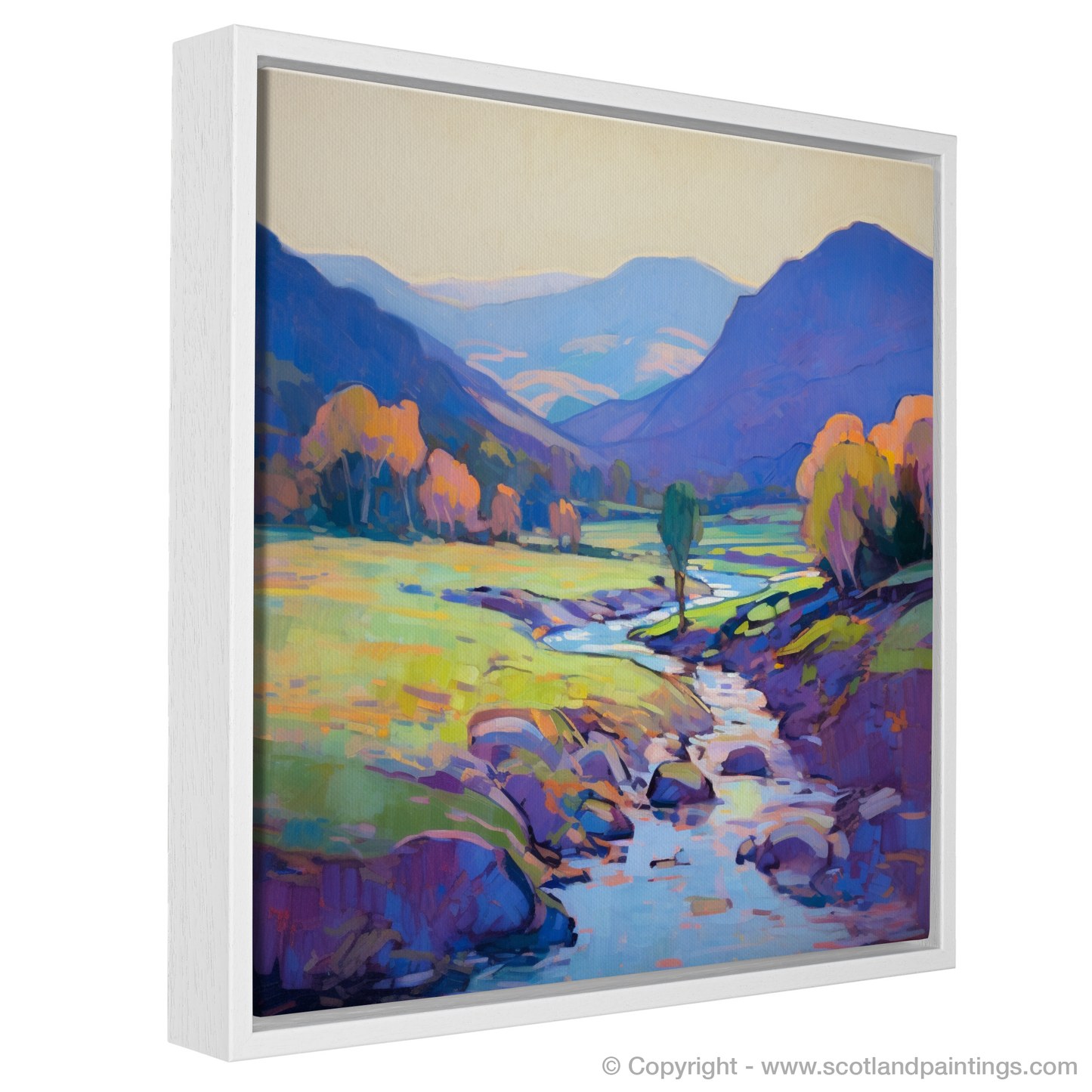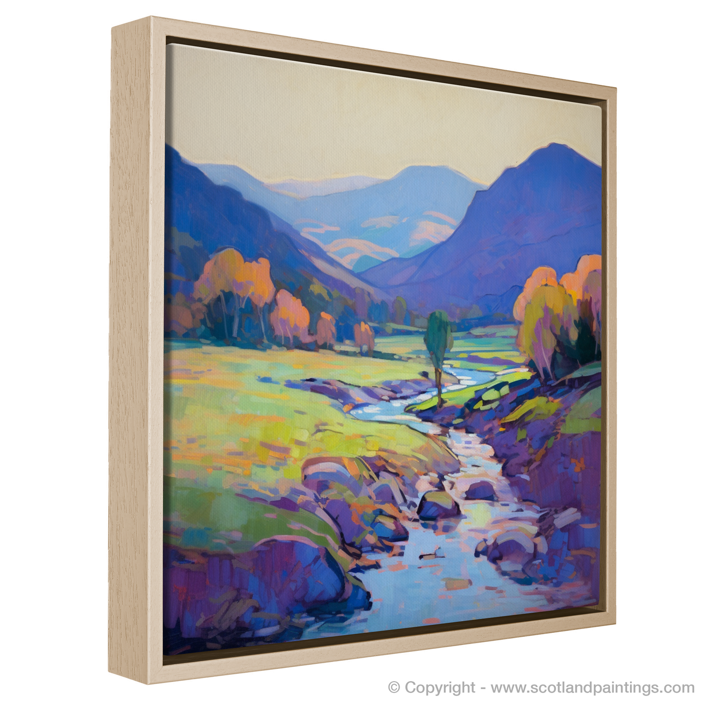 This impressionistic print from our 'Scottish Glens' collection invites the beholder on a silent journey through one of Scotland's most enchanting landscapes, encapsulating the timeless allure of Glen Strathfarrar in a sweep of colour and light that beckons the soul to wander, dream, and escape.