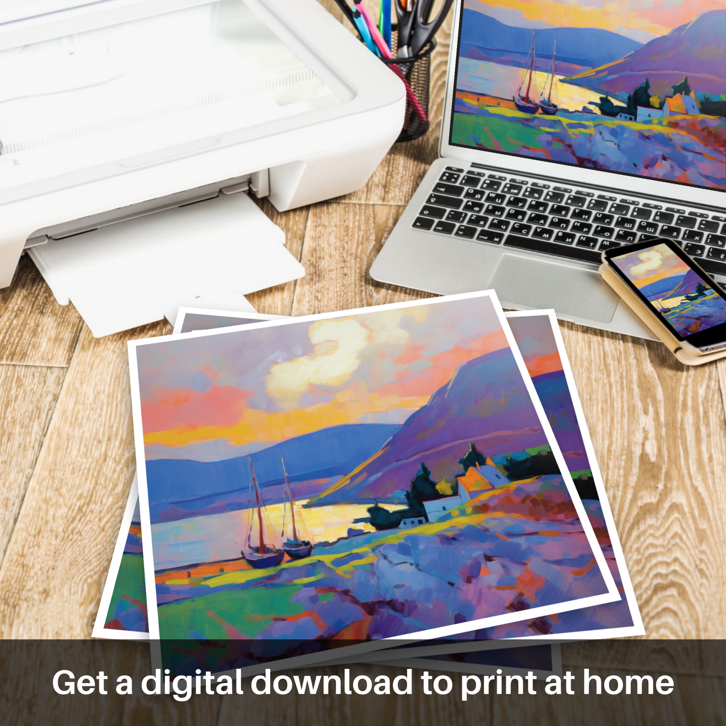 In timeless Impressionistic style, the interplay of light and shade is masterfully used to render a scene that is not only a visual but also an emotional experience. This evocative print is a gateway to the soul of Scotland, full of atmosphere and the raw beauty of its coastal vistas. Whether as a homage to your Scottish roots or a memento of travels through storied landscapes, this artwork is a stirring addition to any space.