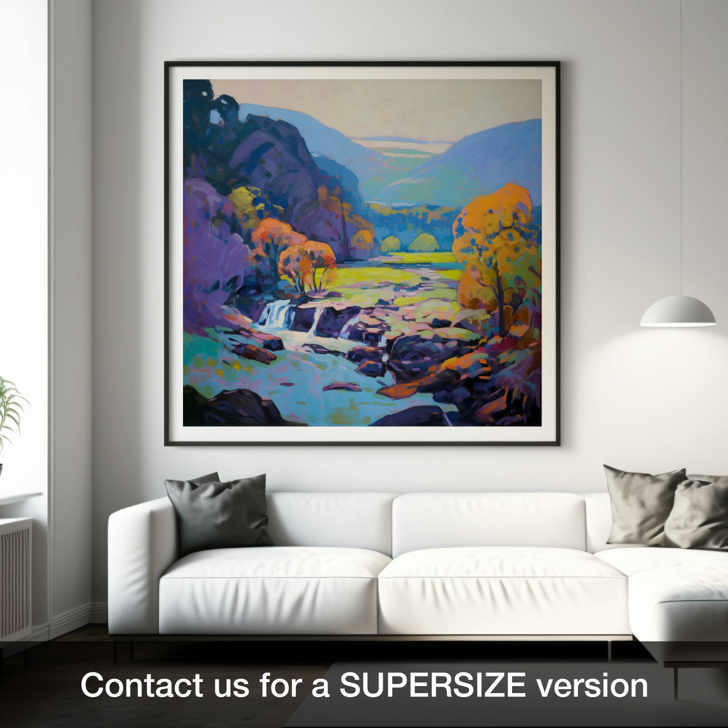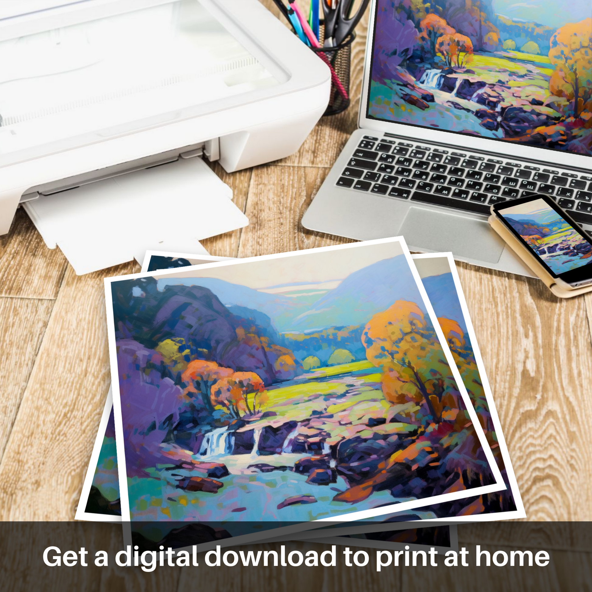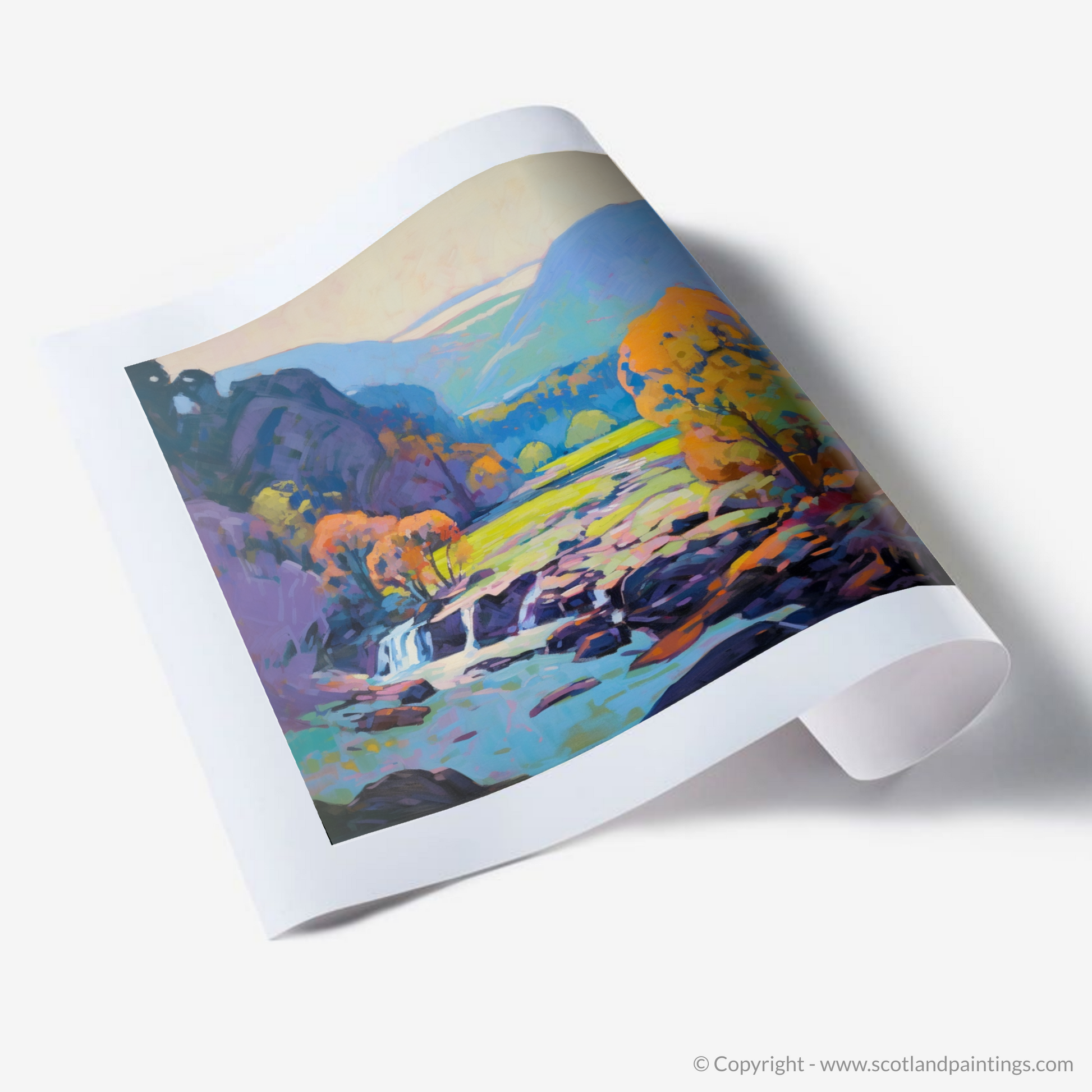 As you gaze upon this print, the playful reflections in the calm yet dynamic waters of the falls speak to the ever-changing light, so admired by Impressionist artists. The print captures not just a moment, but the very essence of Falloch's beauty, where the flow of water becomes a metaphor for the fluidity of light and colour.