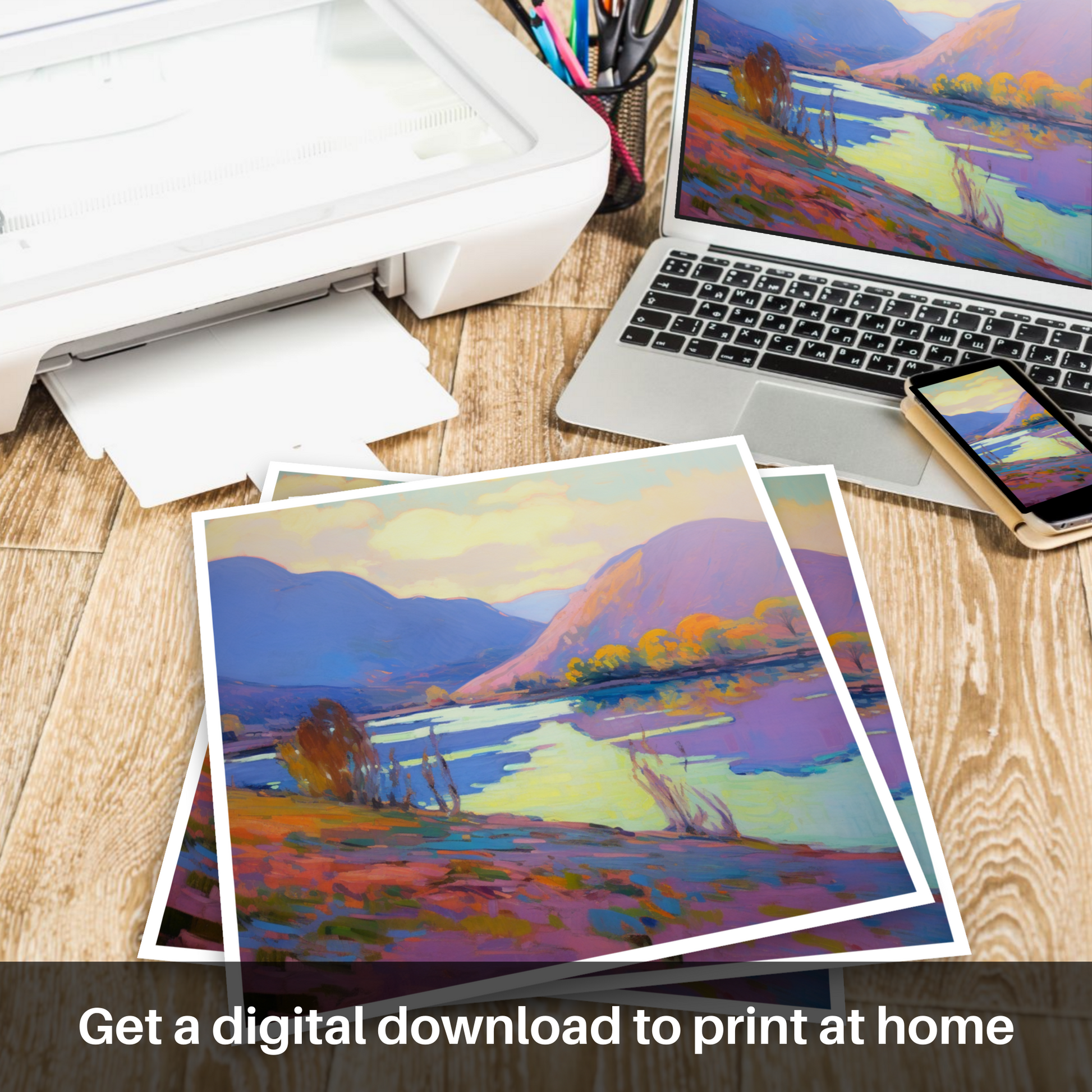 Each brushstroke conveys movement and emotion, allowing the observer to experience the crisp highland air and the profound stillness of the loch. This print invites contemplation and provides an escape to a peaceful corner of the world, making it a perfect addition for those seeking to bring the quietude and poignancy of the Scottish lochs into their space.