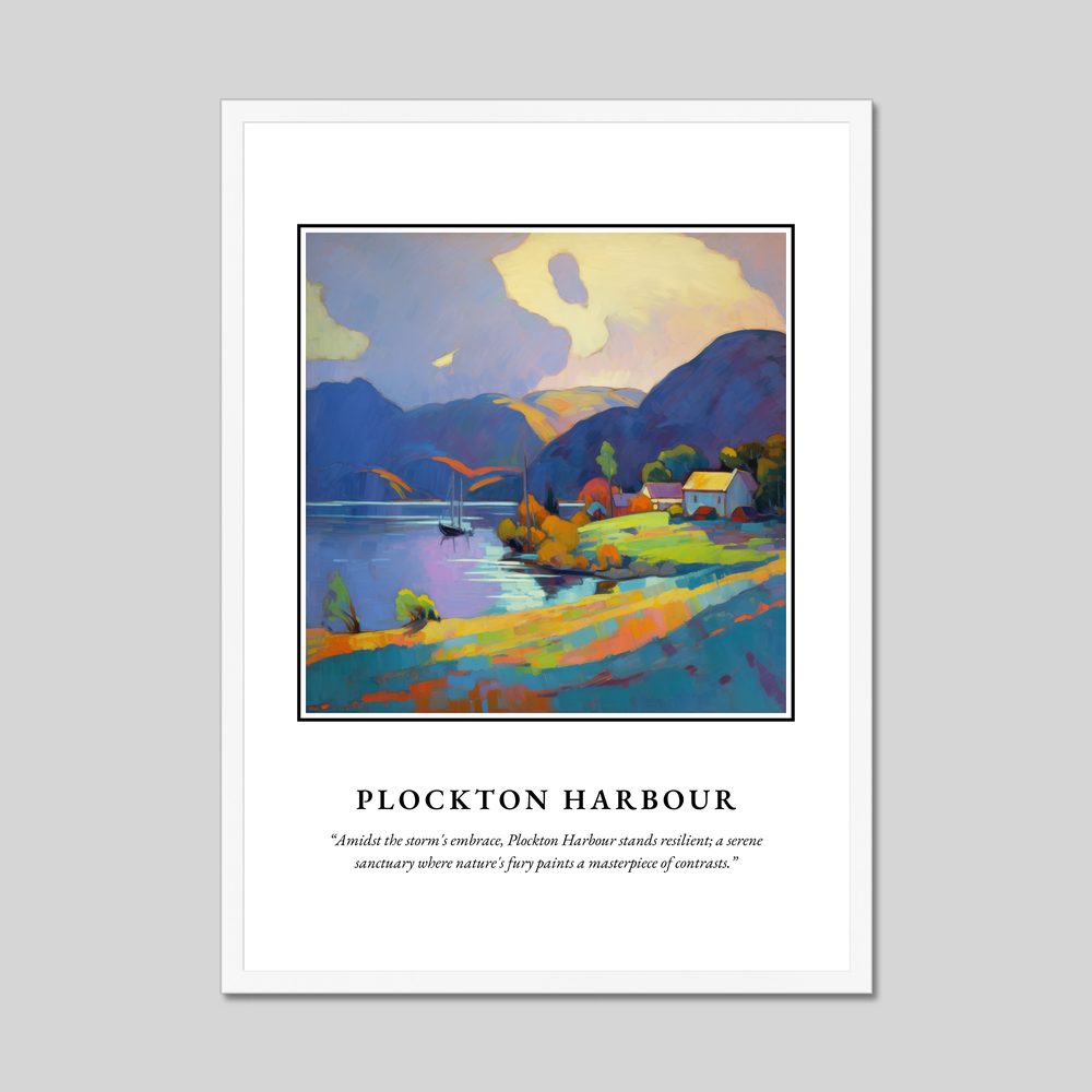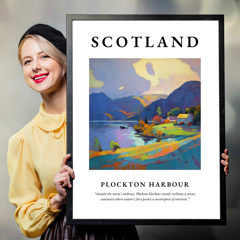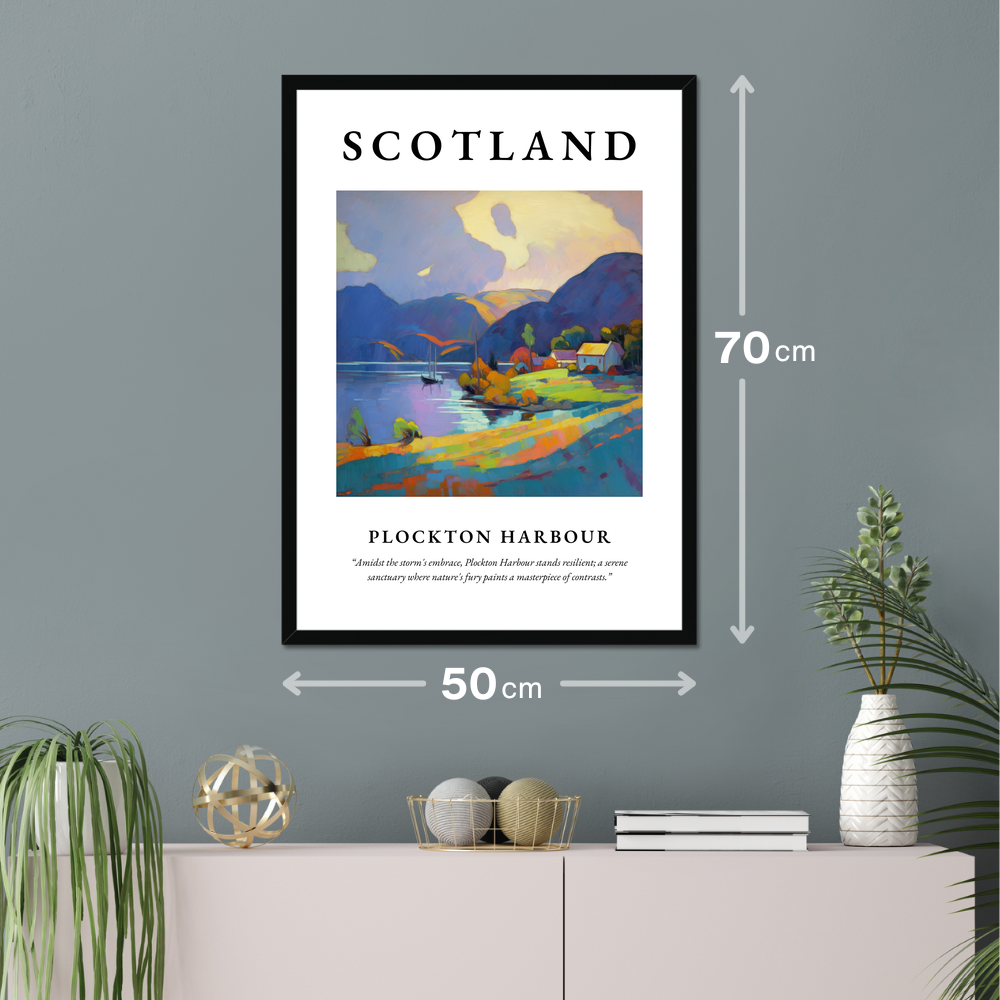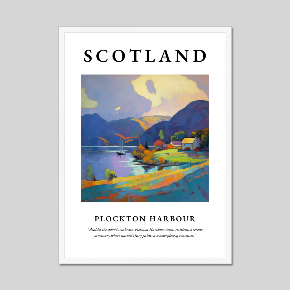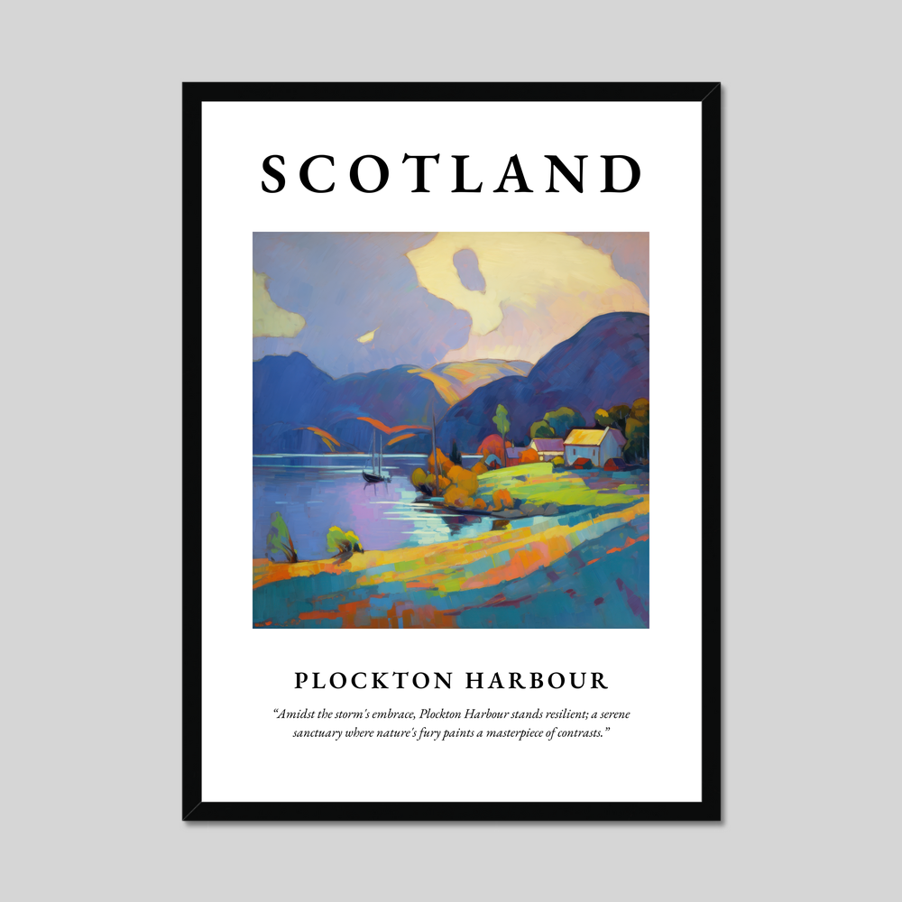 Step into a world of serene beauty and captivating contrast with our stunning framed poster print, measuring a generous 50cm x 70cm. Featuring the iconic "SCOTLAND" in bold, commanding letters, this masterpiece beautifully captures the heart of Plockton Harbour through the lens of Impressionism. The vivid strokes and vibrant hues depict the tranquil harbour as a haven where the drama of nature unfolds in breathtaking harmony. Below the painting, the evocative quote, "Amidst the storm's embrace, Plockton Harbour stands resilient; a serene sanctuary where nature's fury paints a masterpiece of contrasts," invites the viewer to delve deeper into the artwork's emotional landscape.