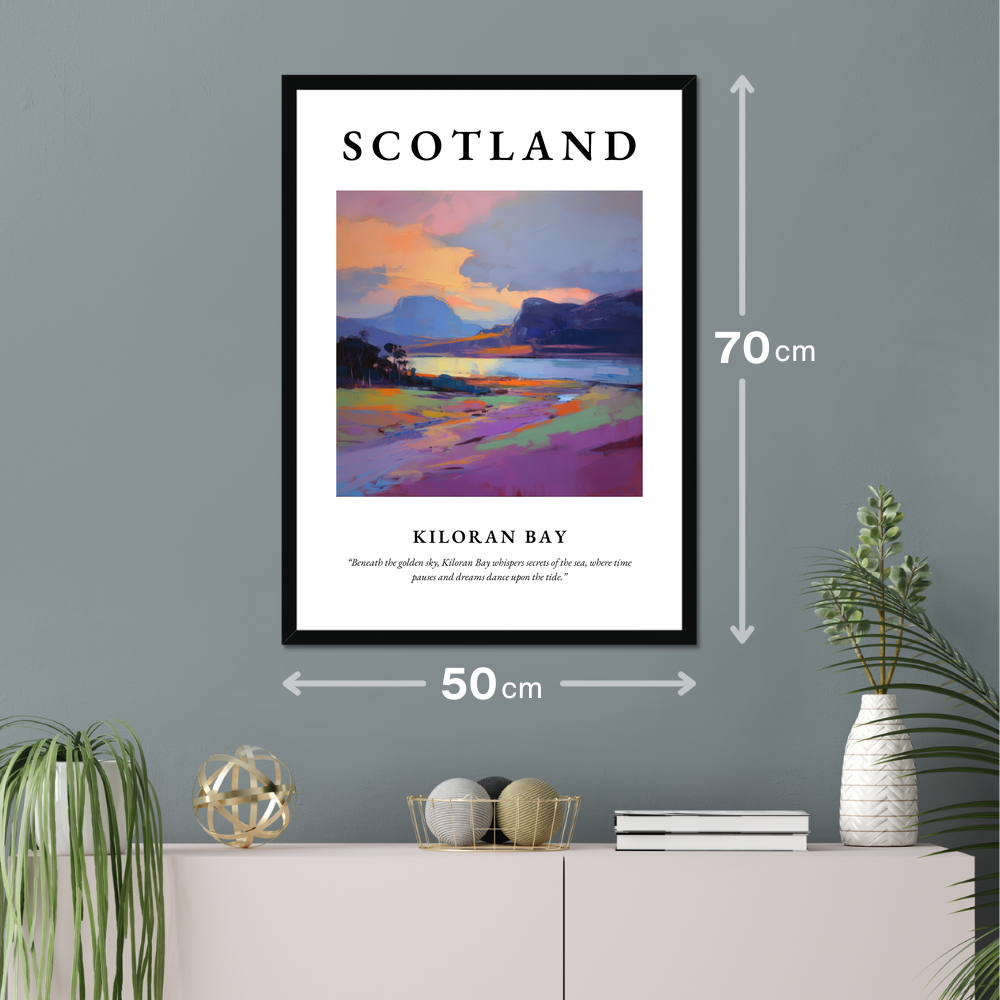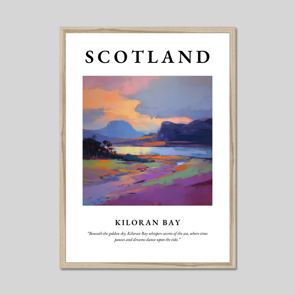 Experience the enchanting allure of Scotland with our stunning 50cm x 70cm framed poster print, capturing the captivating essence of Kiloran Bay. This bold and evocative piece is available in a choice of elegant black, crisp white, or a warm natural wood-effect frame to complement any decor. Featuring the word “SCOTLAND” in striking bold letters at the top, this artwork makes a statement, celebrating the country’s serene landscapes and artistic heritage.