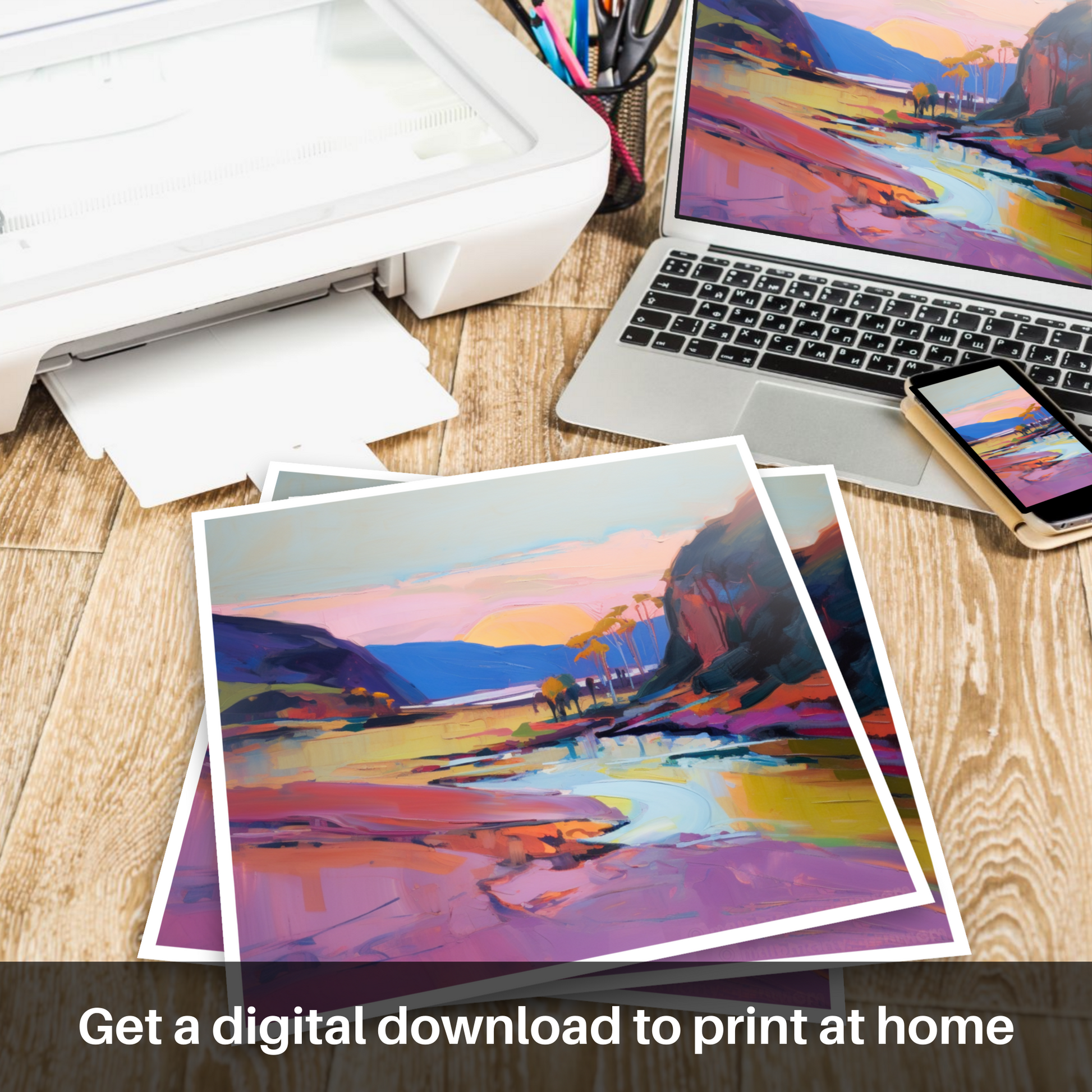 This evocative print promises to bring a burst of spectral elegance and a touch of the abstract to your space, beckoning the viewer to return time and again to explore its hidden depths and vibrant soul, ever unfolding a new facet of its profound charm. Indulge in a piece that not only decorates a room but elevates it, inviting a sense of wonder and contemplation about the beautiful enigma that is Scotland's natural splendour.