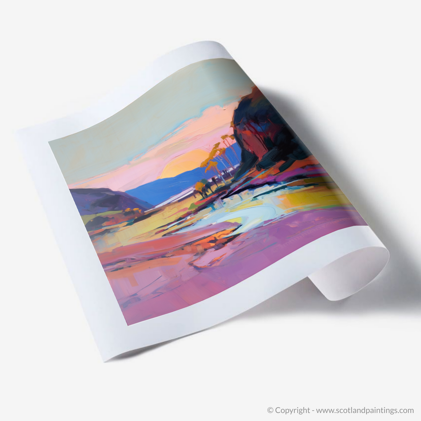 Immerse yourself in the swirling, vivid hues of our enchanting artwork, capturing the undeniable beauty of Sandwood Bay at the magical hour of dusk. Embrace the audacity of colour that expressionism breathes into this landscape, where traditional meets whimsical in a symphony of brushstrokes.