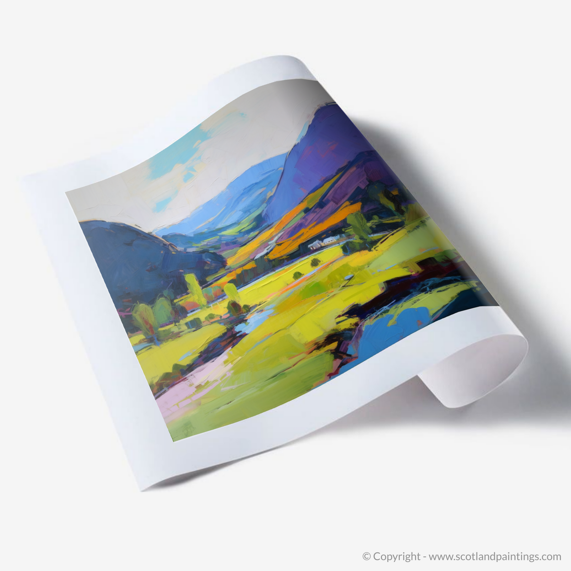 This expressive interpretation of Glen Roy in the Highlands is a statement piece, capturing the essence of summer's effervescence in Scotland. It is an evocative celebration of colour and form, rich in texture and emotion, designed to transport the viewer to a place where nature's palette is as wild and free as the landscape itself.