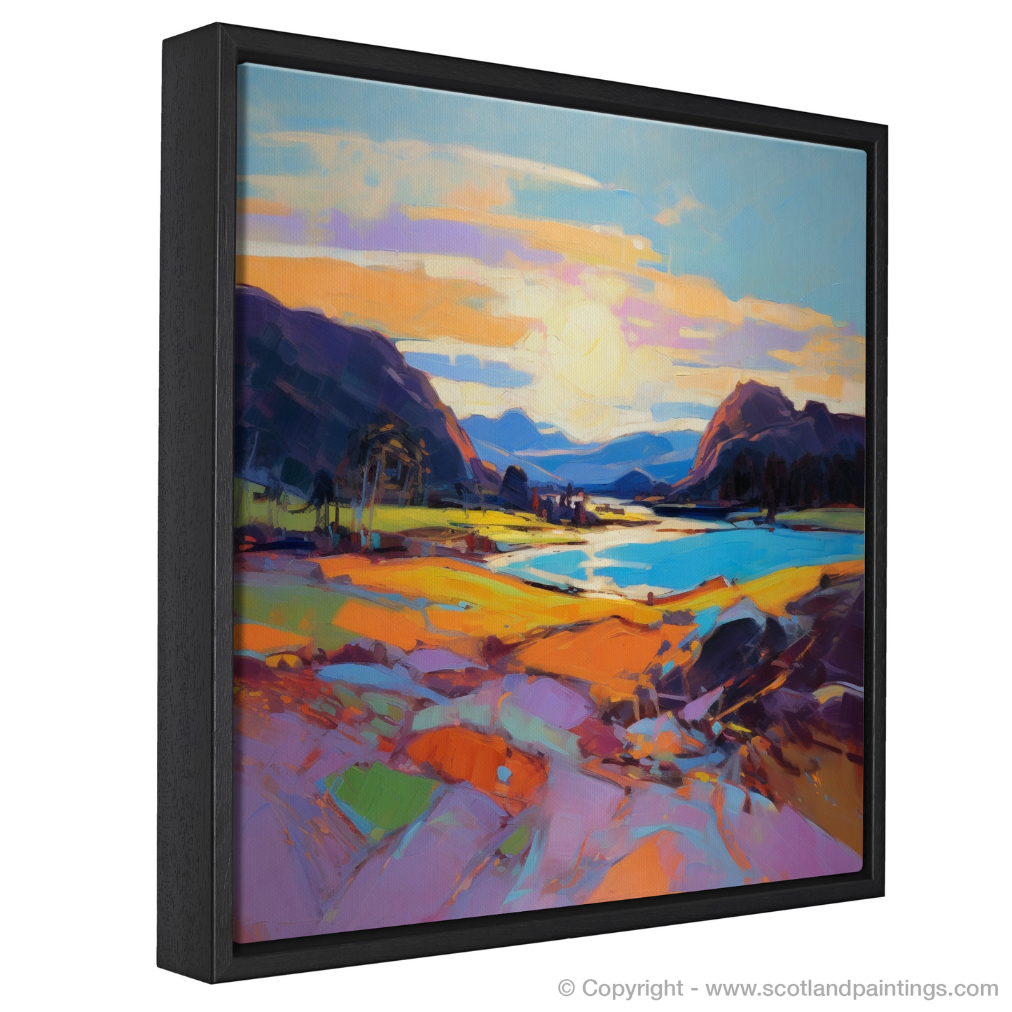 Immerse yourself in the vibrant hues of the Highland twilight with this evocative print capturing the breathtaking serenity of Achmelvich Beach at sunset. As an exemplar of Expressionism, this piece harnesses bold colour and vigorous brush strokes to portray the emotionally charged atmosphere of this Scottish haven.