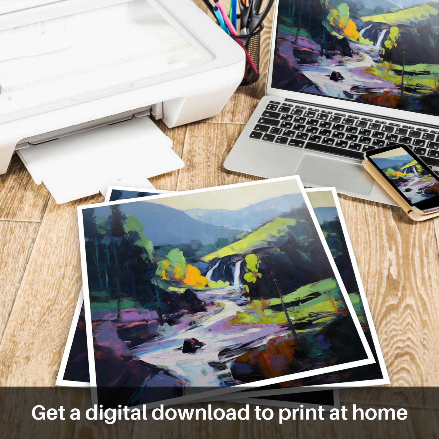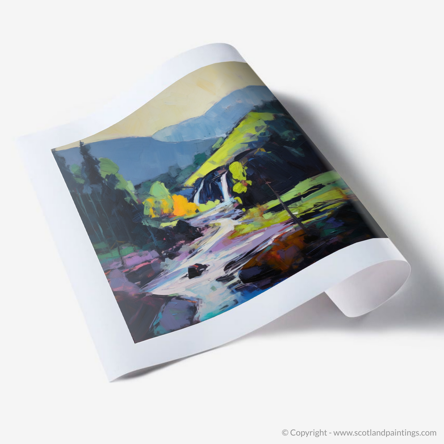 Immerse yourself in the vibrant and dynamic essence of the Scottish landscape with this compelling expressionist interpretation of the Black Spout Waterfall, Pitlochry. This evocative print captures the raw beauty and untamed spirit of one of Scotland's most breathtaking natural wonders.