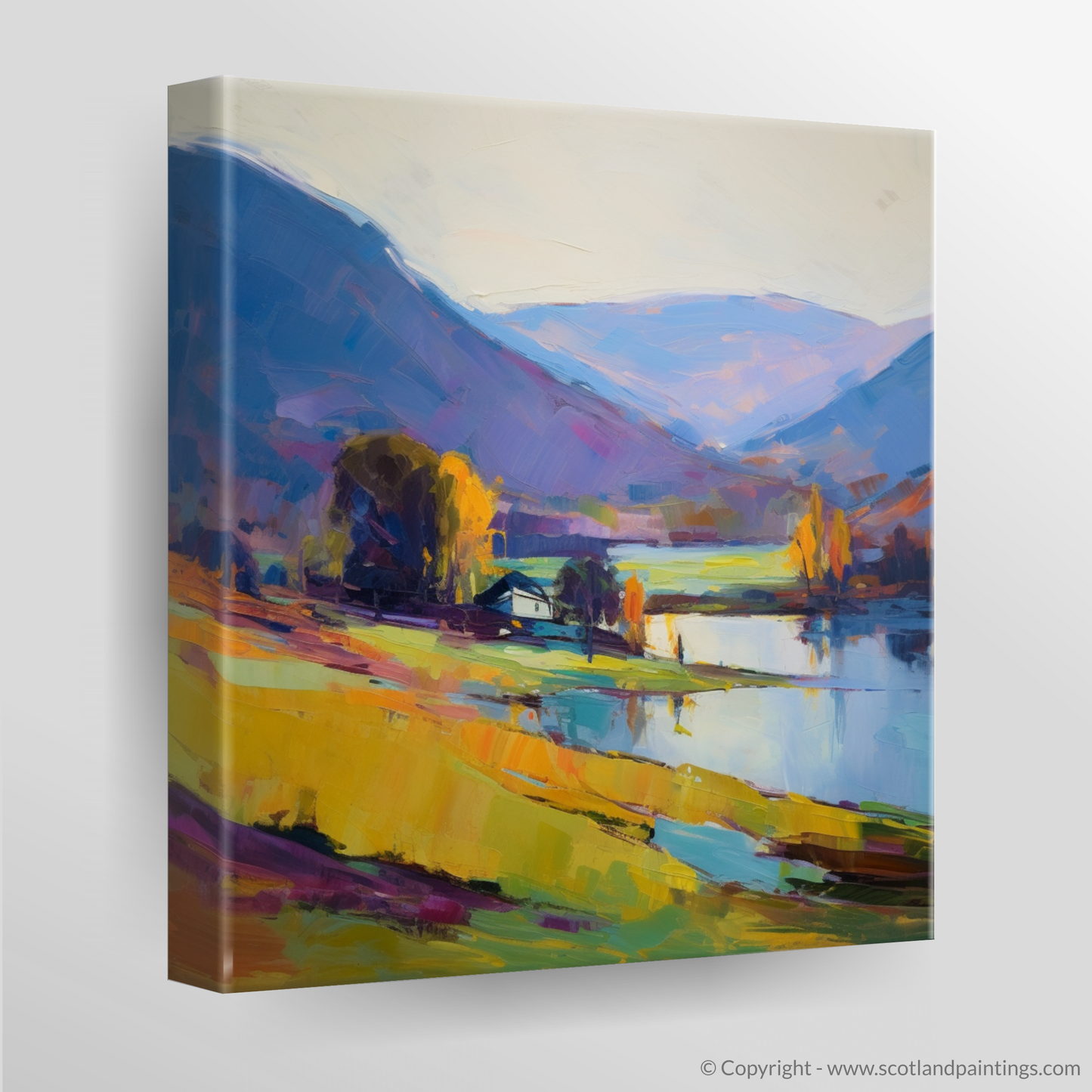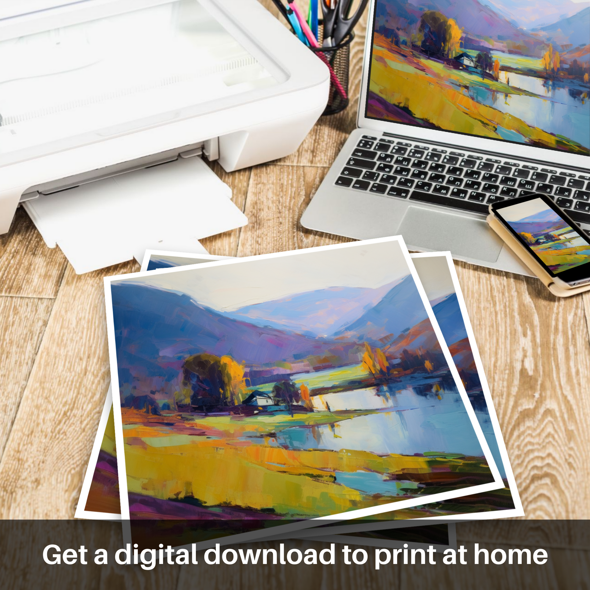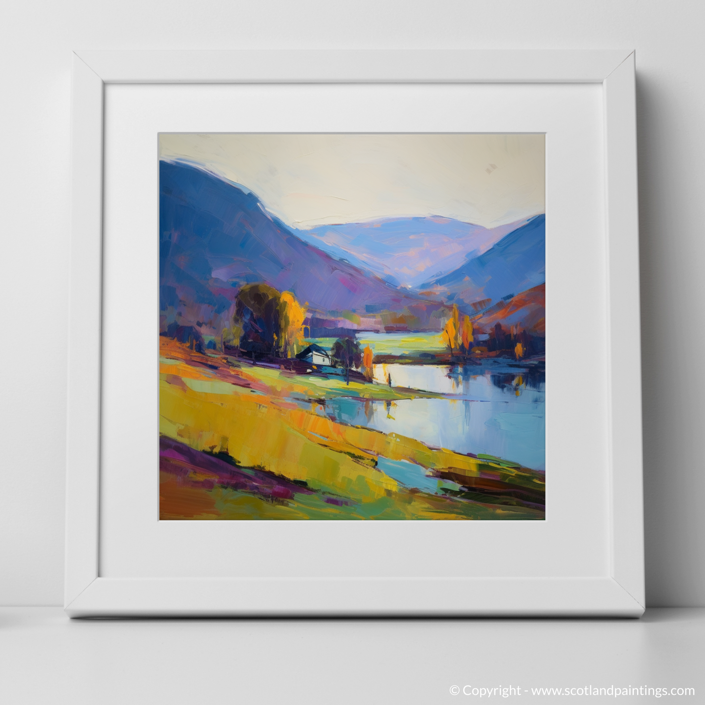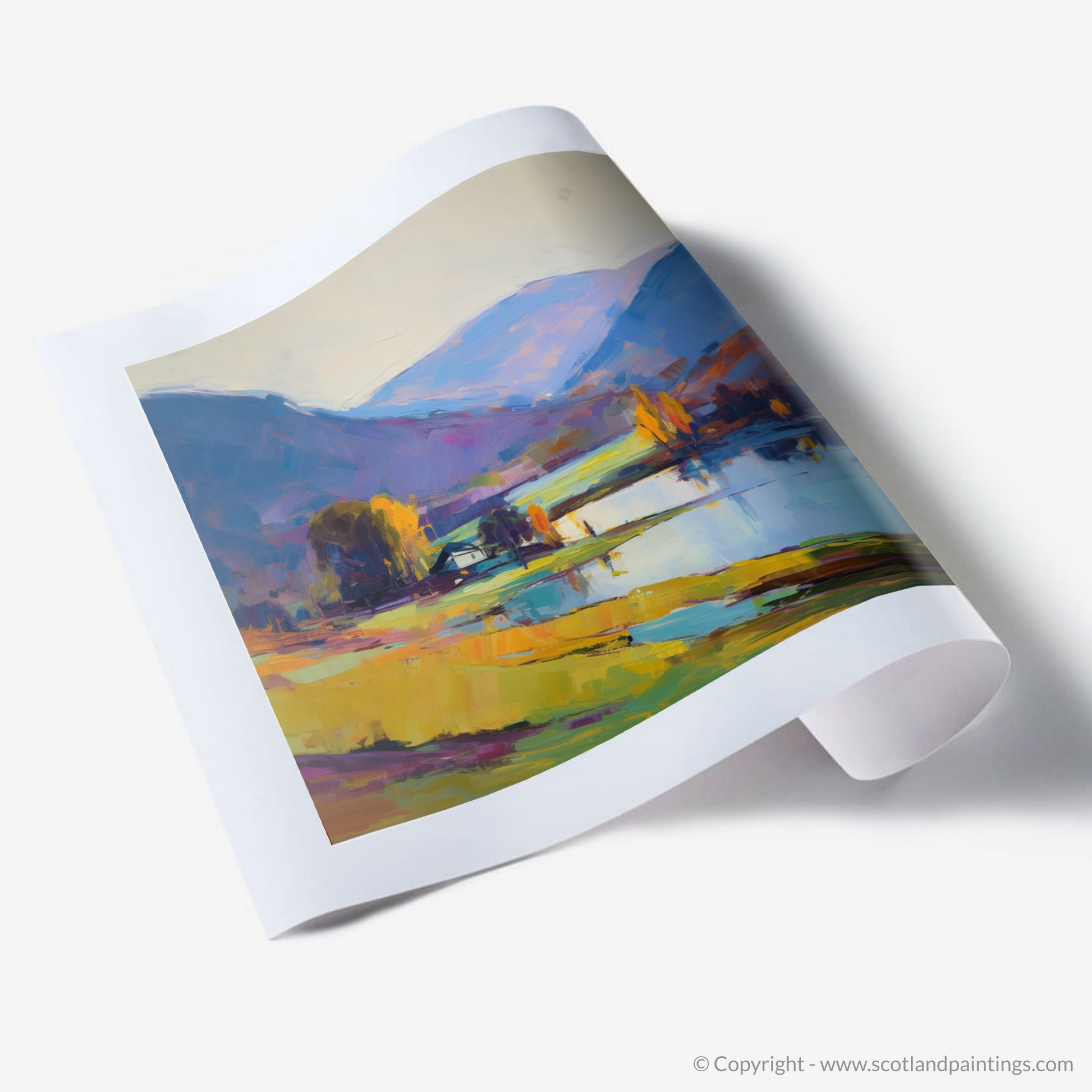 Immerse yourself in the vibrant hues and impassioned strokes of this evocative print, capturing the essence of the serene Loch Earn in Perthshire. The artwork, an exemplar of Expressionism, uses exaggerated colours and forms to convey the emotional resonance of the Scottish landscape, inviting the viewer to experience the loch's beauty through the artist's subjective vision.