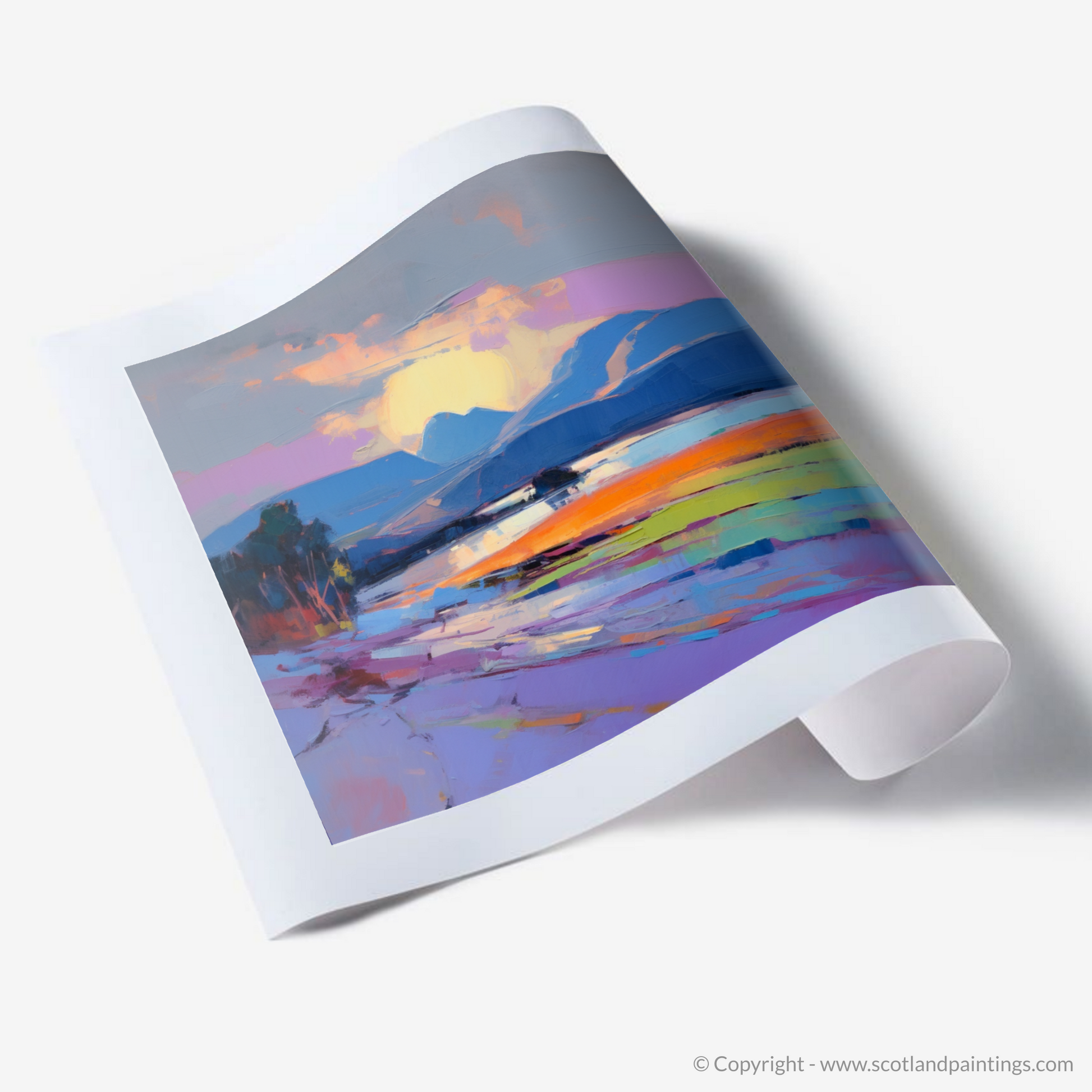 This expressionist interpretation of Arisaig Beach provides not just a visual feast but an evocative experience, inviting the viewer to be immersed in the unique and fleeting moments of twilight by the Scottish seaside. It's an art piece that complements any room, becoming a focal point that sparks the imagination and invites conversation, all while paying homage to the serene splendour of Scotland's natural vistas.