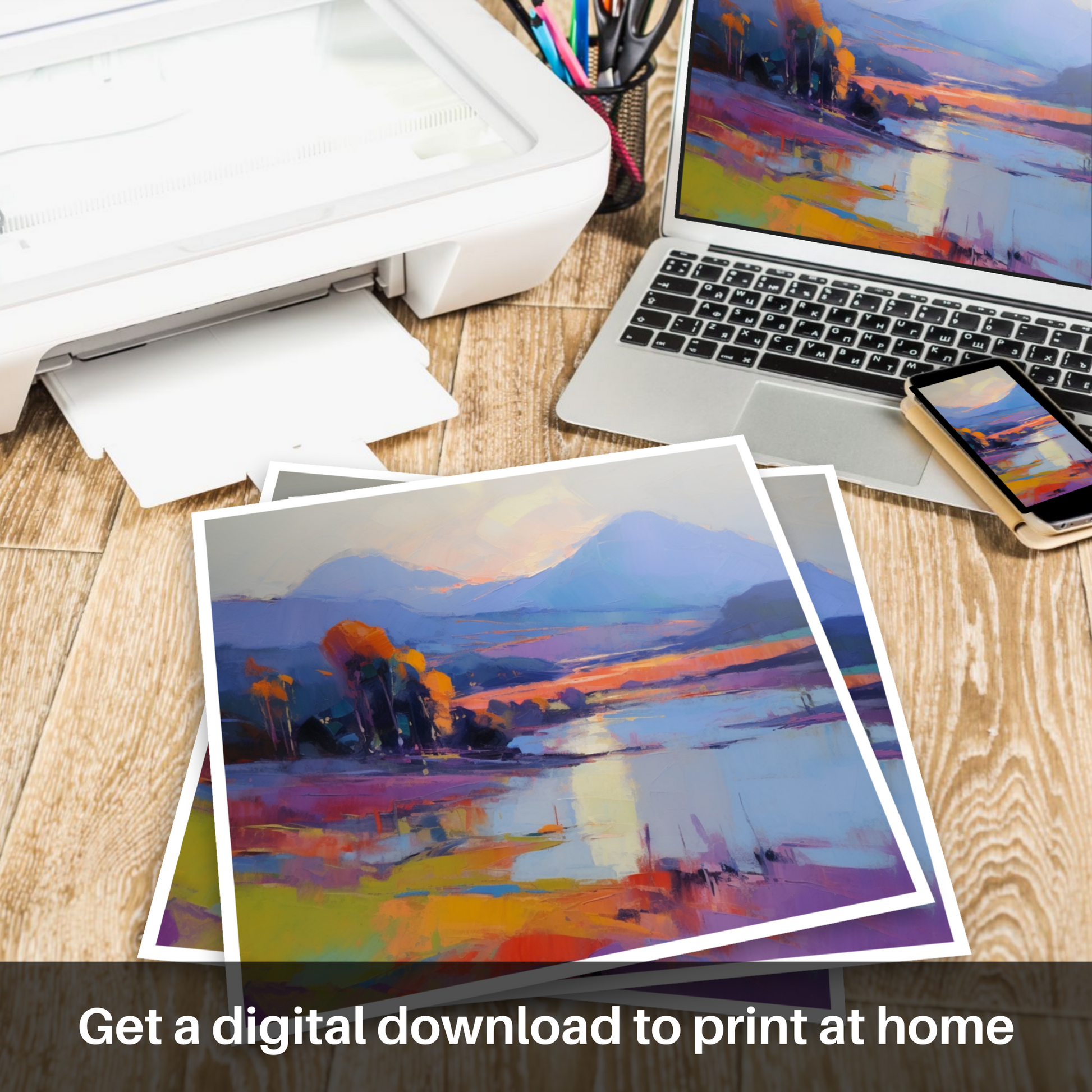 Immerse your space in the enchanting allure of Scotland's rugged countryside with this exquisite print. It captures not just a place, but an experience, a fleeting moment when nature is alight with colour, emotion, and beauty. This is a piece for lovers of art and the Scottish outdoors, a timeless vista immortalised in the expressive passion of colour and form.