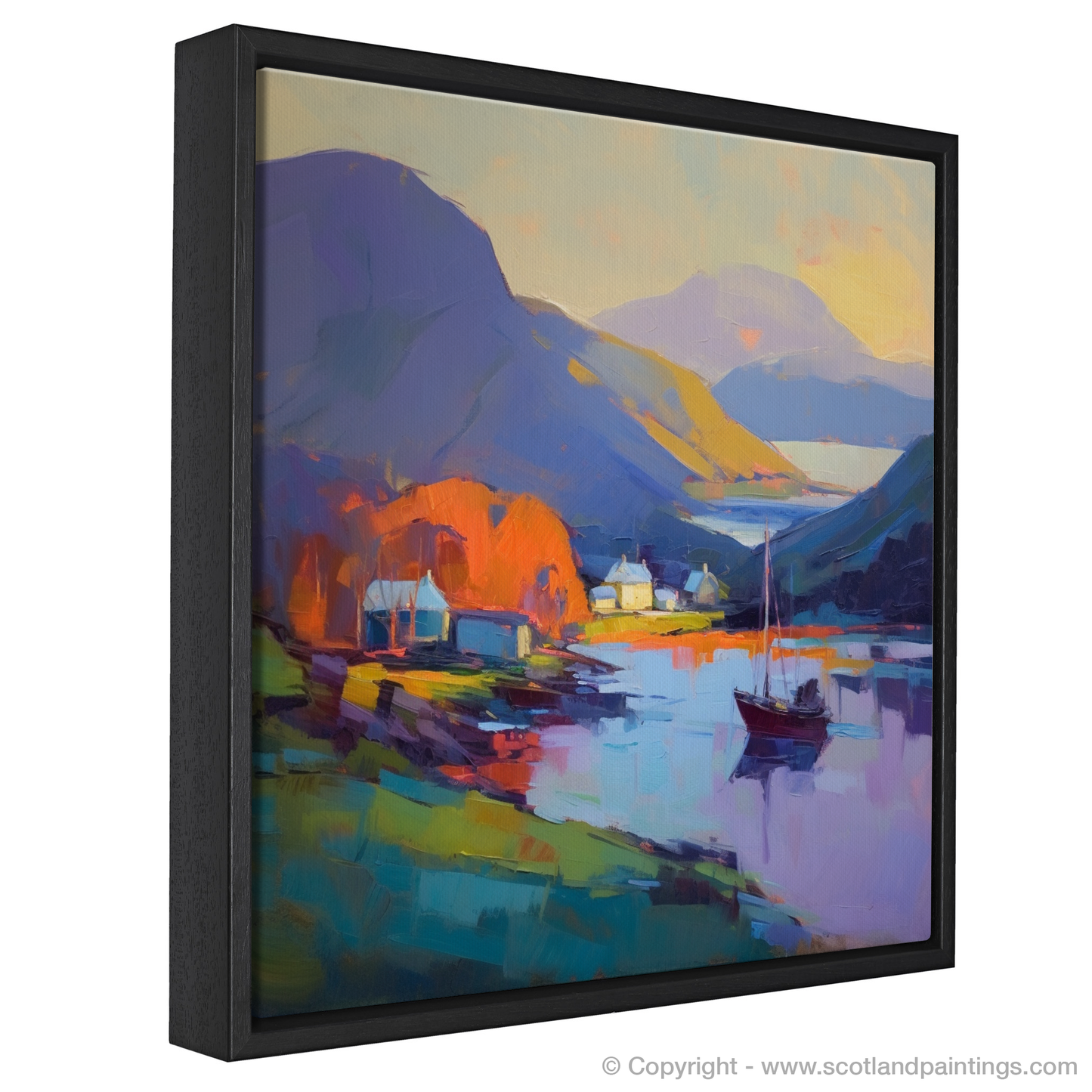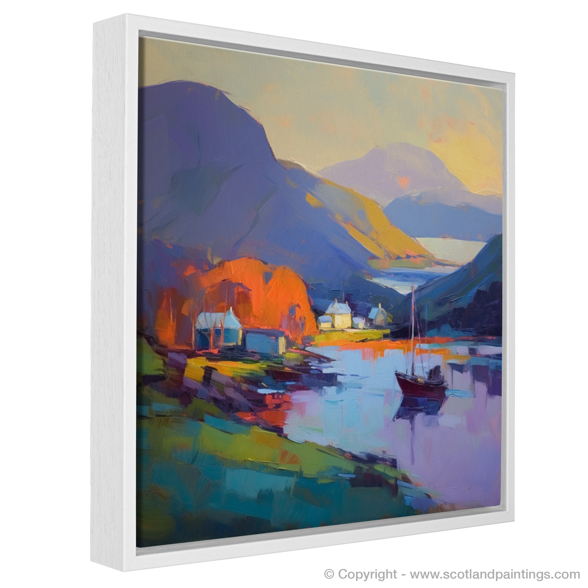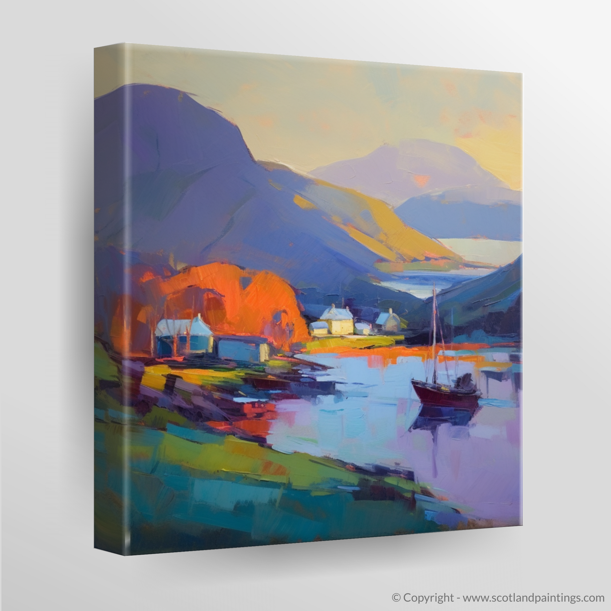 Immerse yourself in the vibrant hues and emotive strokes of this evocative interpretation of Mallaig Harbour at the magical golden hour. This exquisite print is a symphony of colour and emotion, capturing the enchanting play of light that dances across the serene waters and the quaint charm of the harbour.