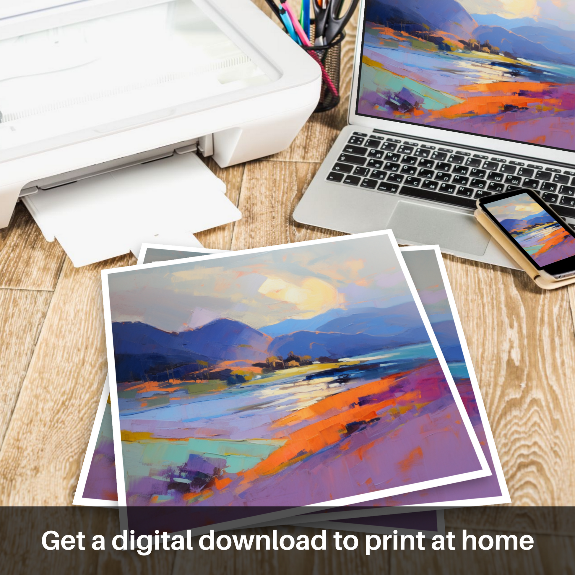 For aficionados of both the rugged Scottish coastline and the emotive power of Expressionism, this print is a testament to the timeless dance between light and landscape—a cherished addition to any collection that celebrates the natural beauty of Scotland's shores in a style that transcends the ordinary.