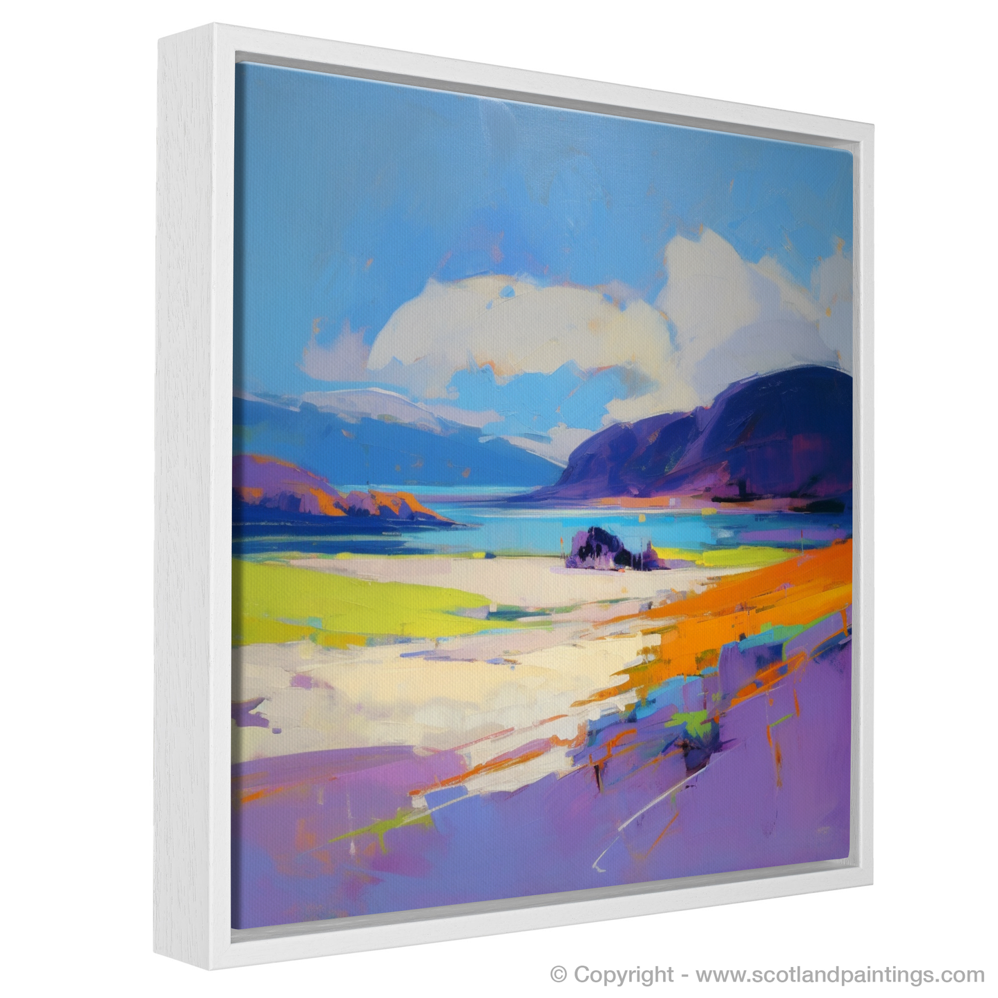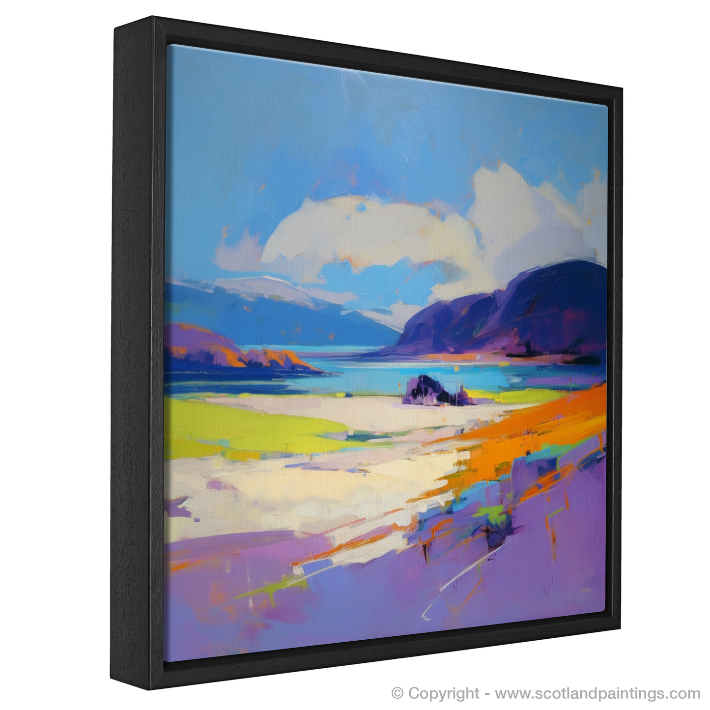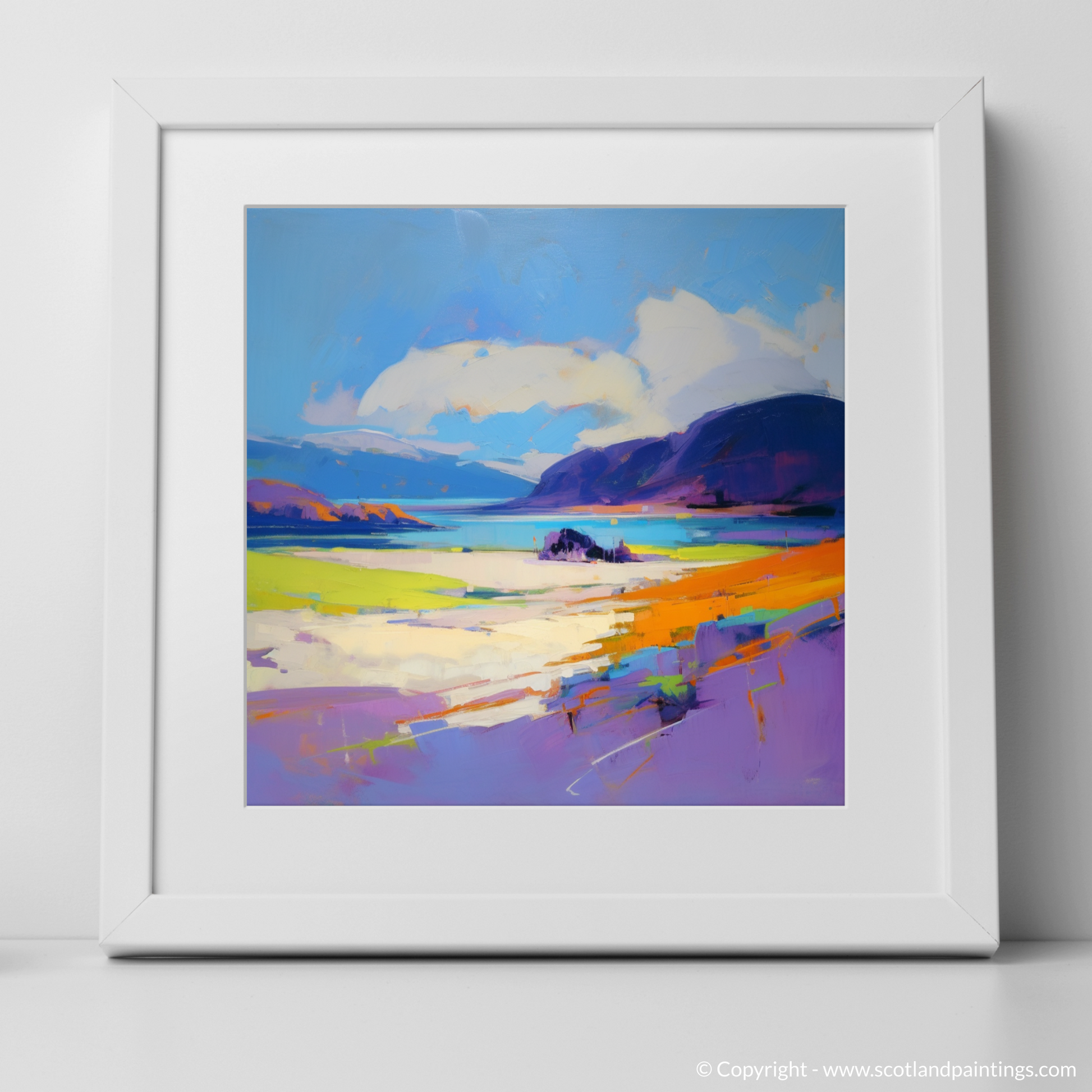 Immerse yourself in the vibrant essence and raw beauty of the Scottish coastline with this exquisite print, inspired by the breathtaking expanse of Luskentyre Beach on the Isle of Harris. Captured in the emotive style of Expressionism, the print evokes the tumultuous spirit and dynamic mood of Scotland's natural landscape.