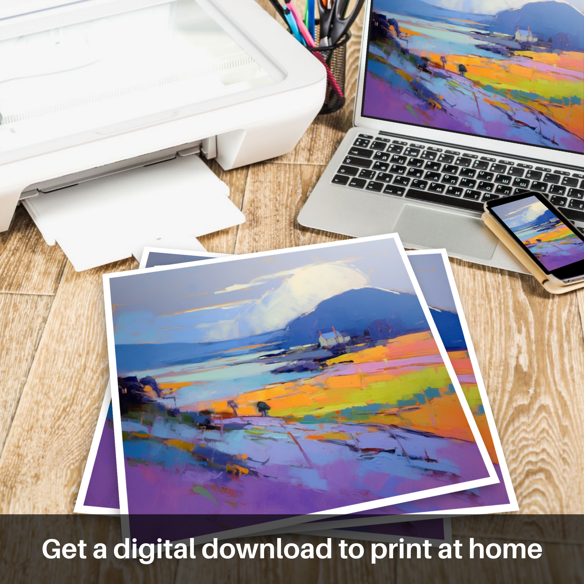 This print is a celebration of raw beauty and passionate expression, inviting the viewer to lose themselves in the untamed spirit of the Scottish Islands and the poetic brush of Expressionism. Add this piece to your space and let the wild heart of the Hebrides resonate within your walls.