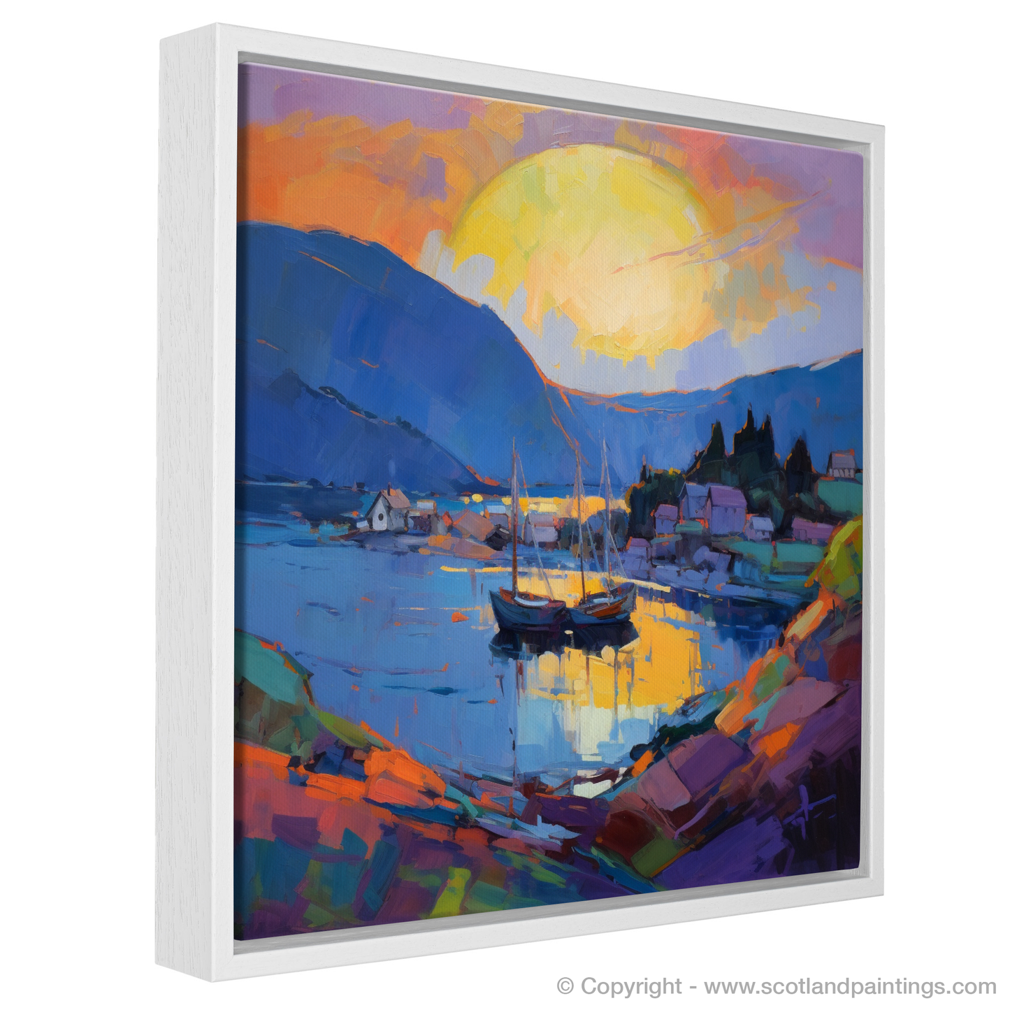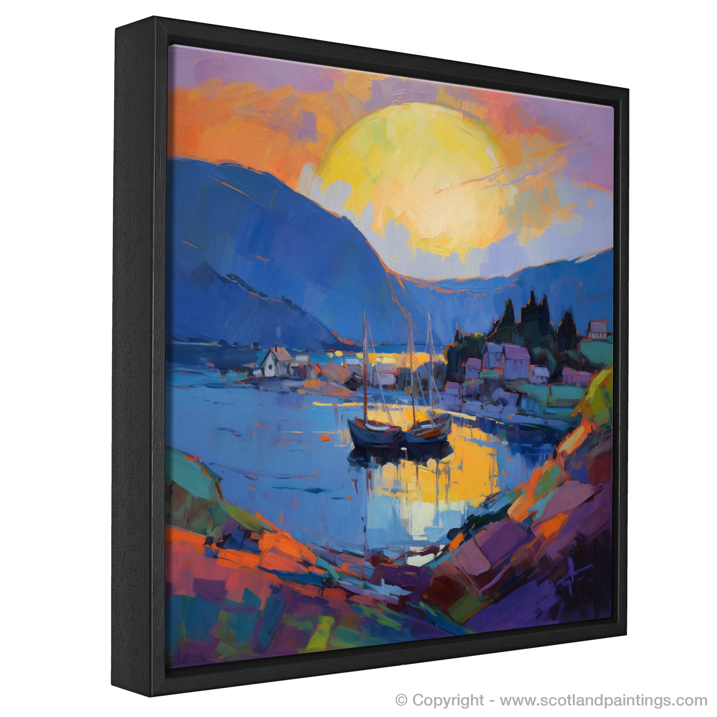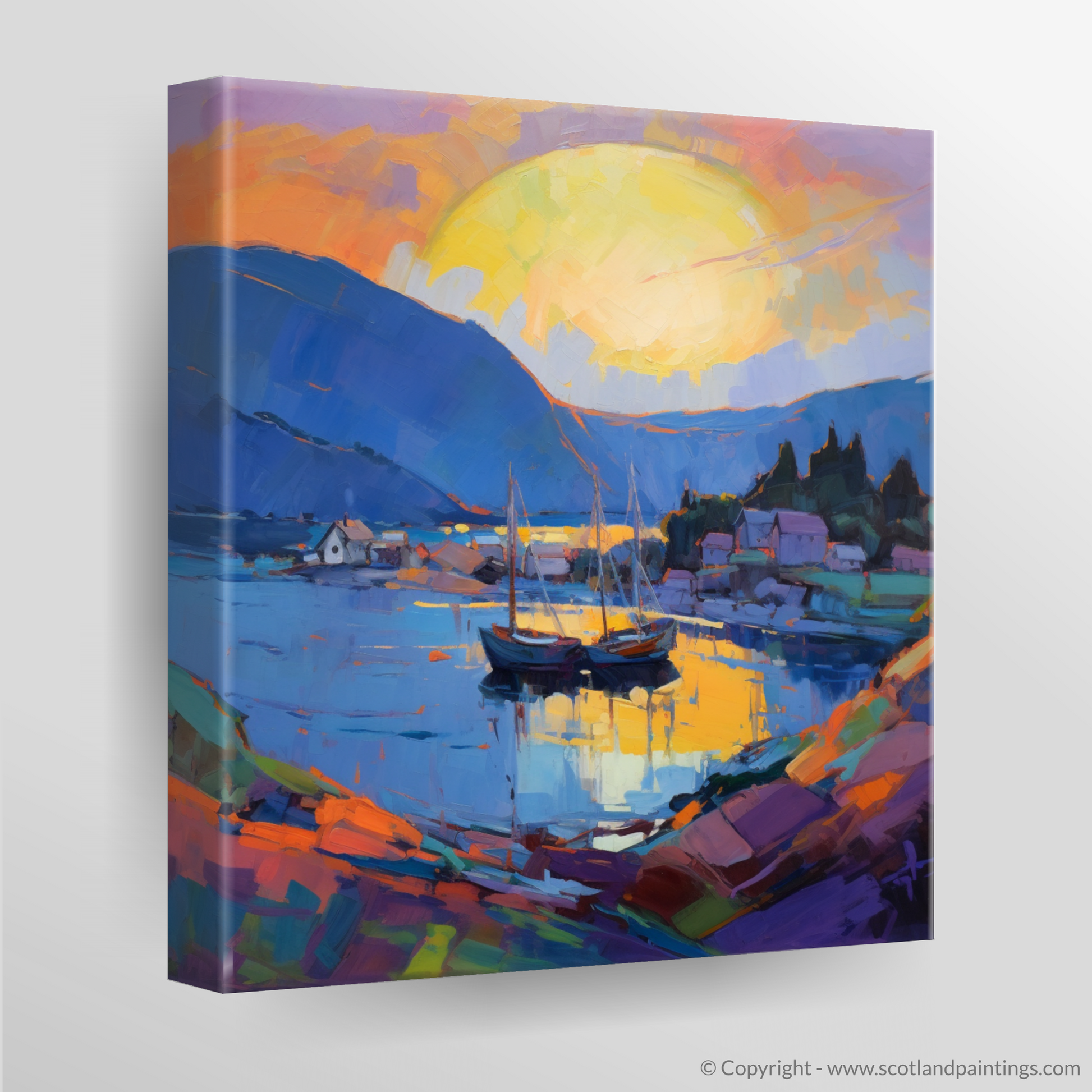 As the day concludes, Tobermory Harbour embraces the tranquillity of dusk, an enchanting moment immortalised in this striking expressionistic piece. Capturing the calm waters mirroring the gradients of twilight, this print invites the viewer to experience the serene charm of a Scottish harbour as day turns to night.