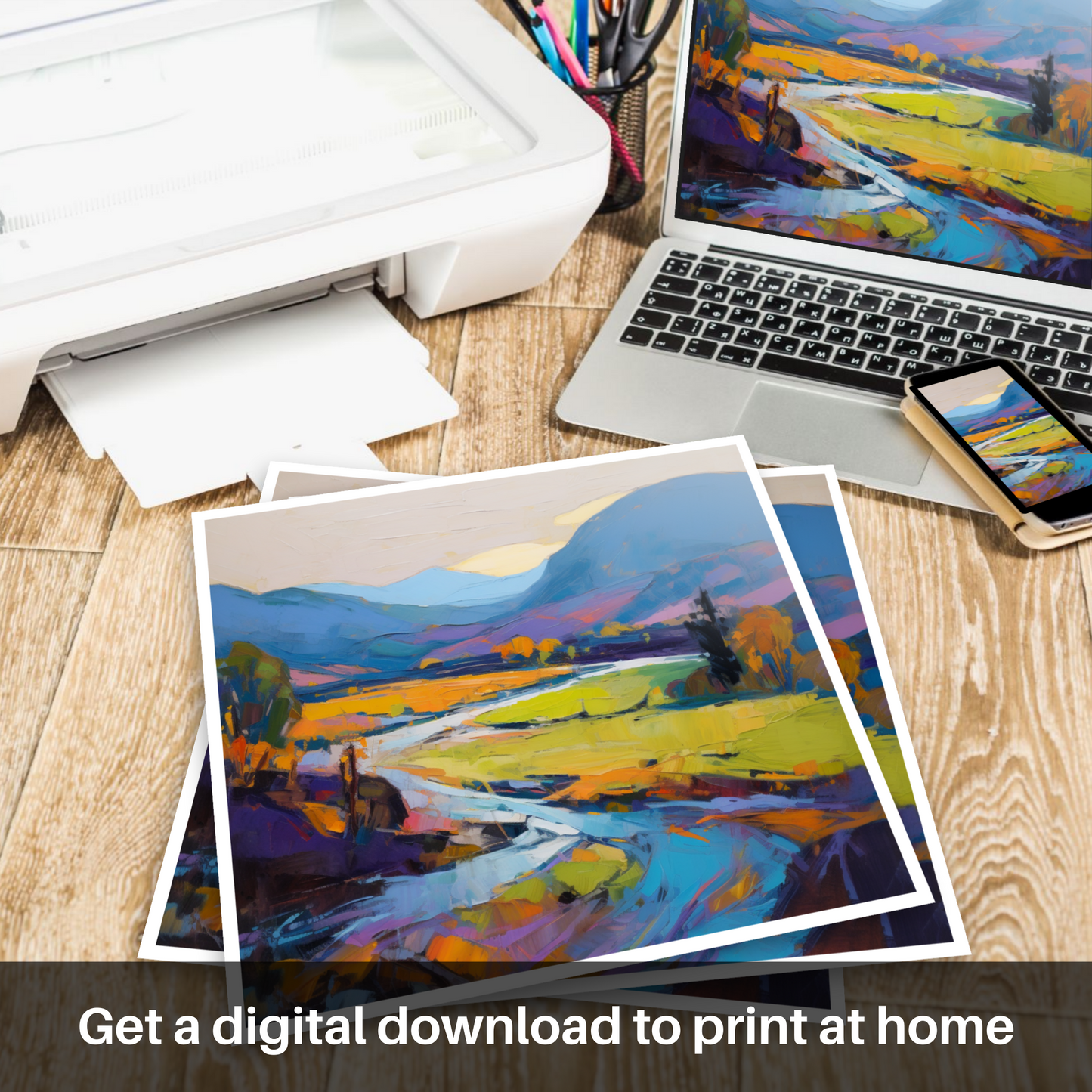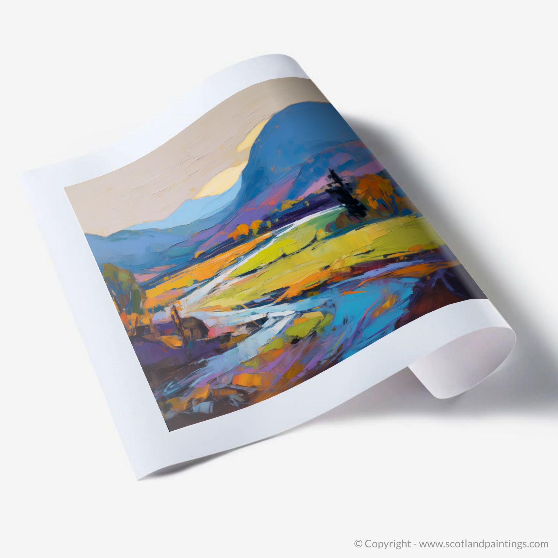 Immerse yourself in the vivid hues and sweeping emotions of the Scottish Highlands with this expressive art print. Capturing the essence of River Garry, the work evokes a raw sense of beauty through its bold and passionate brushwork. Absent are the restraints of literal representation, the print invites viewers to experience the Scottish landscape through the unique perspective of expressionism.