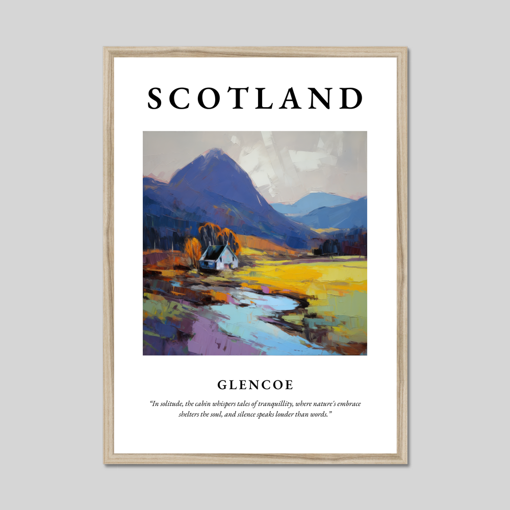 Discover the enchanting beauty of Scotland with our captivating 50cm x 70cm framed poster print, featuring the serene and majestic landscape of Glencoe. Available in your choice of a sleek black, timeless white, or rustic natural wood-effect frame, this exquisite piece from our Glencoe collection is an elegant addition to any home or office decor.