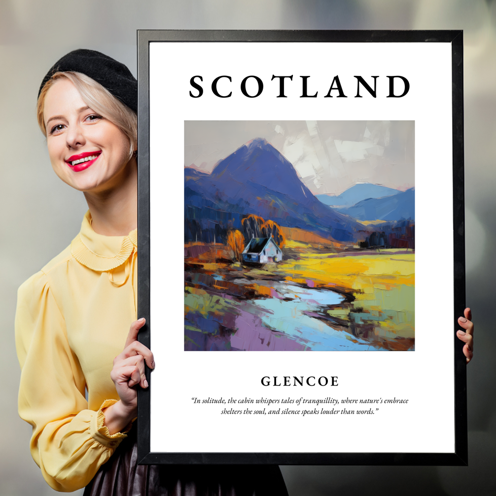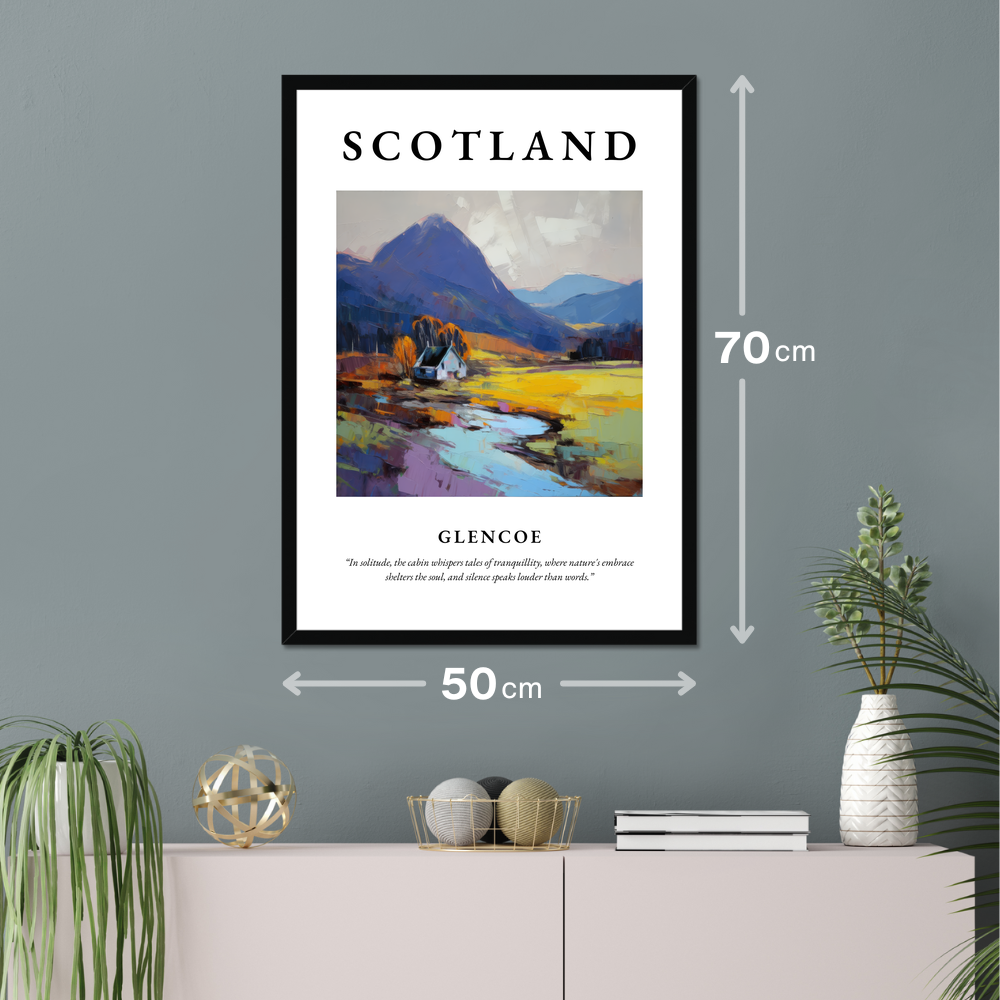 This large poster covers a significant wall area, offering a substantial visual impact without a hefty price tag. It's a perfect choice for those who have visited or dream of visiting Scotland, individuals with a personal connection to Glencoe, or anyone who appreciates the unique artistry of Expressionism.
