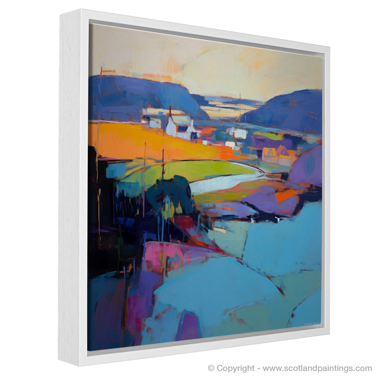As the day's last light kisses the horizon, our evocative print beckons viewers to the serene yet vibrant world of Portnahaven Harbour at dusk. Hues of vivid orange, piercing cobalt, and gentle lilac effortlessly merge, evoking the natural harmony that can only be captured in the fleeting moments between daylight and evening.